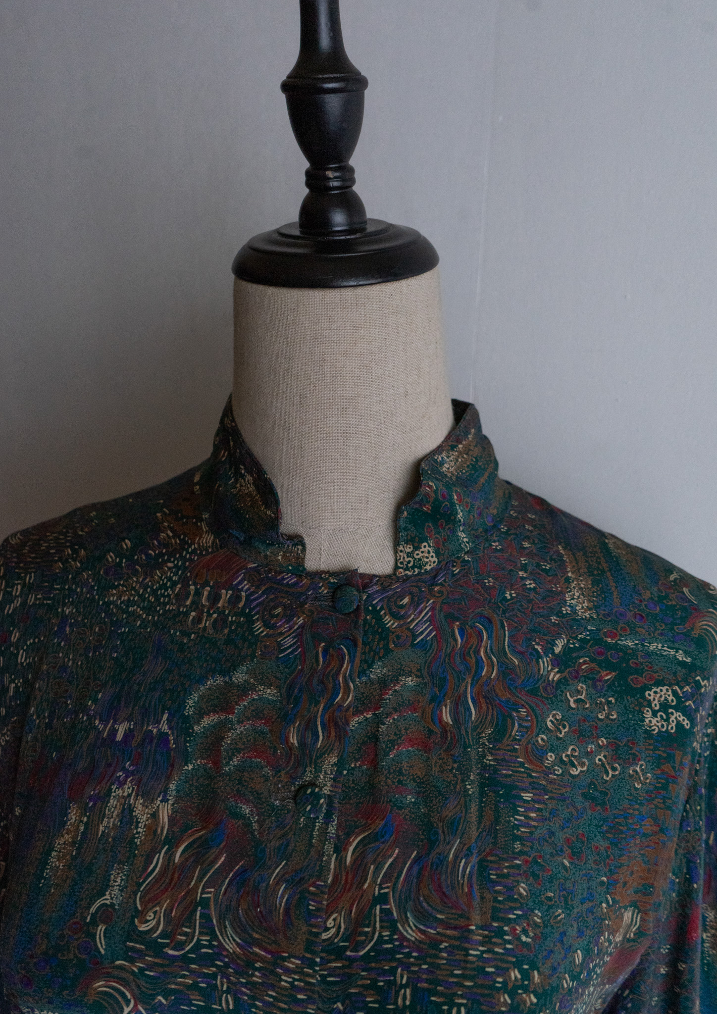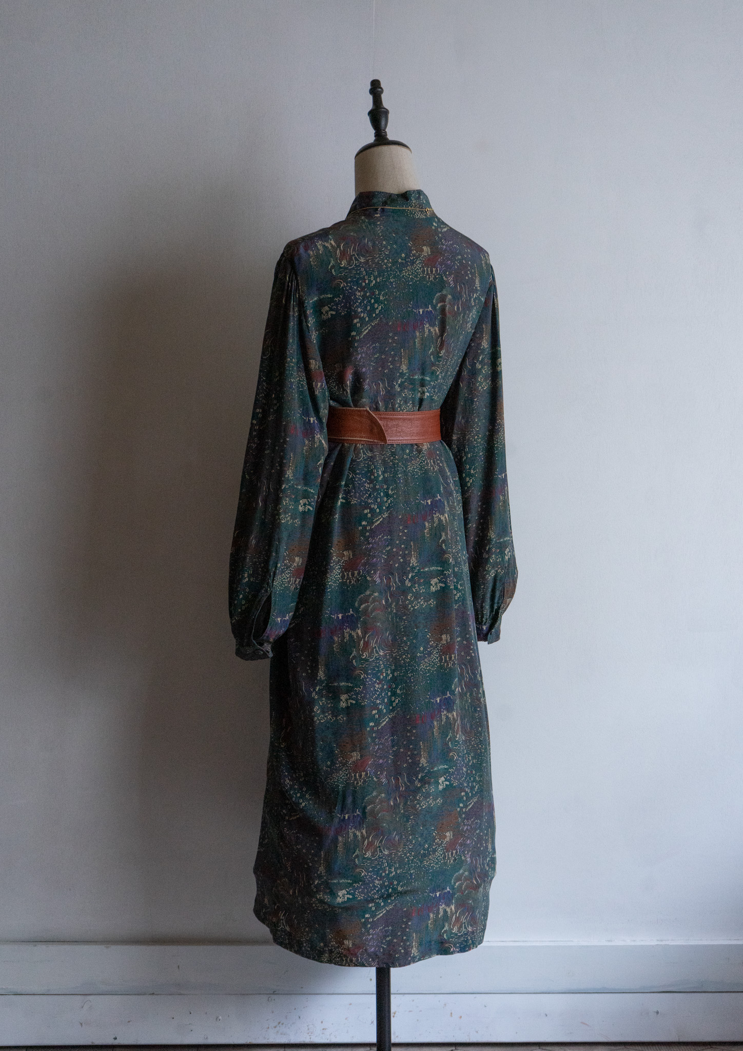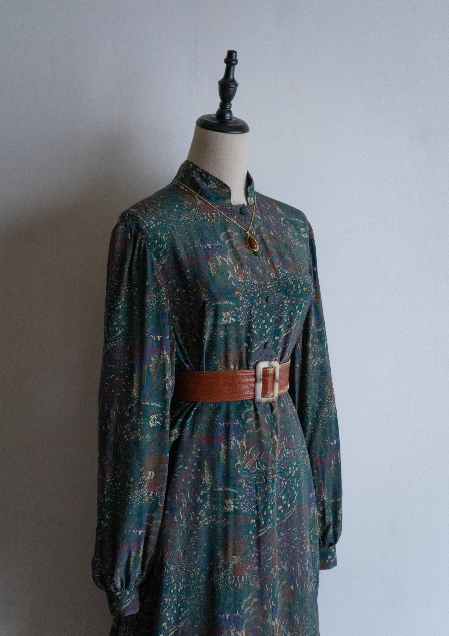80's USA Houndstooth Pattern Velour Collar × Button Dress