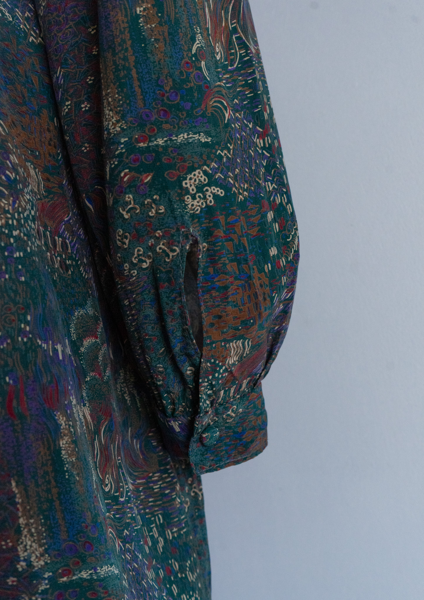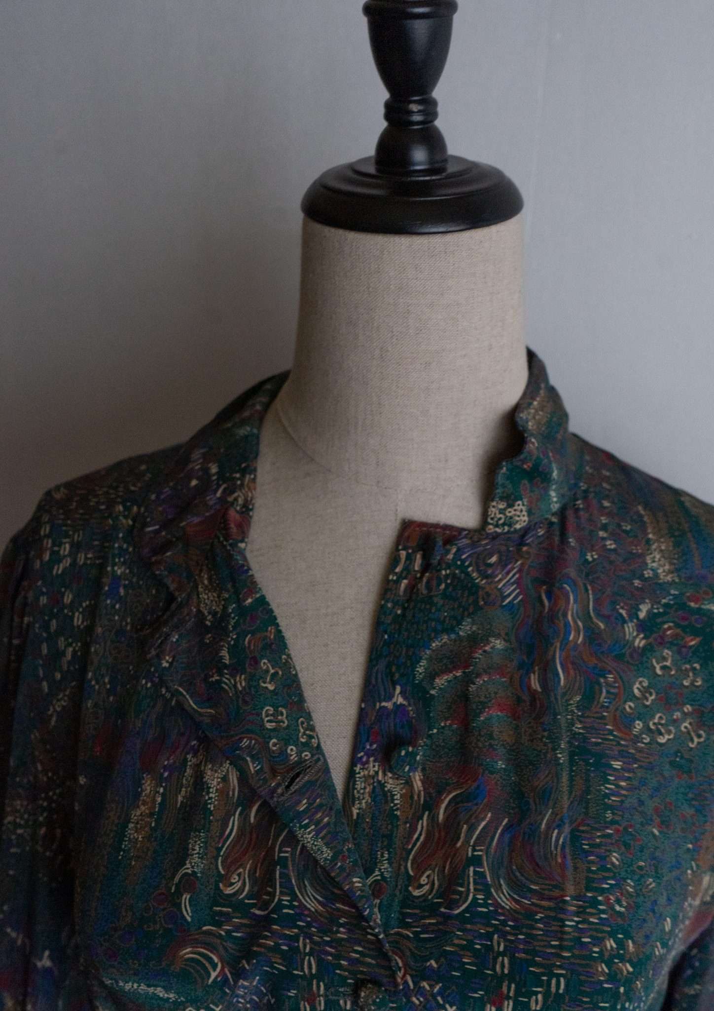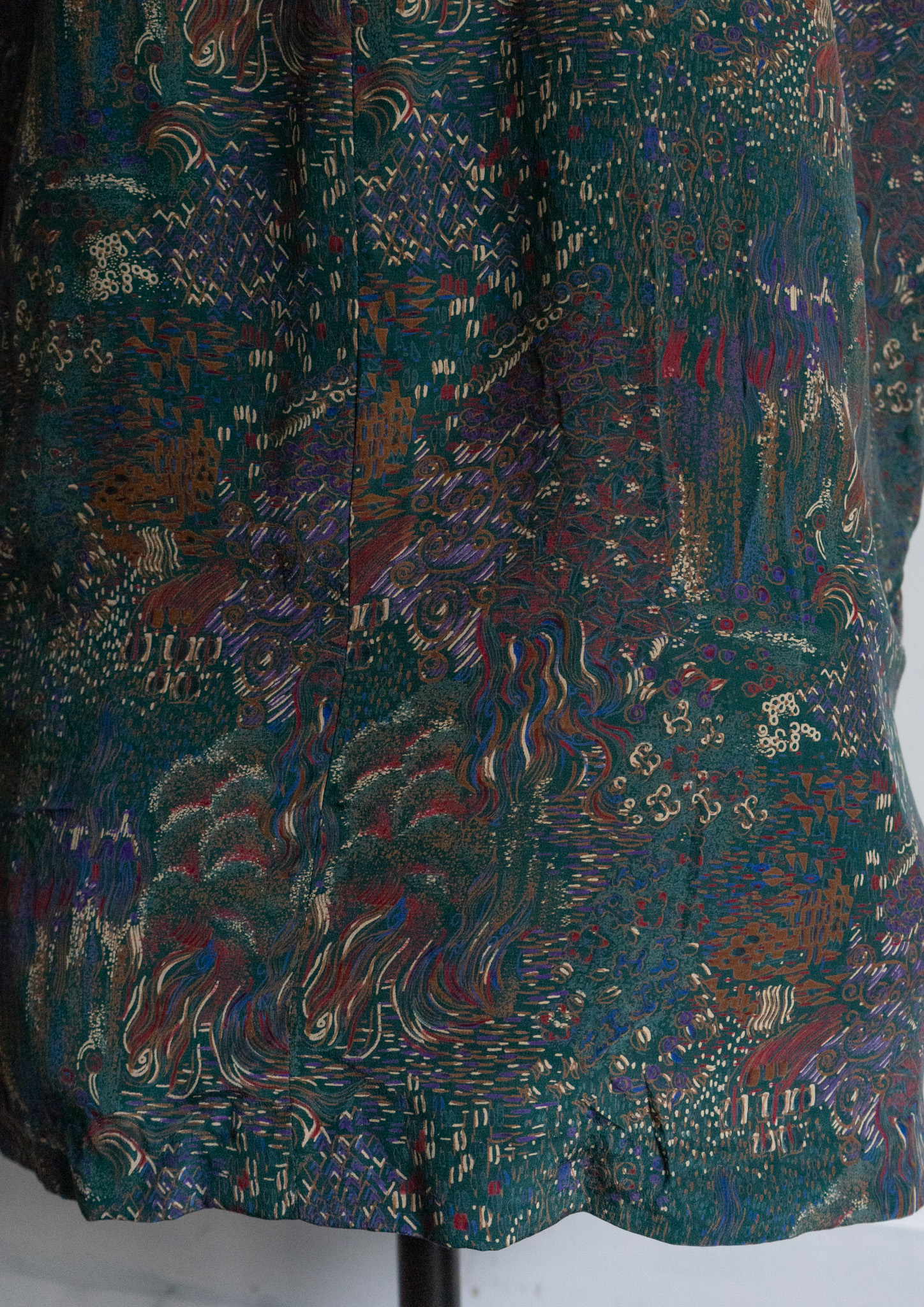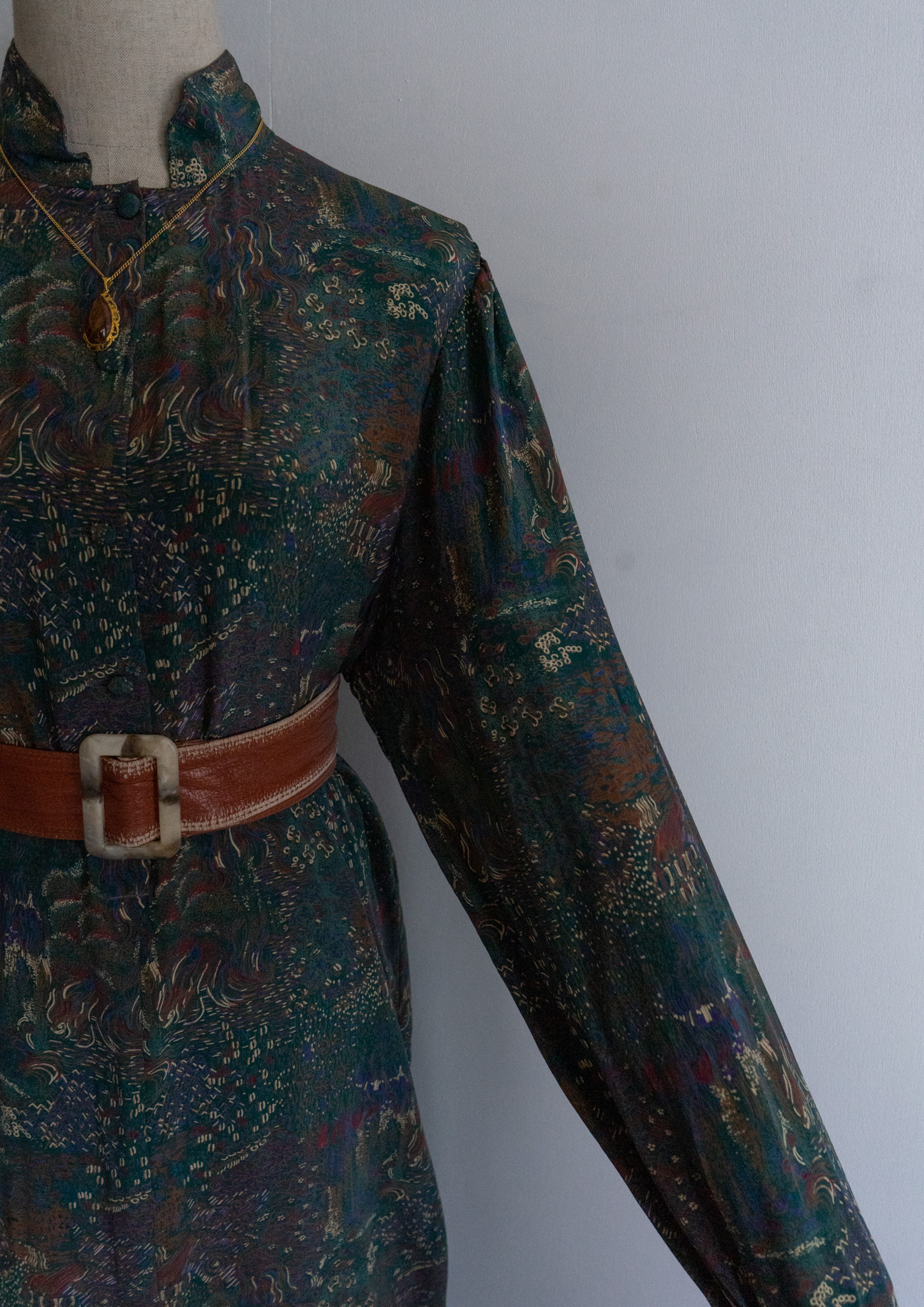 90's Donna Morgan Botanical Pattern Tuck Design Purple Dress