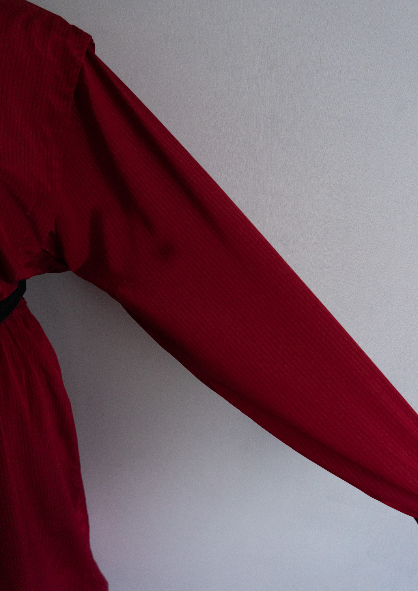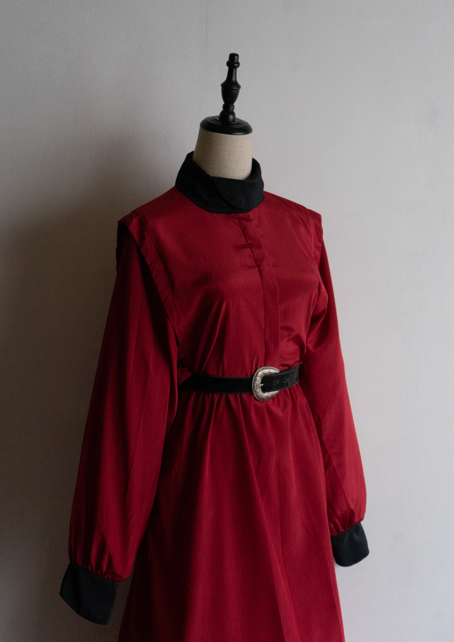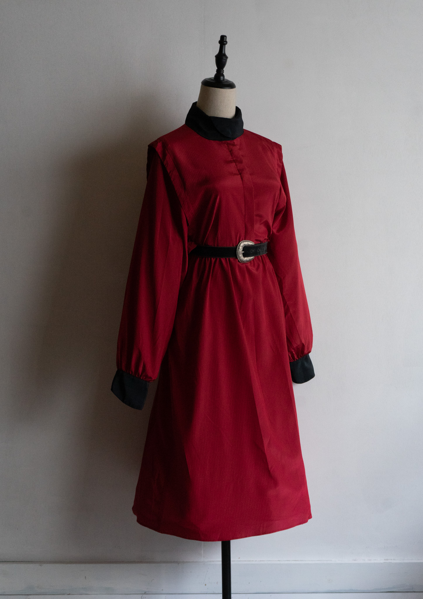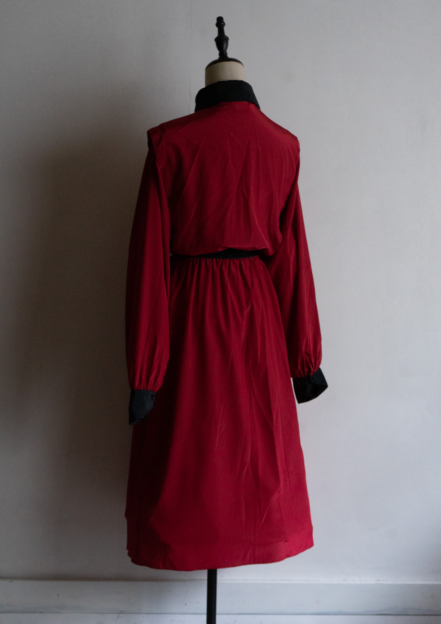 70's USA JC Penney Ribbon × Frill Design Red Dress
