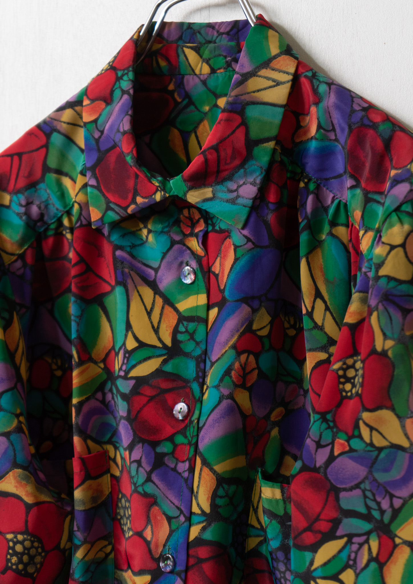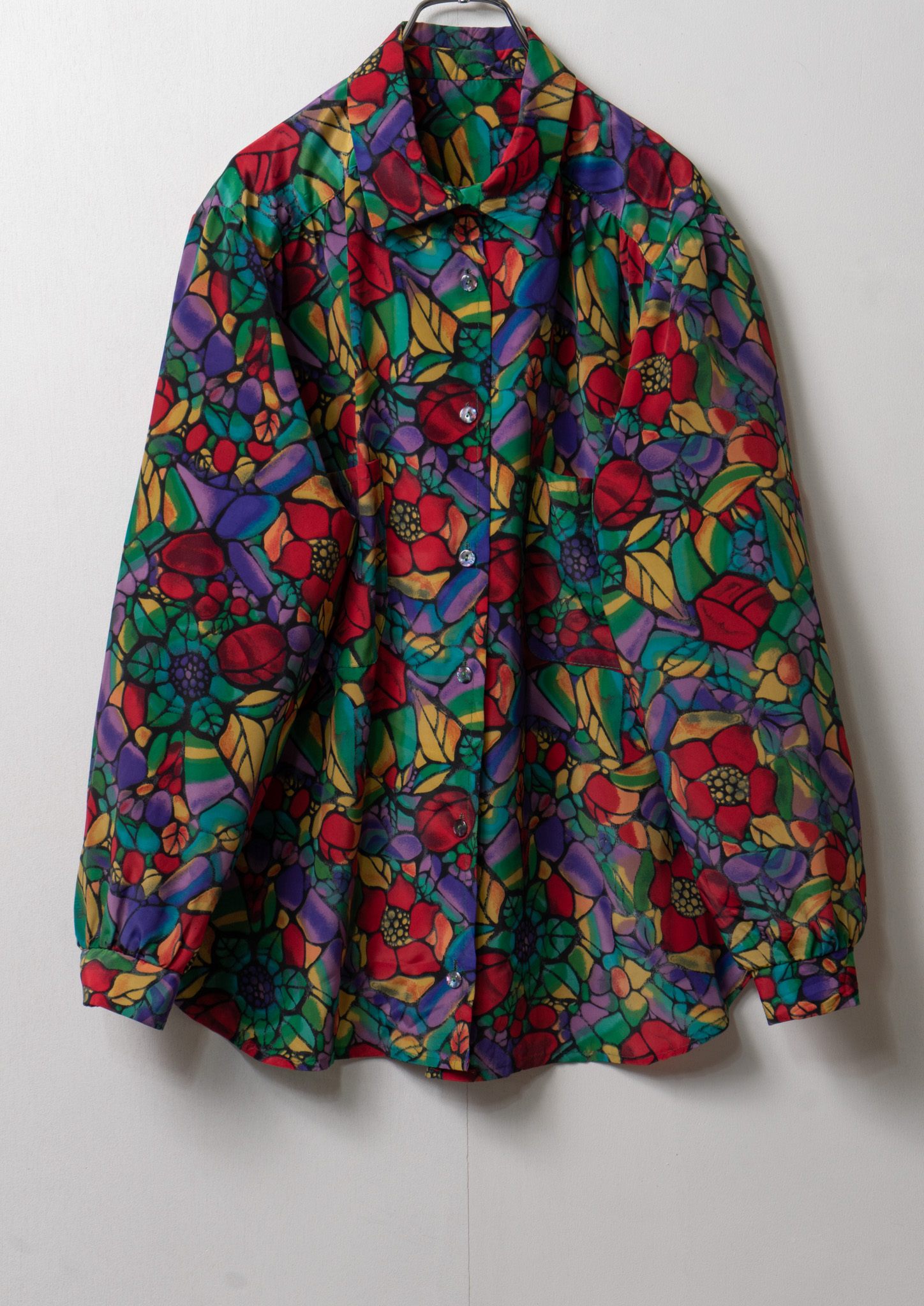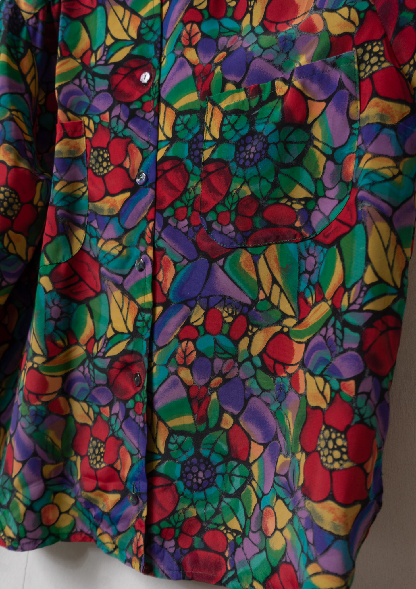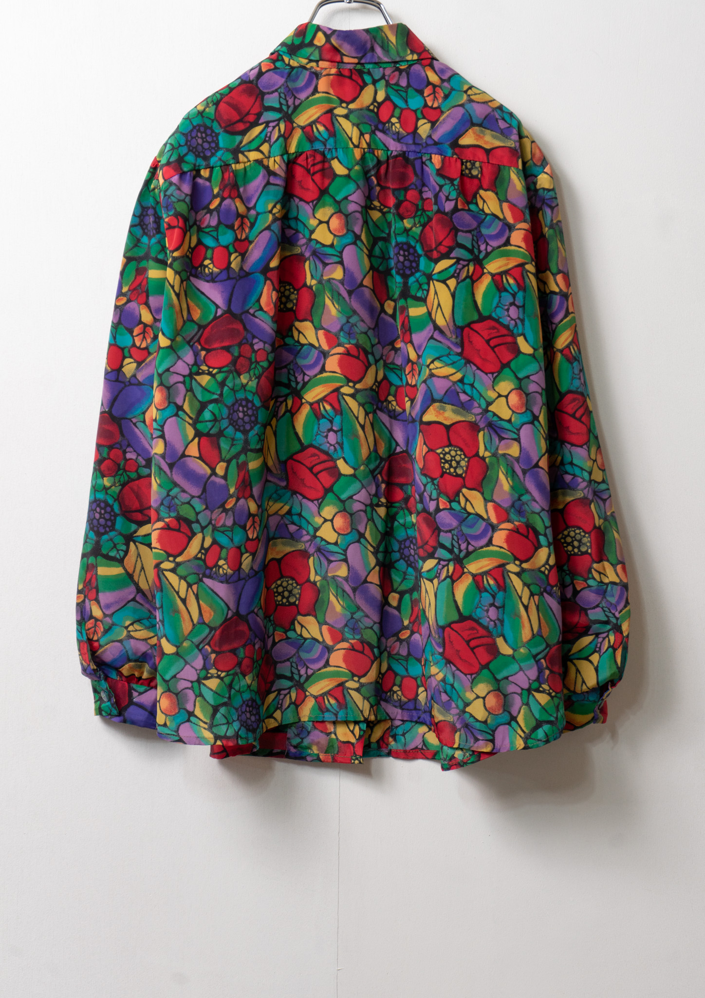80~90's LESLIE FAY Peplum Design Colorful Botanical Pattern Blouse