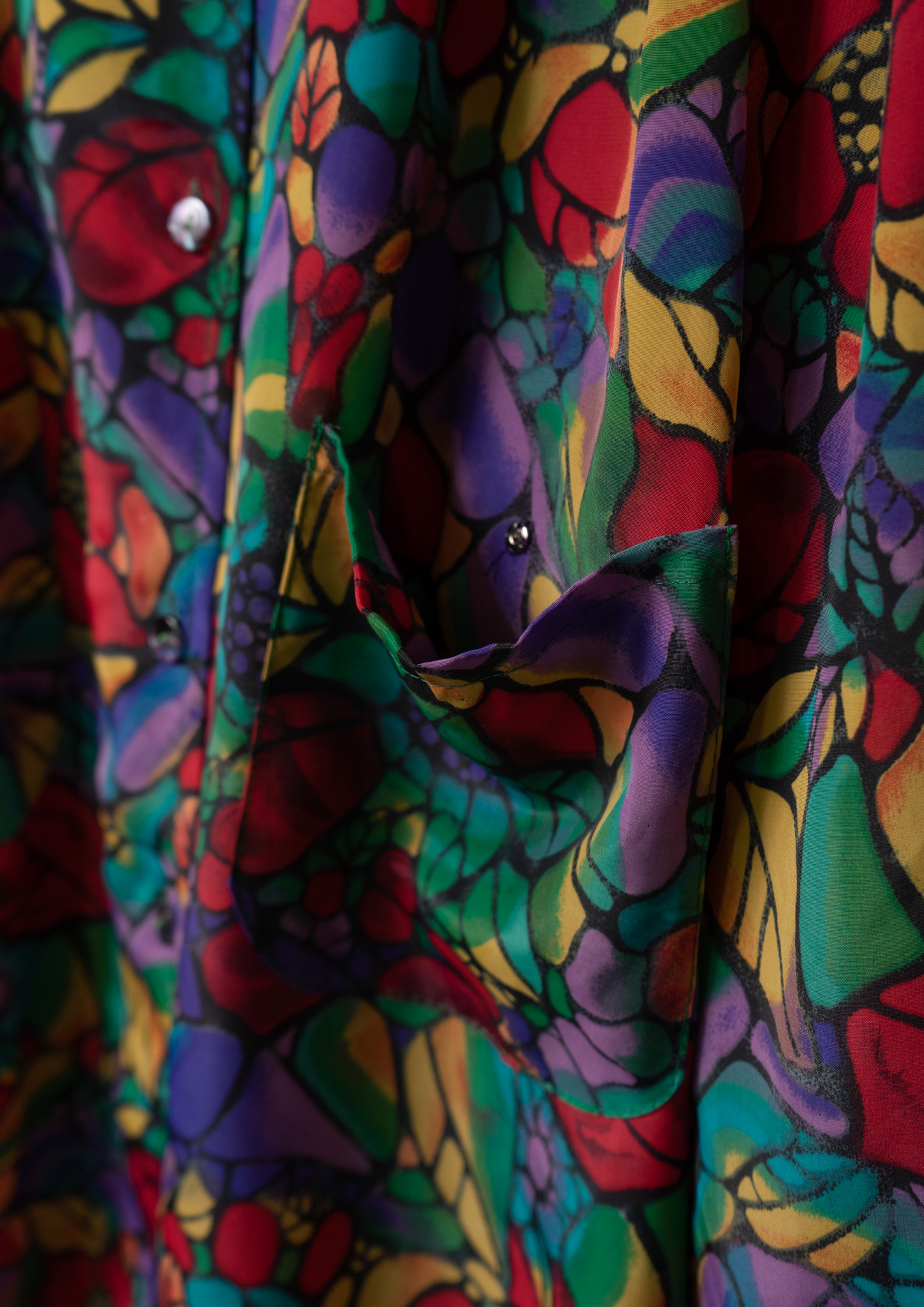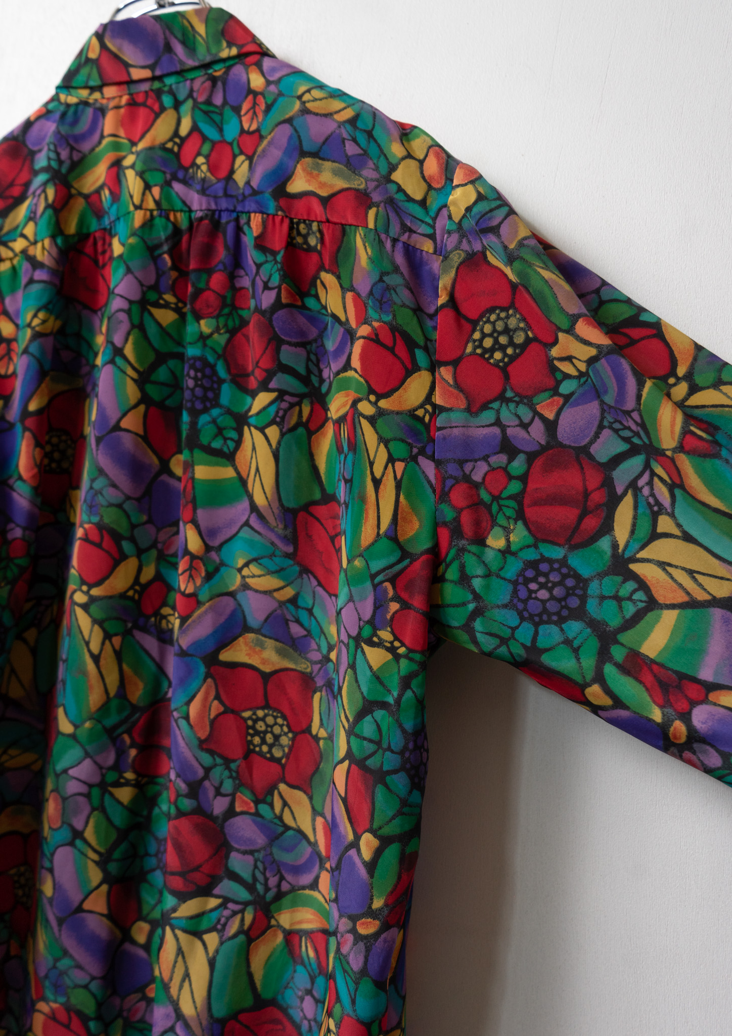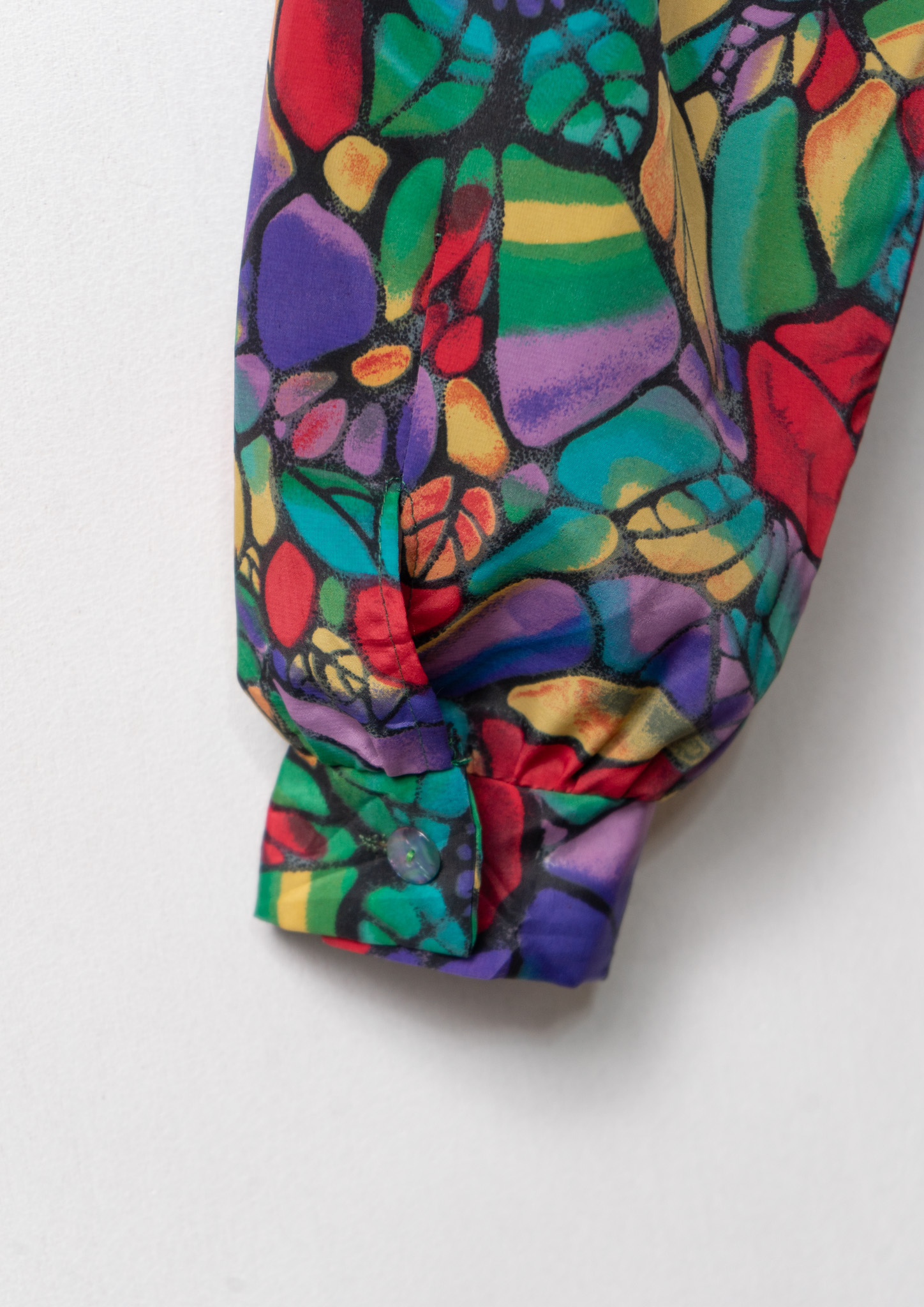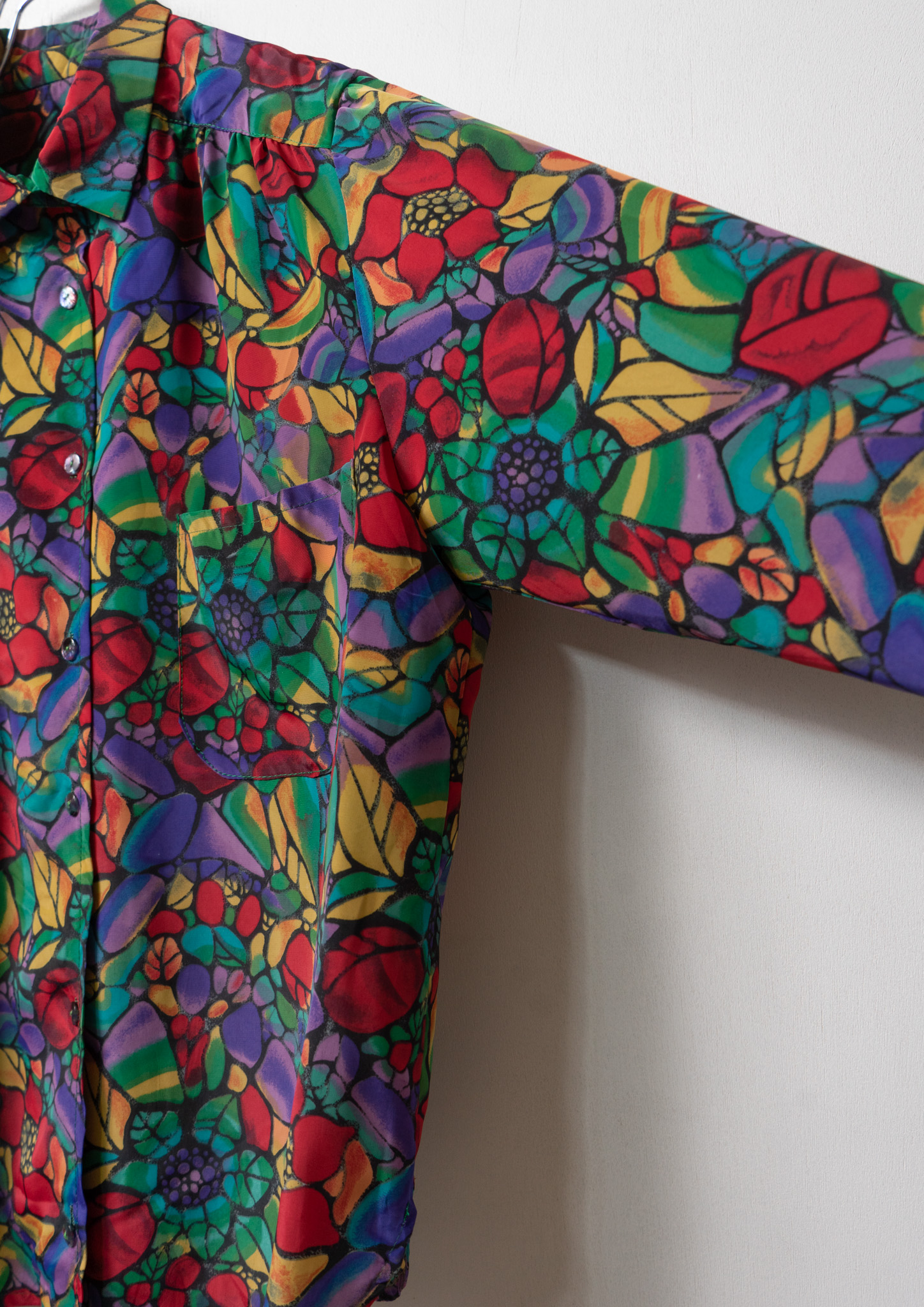 80~90's LESLIE FAY Peplum Design Colorful Botanical Pattern Blouse
