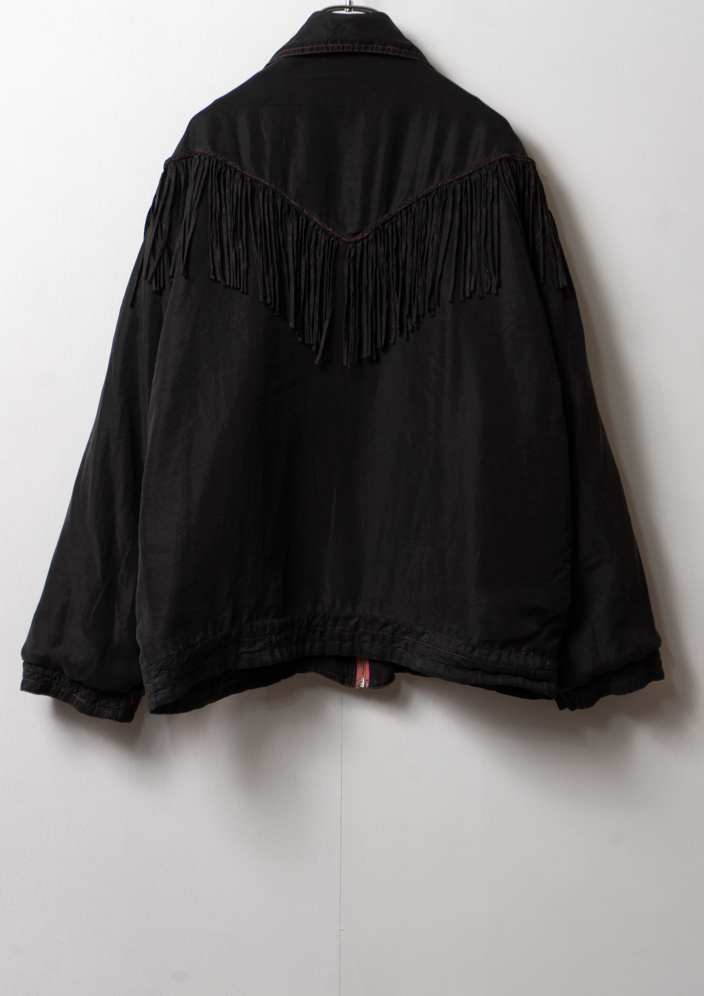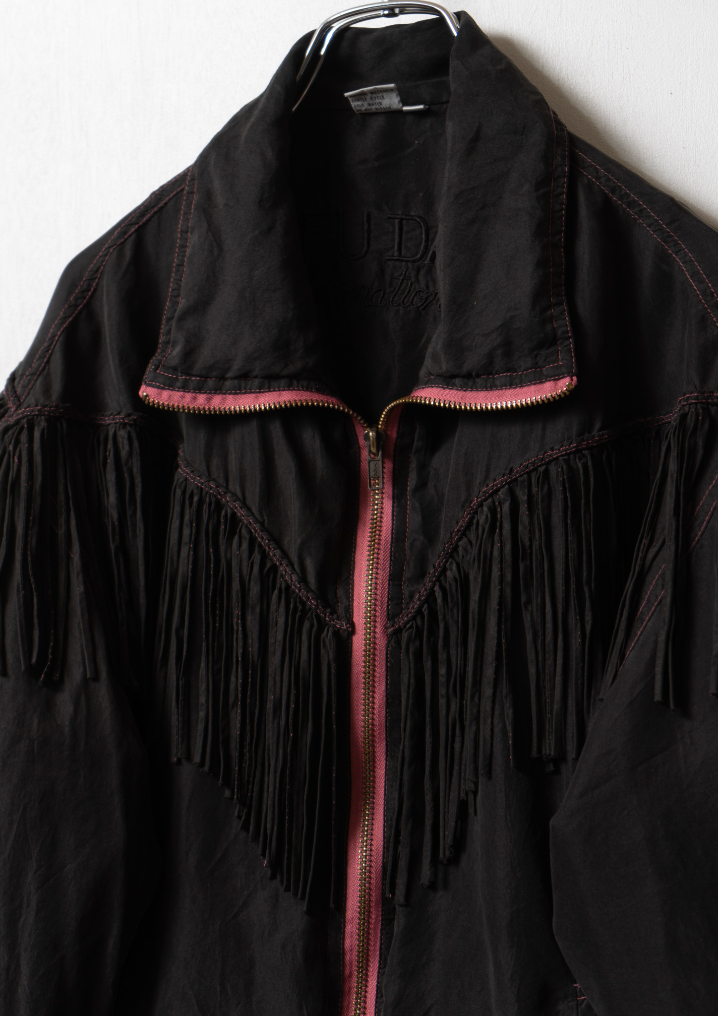 80's Double Gold Button × Fur Design Black Leather Jacket