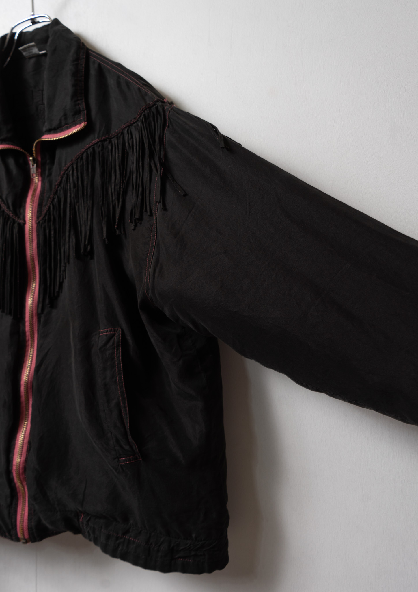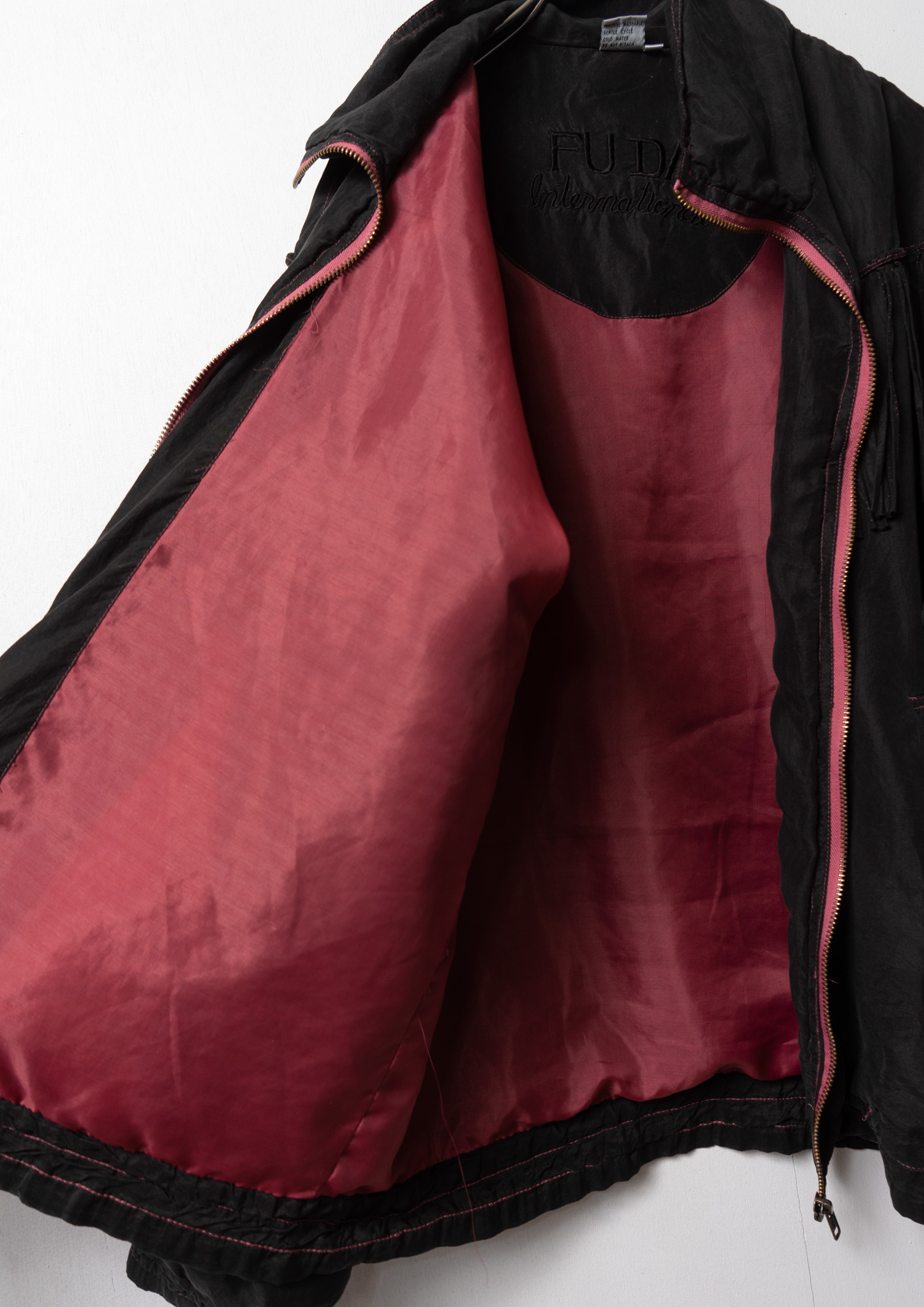 80's Double Pocket Design Point Leopard Pattern Black Wool Jacket