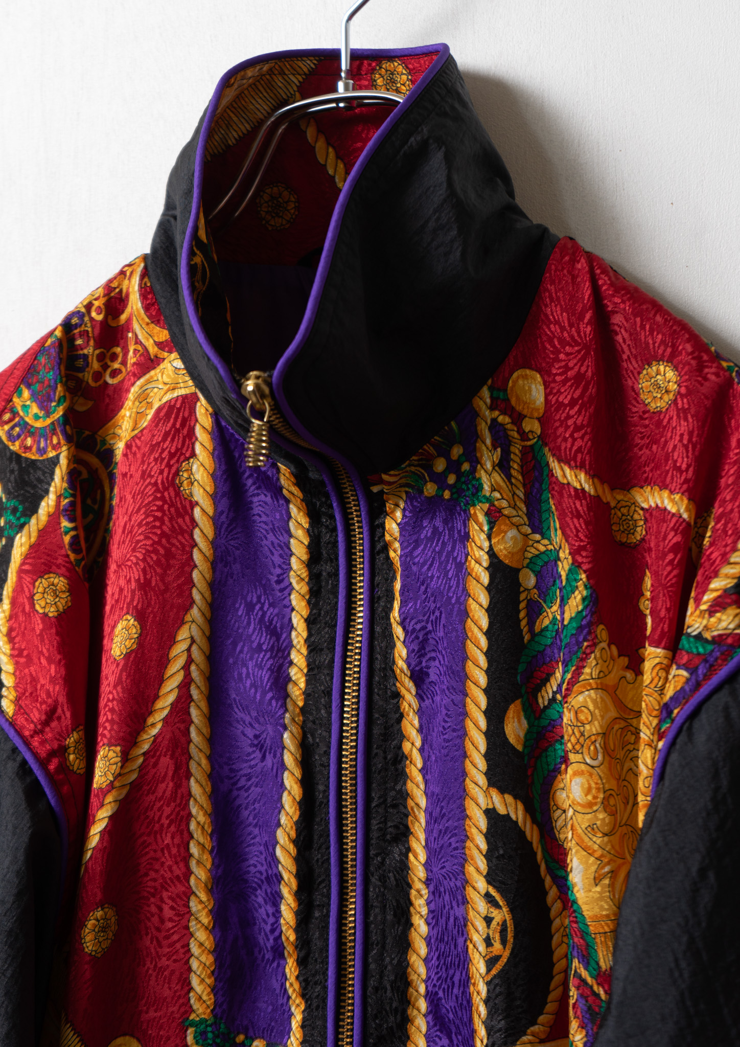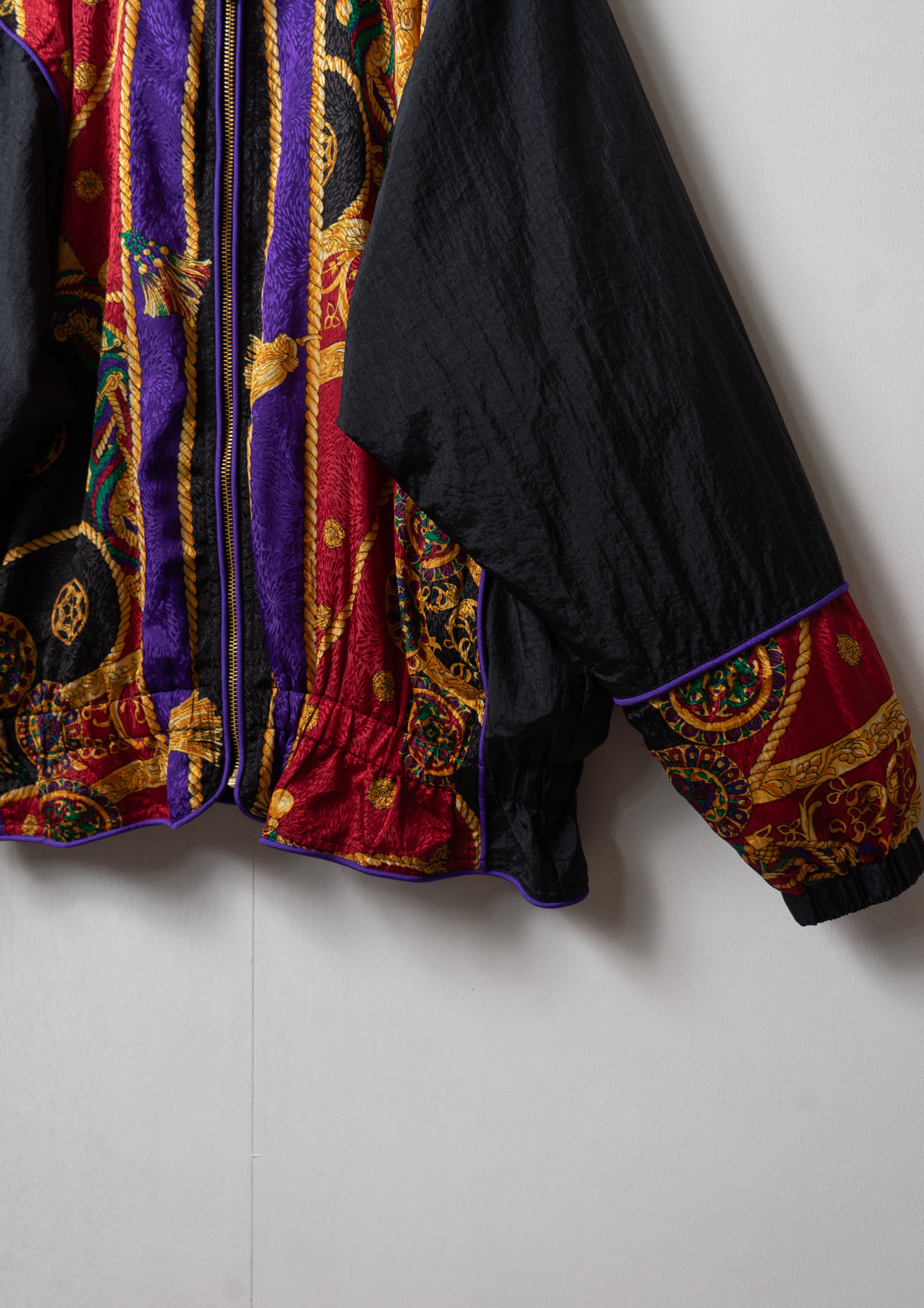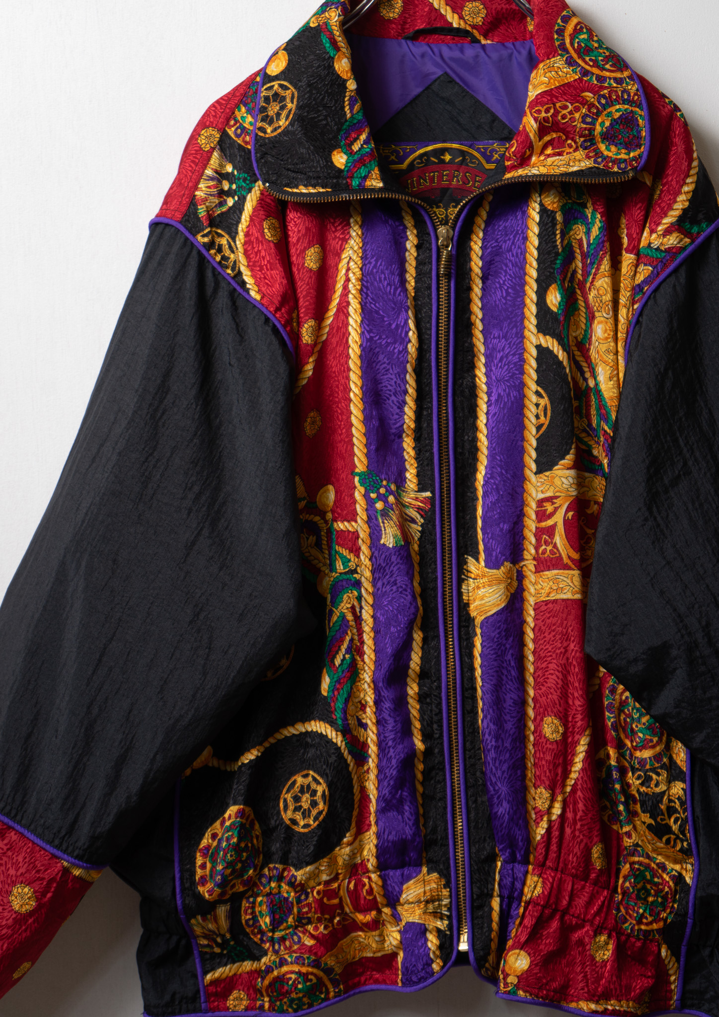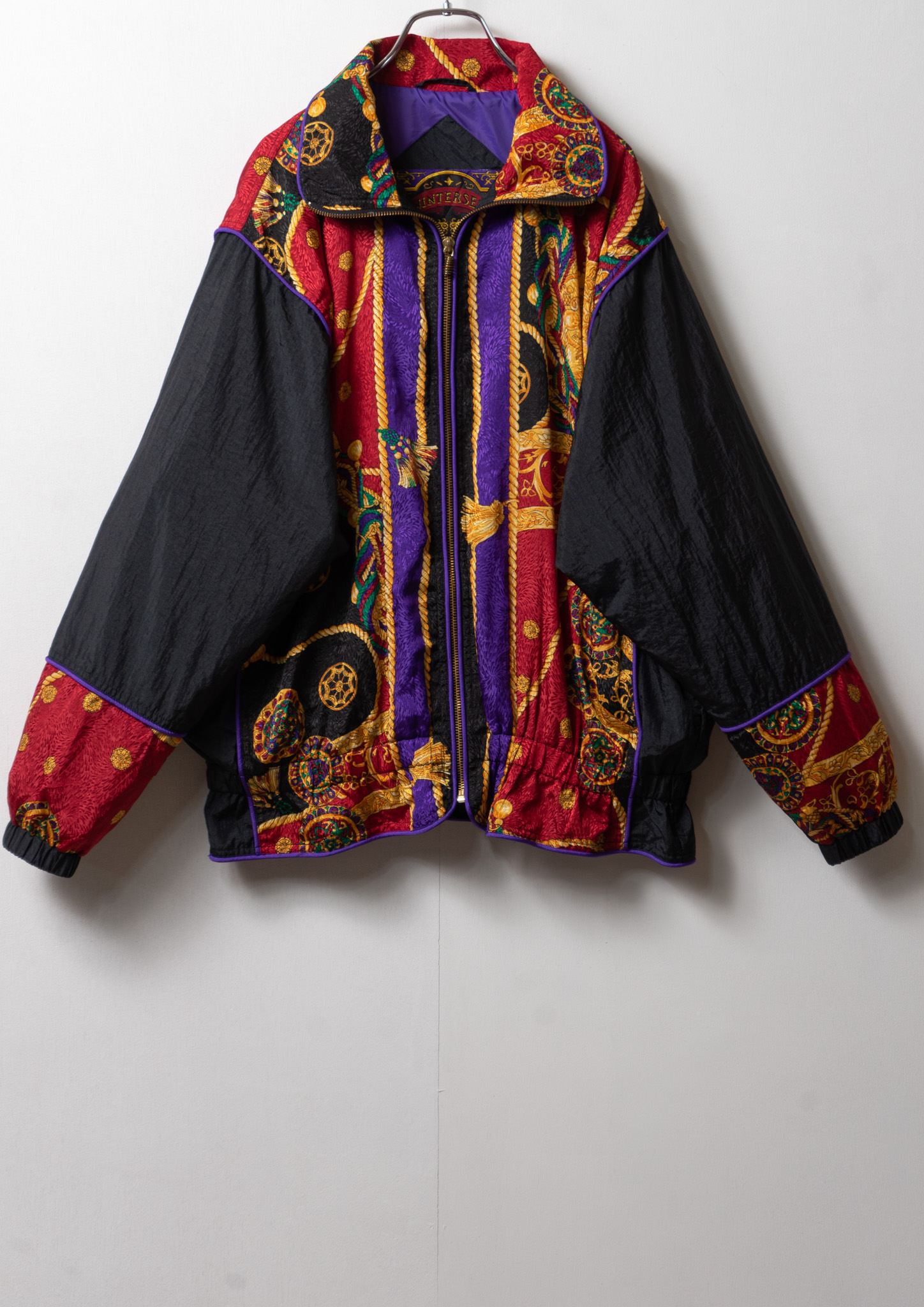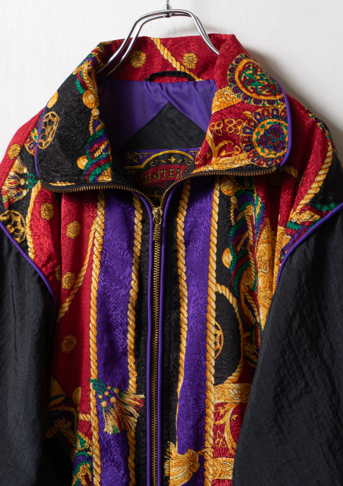 80's Double Pocket Design Point Leopard Pattern Black Wool Jacket