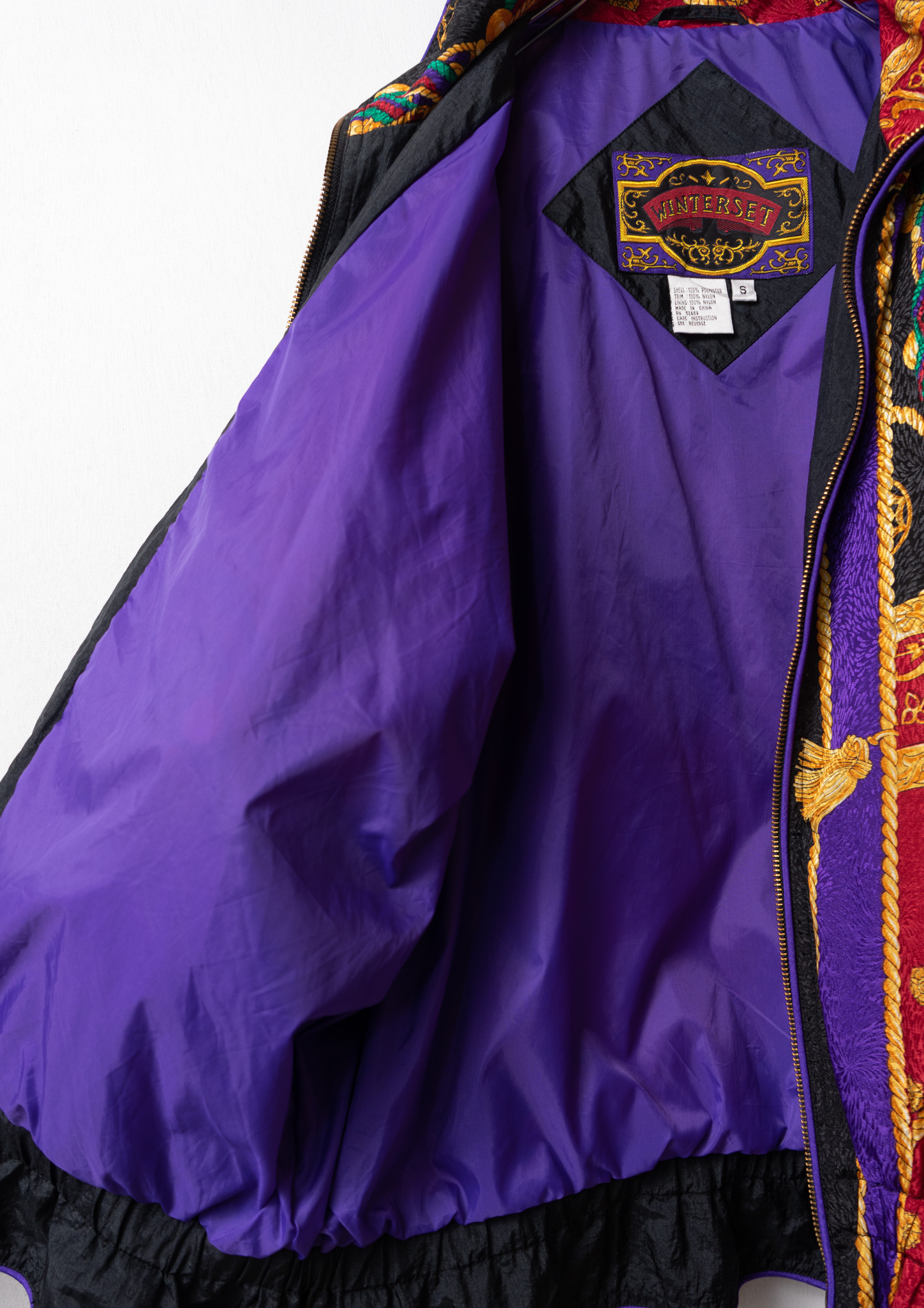 Leaf Embroidery × Double Pocket Design Point Corduroy Pattern Light Purple Boa Jacket