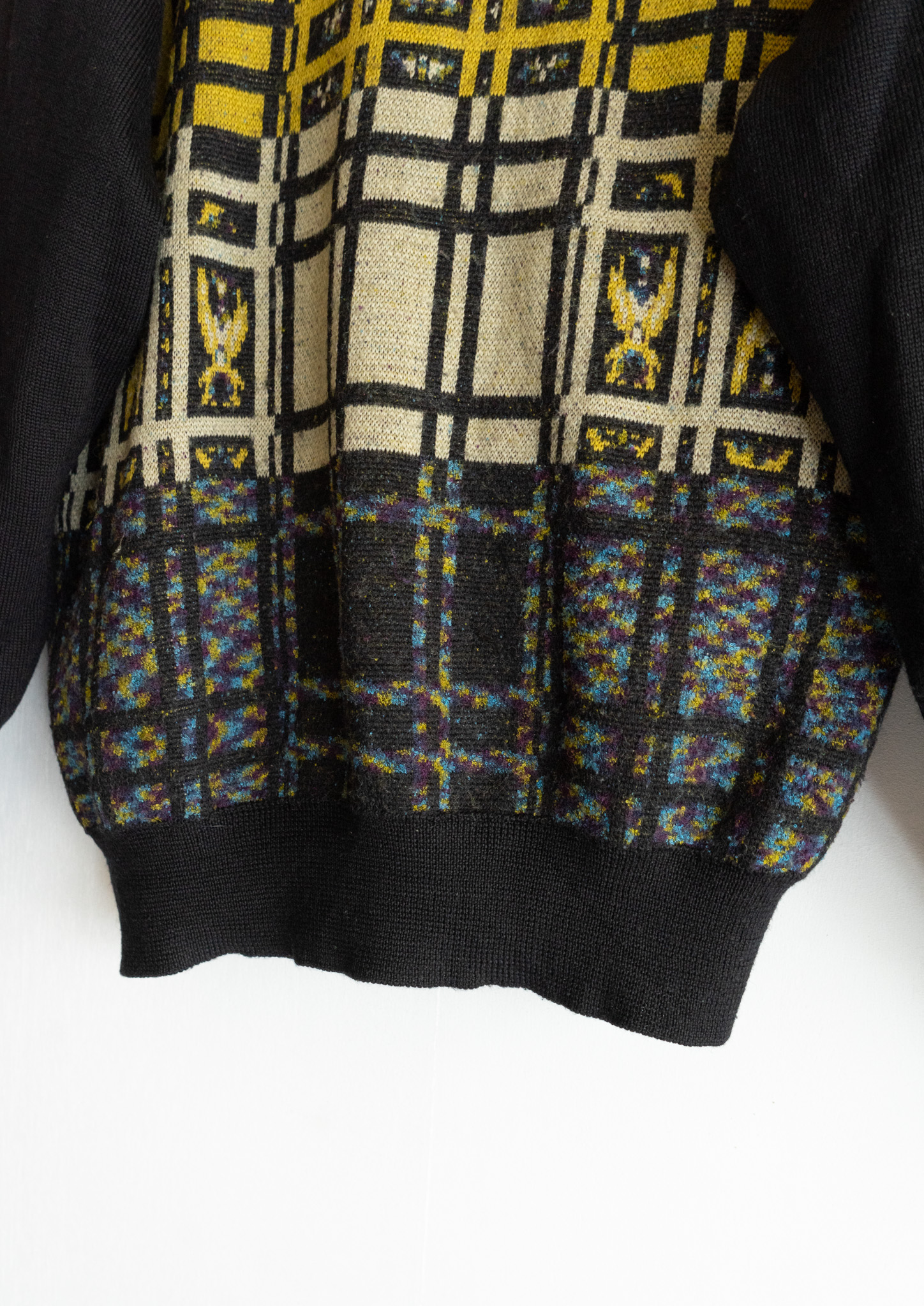 80's Austria Heat Tyrol Button Design Green × Black Knit Tyrol Cardigan