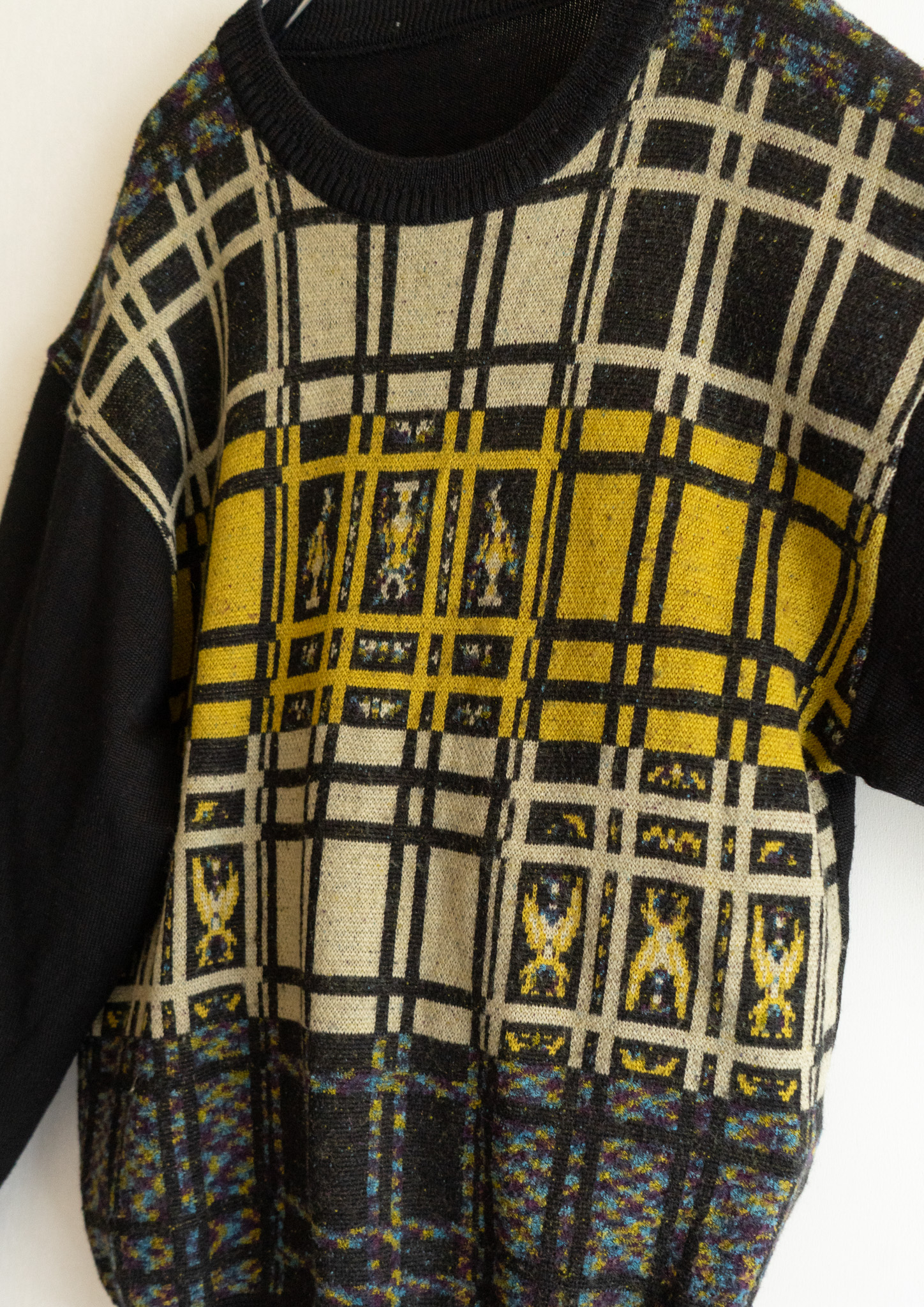 80~90's USA Tennis Art Pattern White Knit Sweater