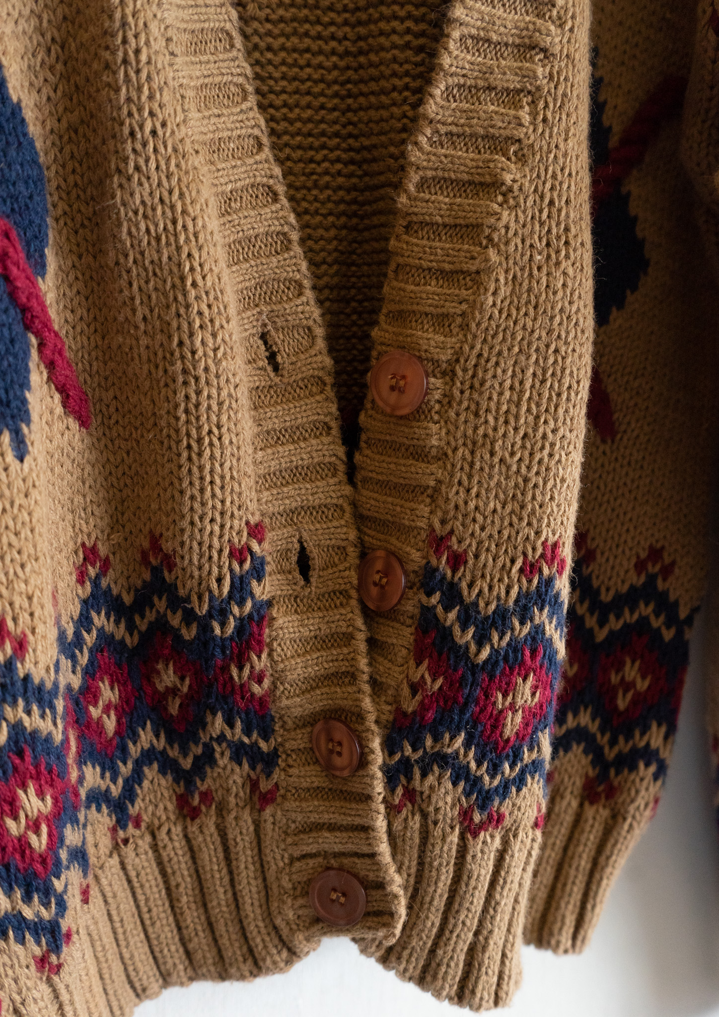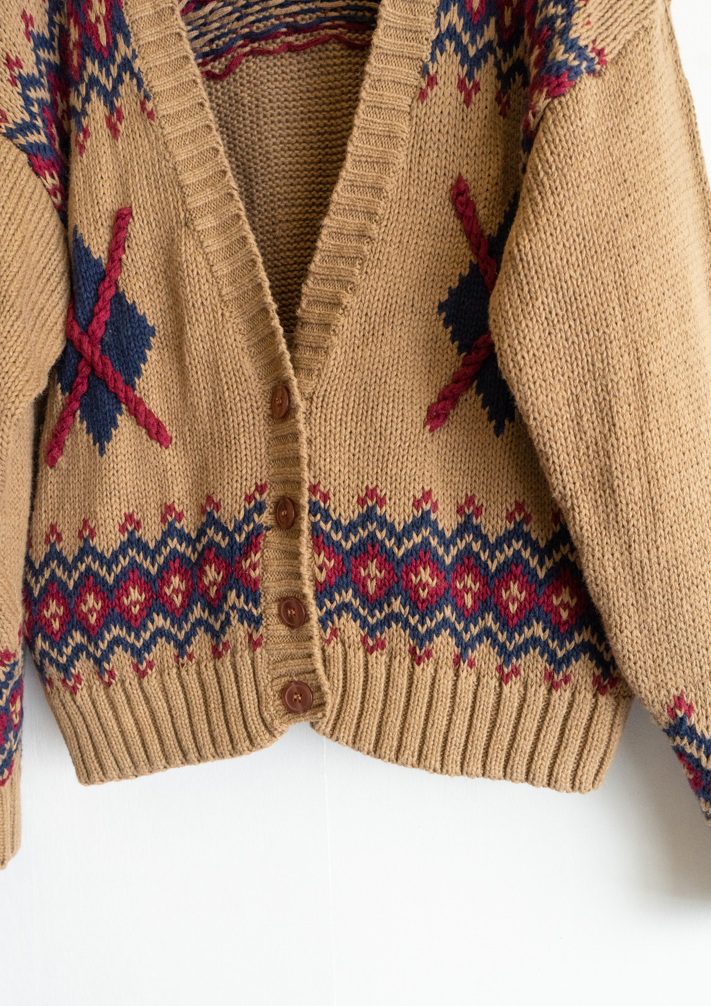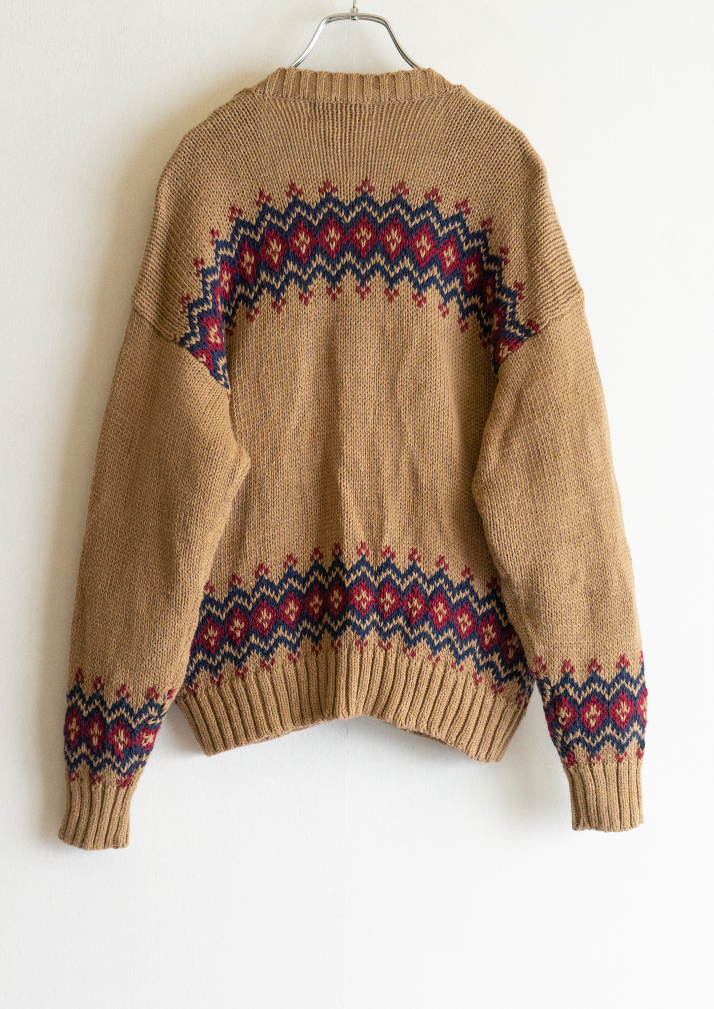 80's Nordic Pattern Beige Knit Cardigan