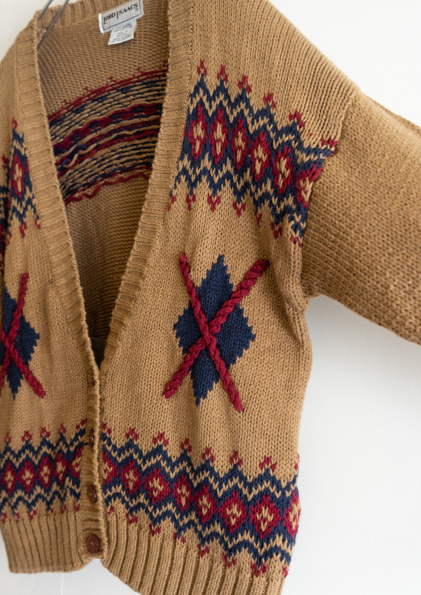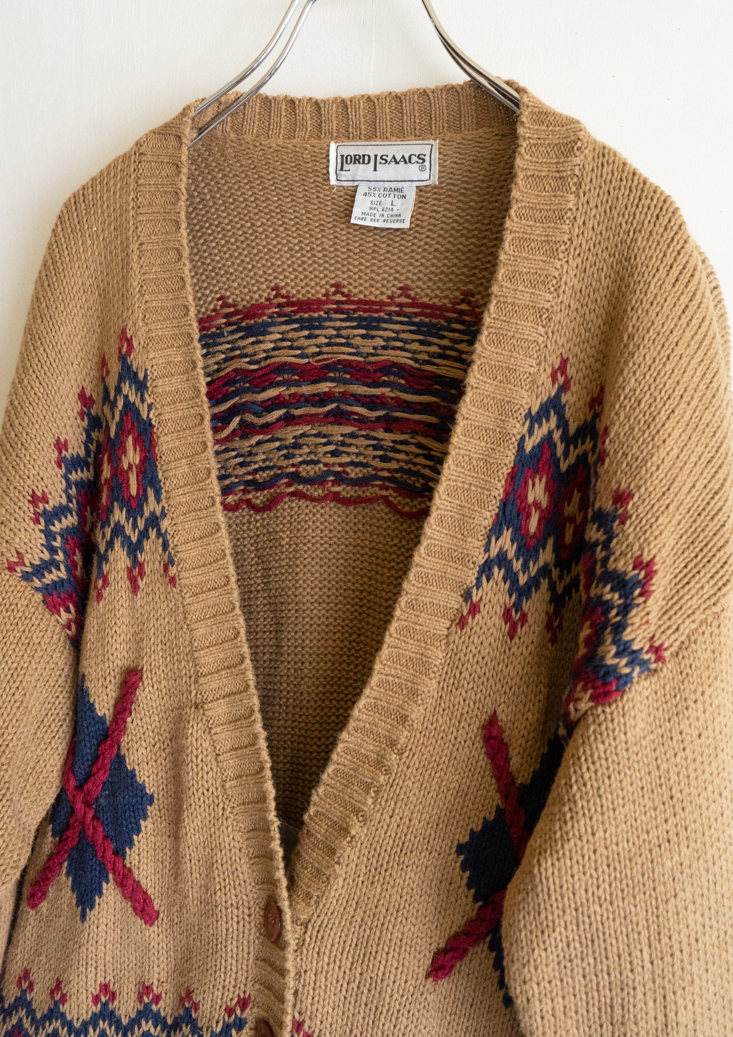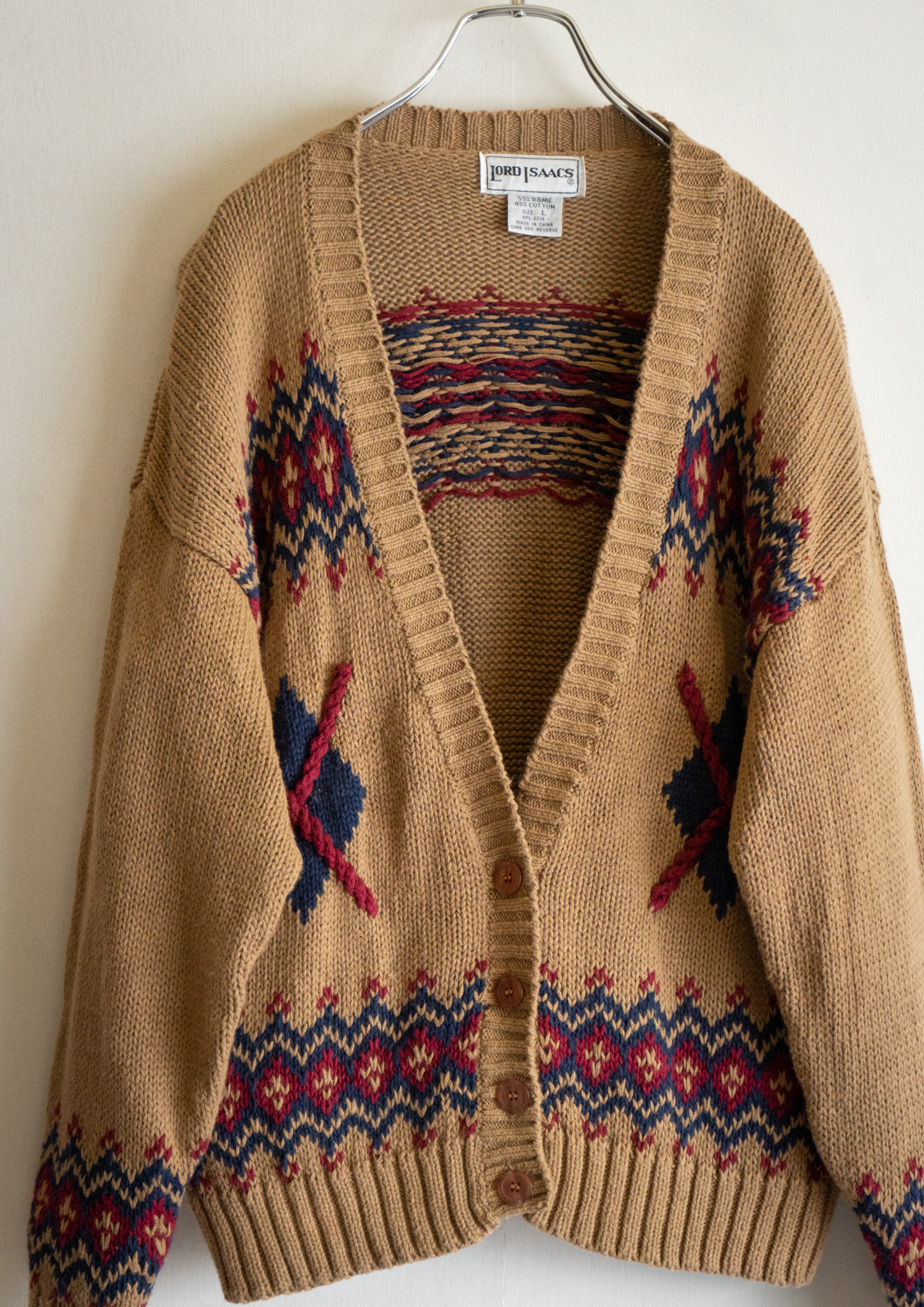 80's Nordic Pattern Beige Knit Cardigan