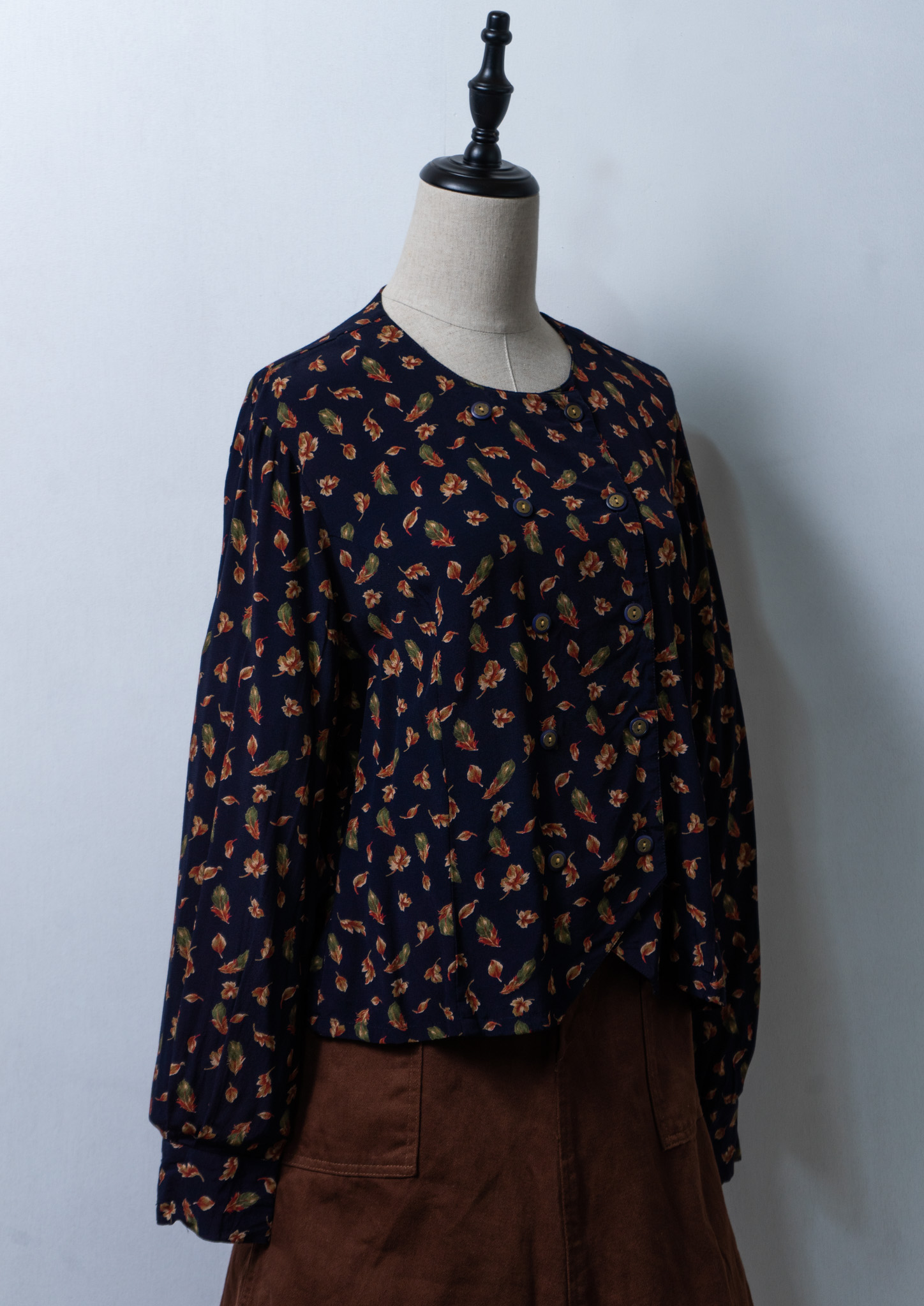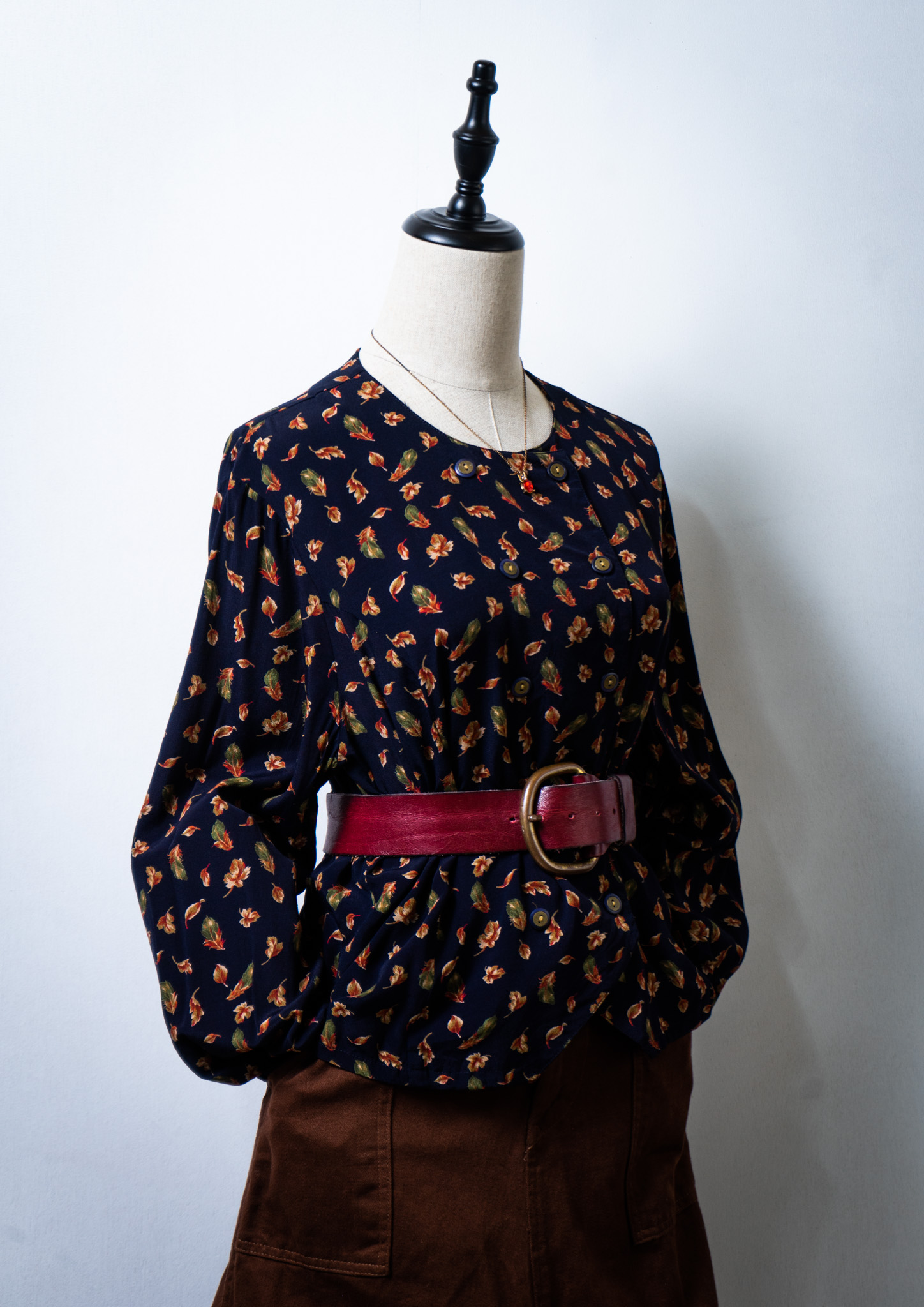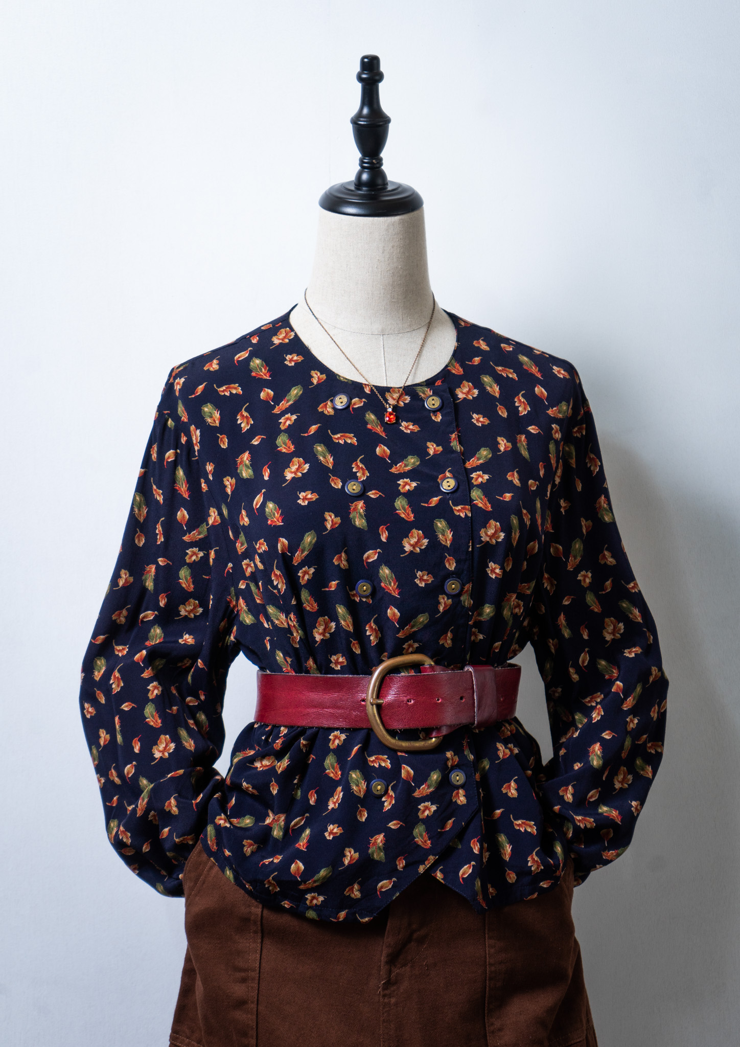 80~90's LESLIE FAY Peplum Design Colorful Botanical Pattern Blouse