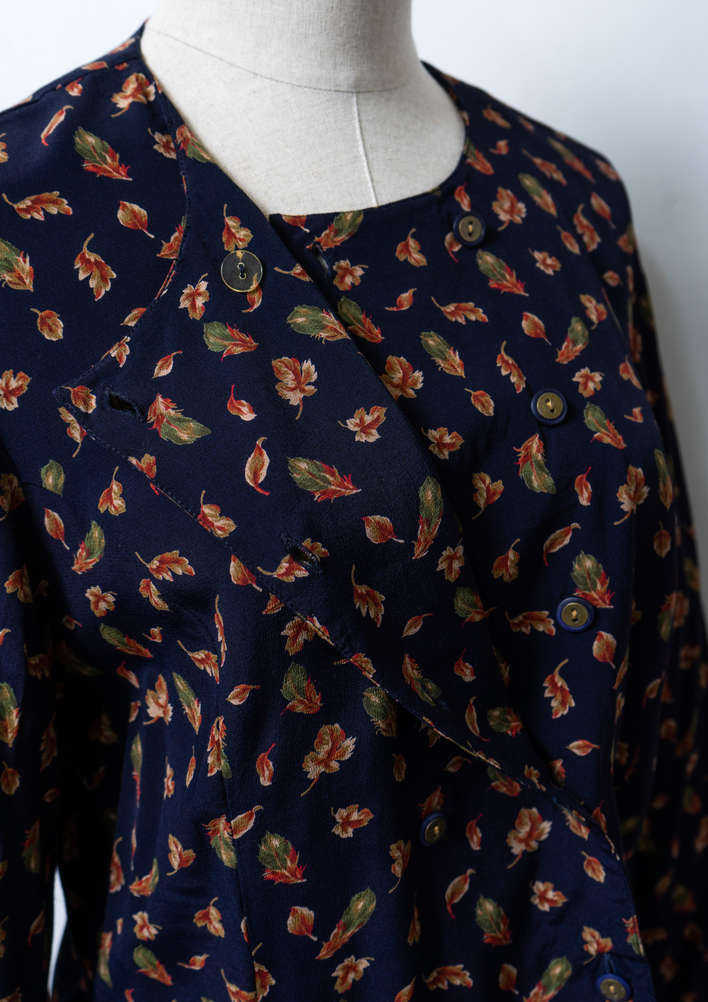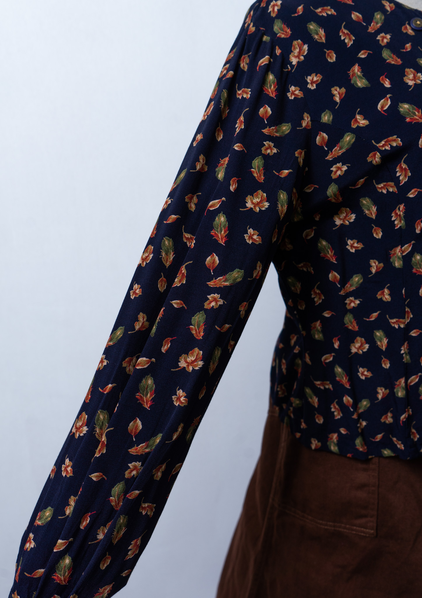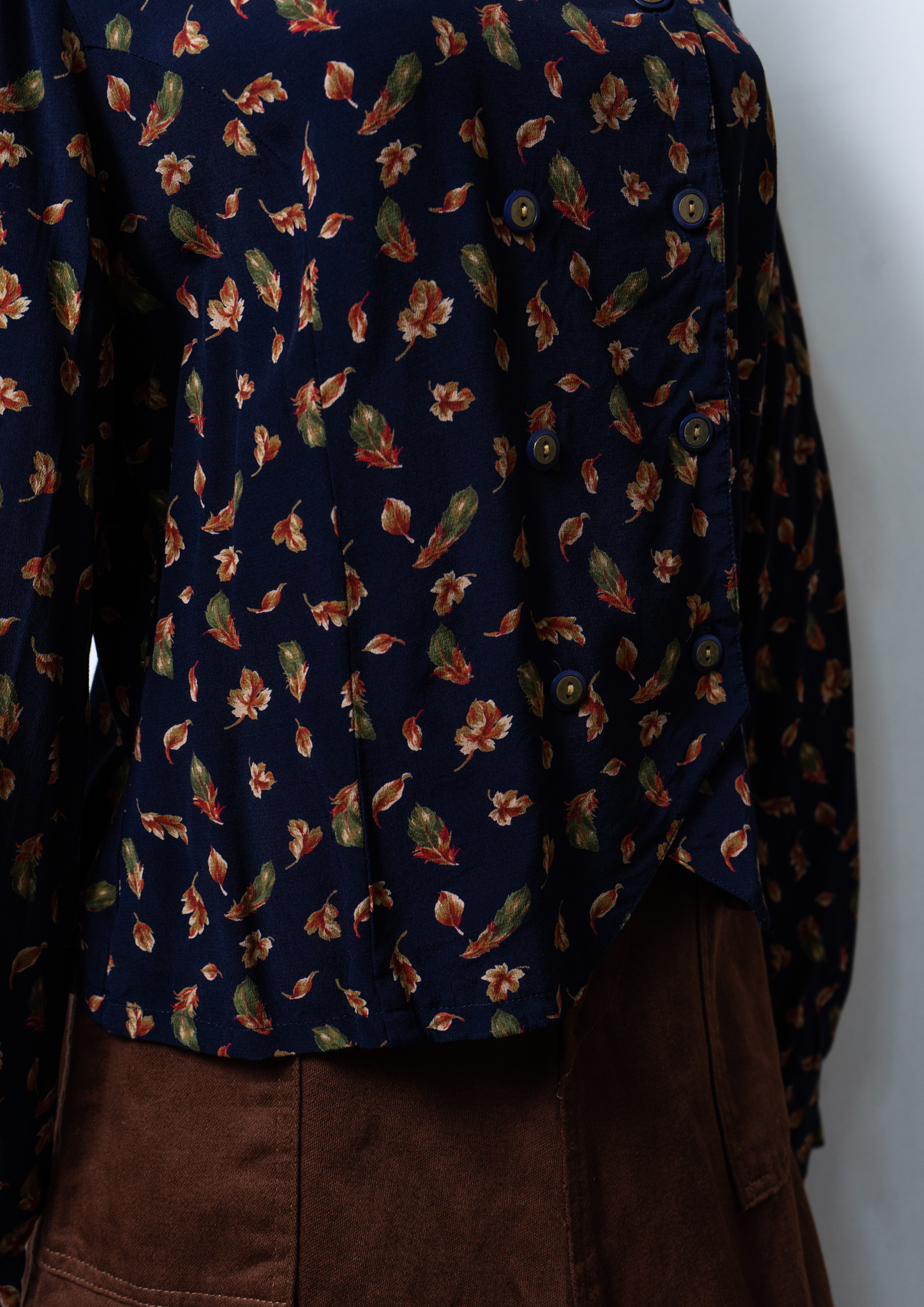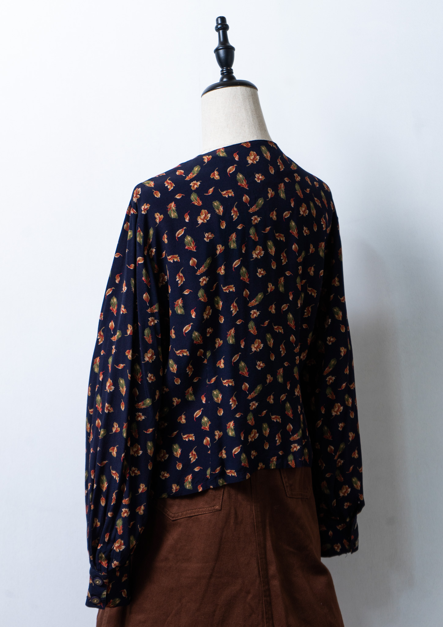 80~90's LESLIE FAY Peplum Design Colorful Botanical Pattern Blouse