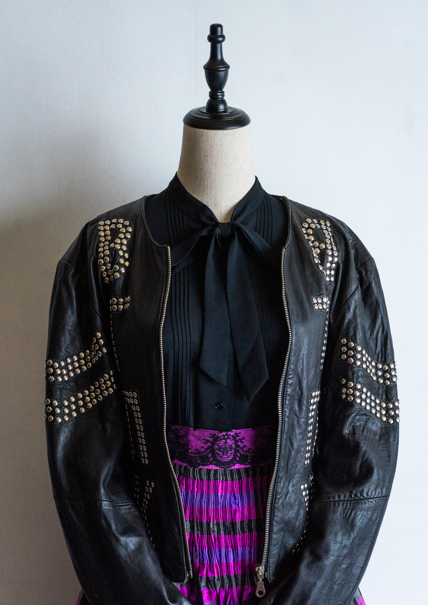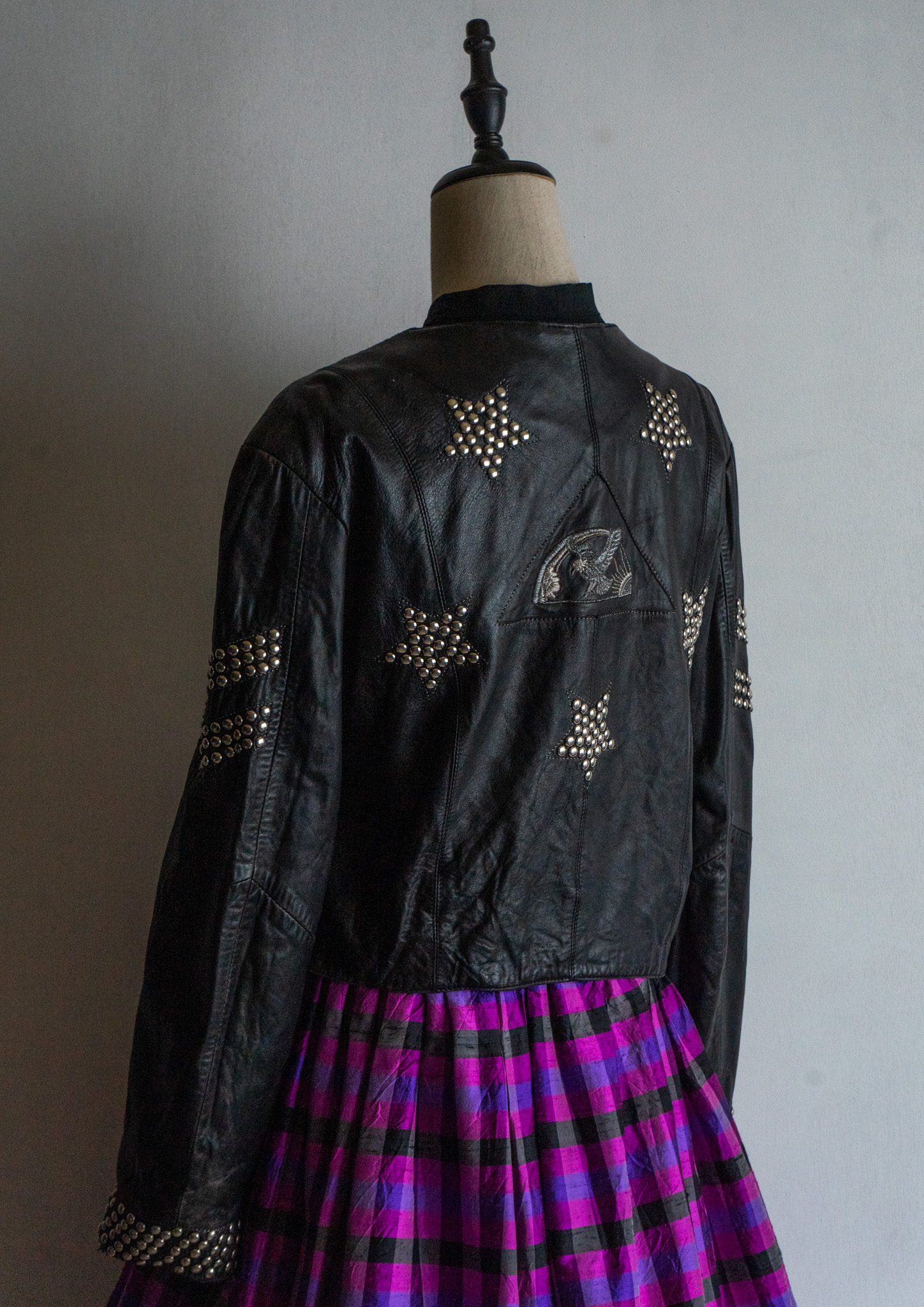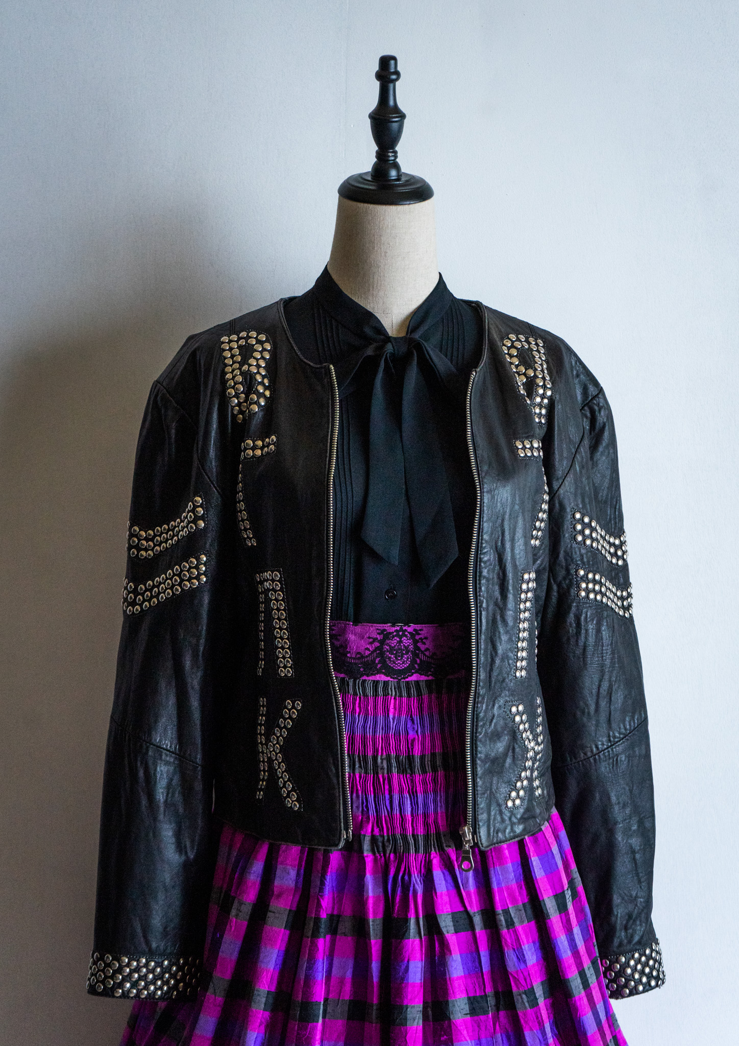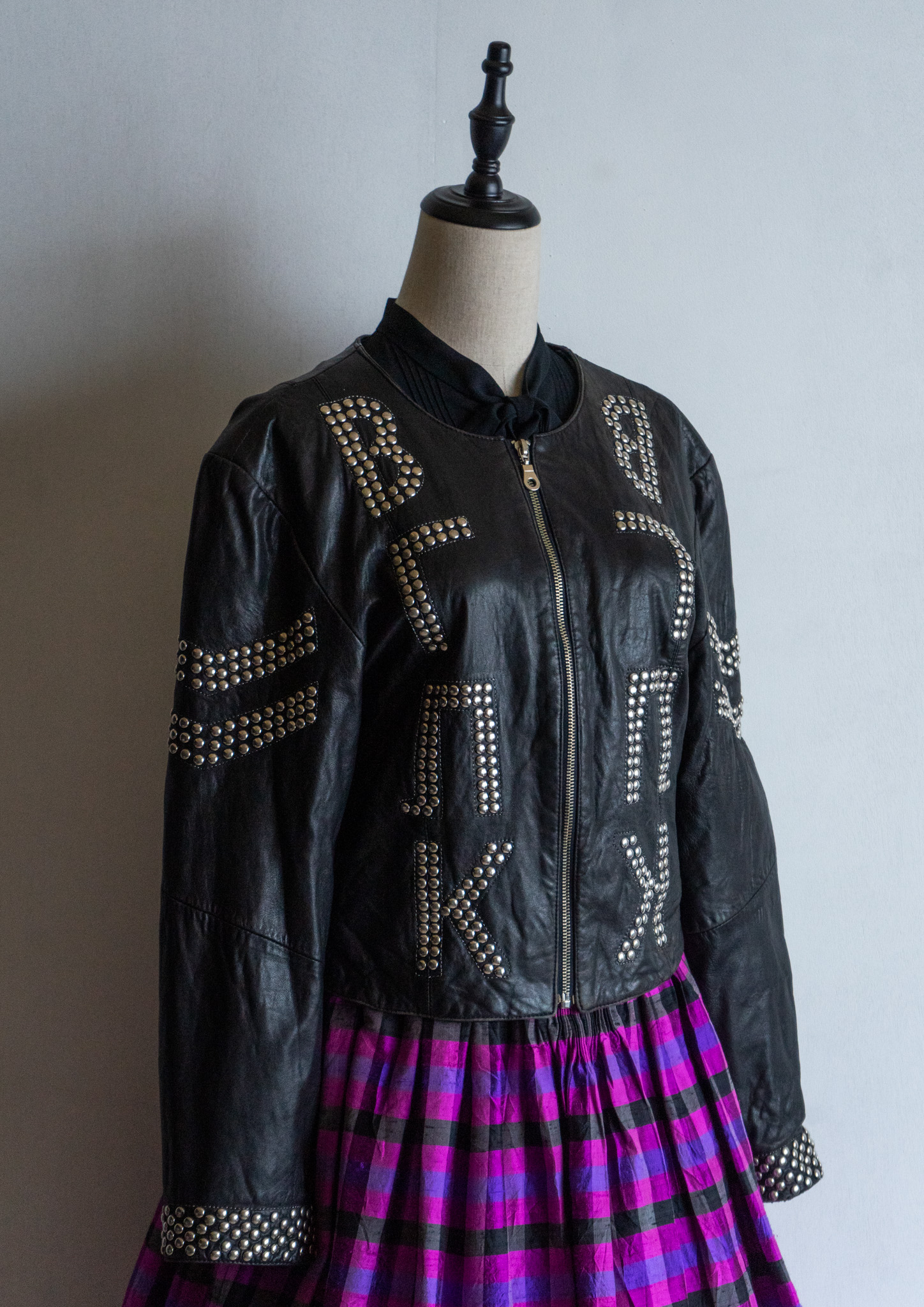 80's Double Gold Button × Fur Design Black Leather Jacket