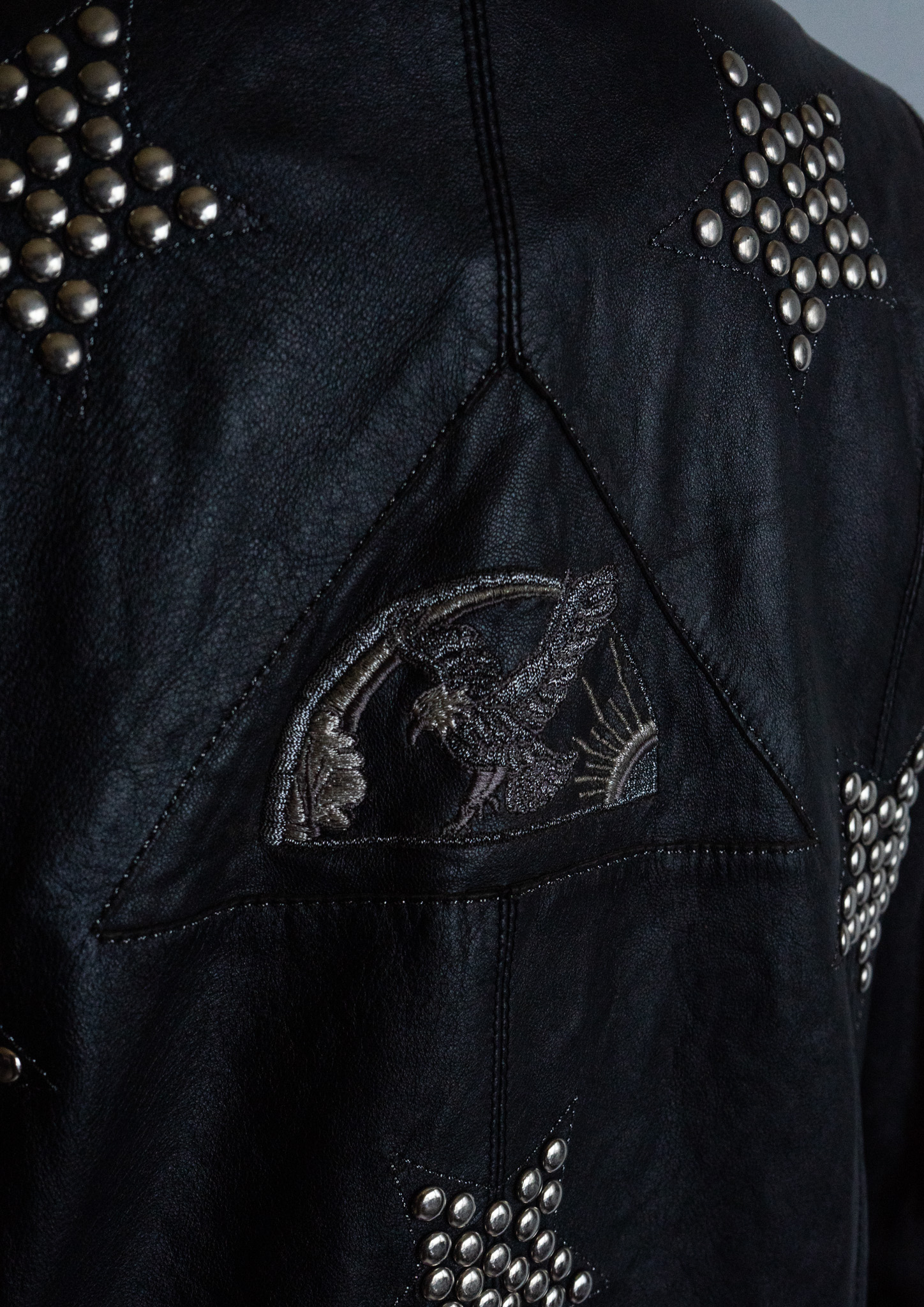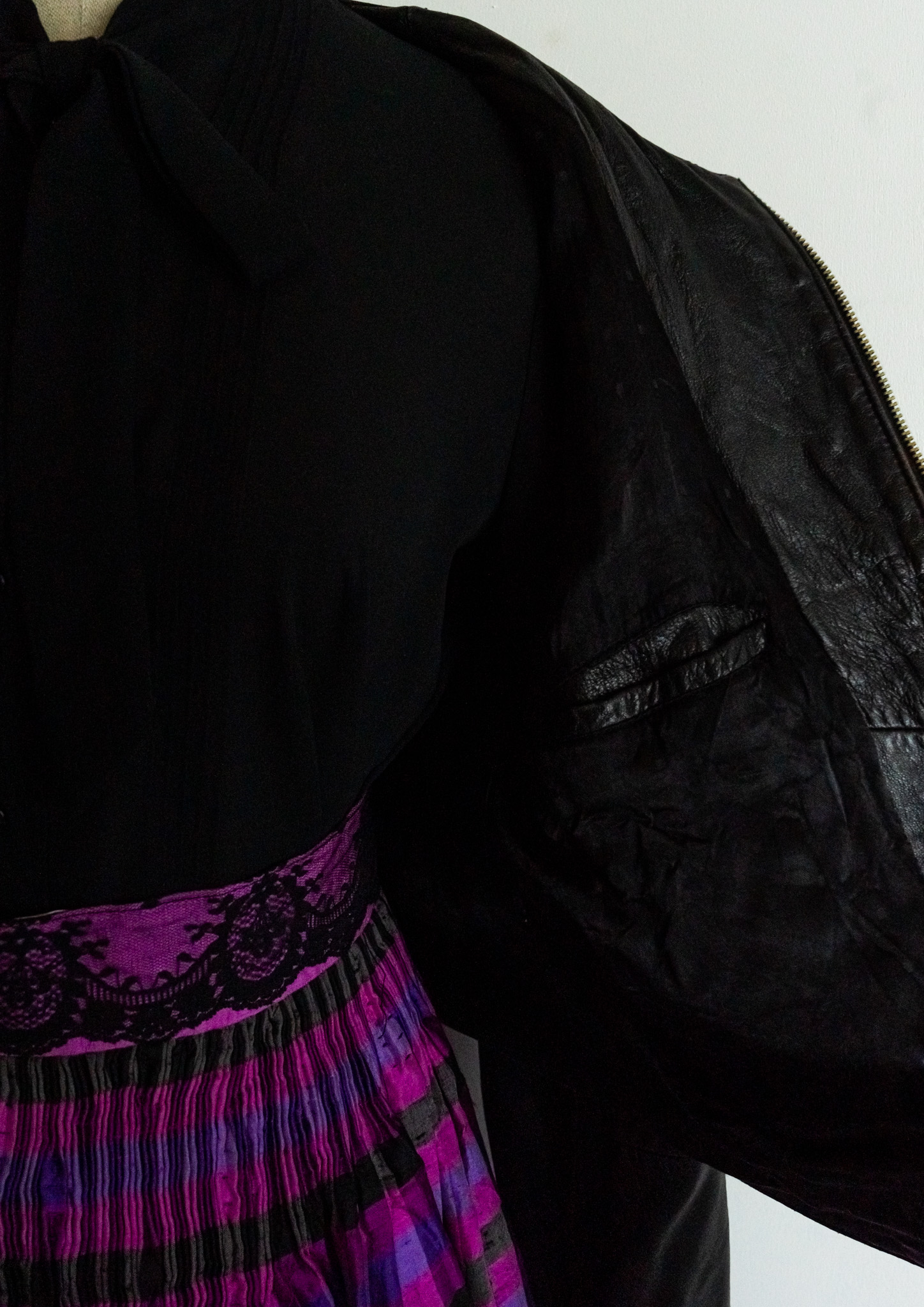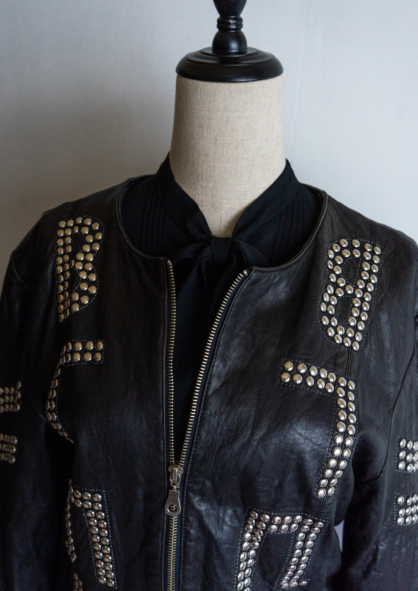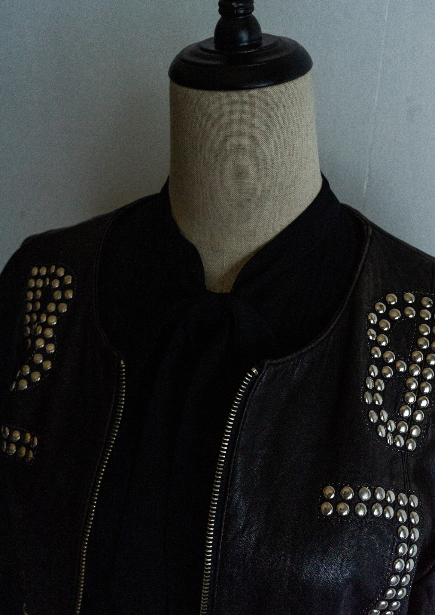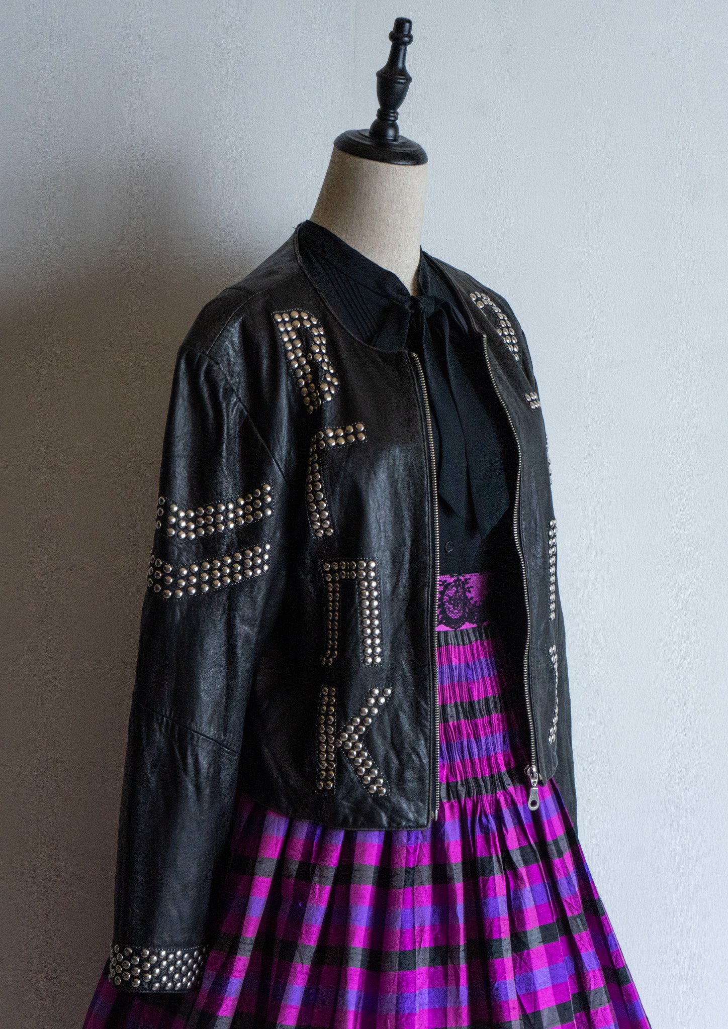 80's Double Gold Button × Fur Design Black Leather Jacket