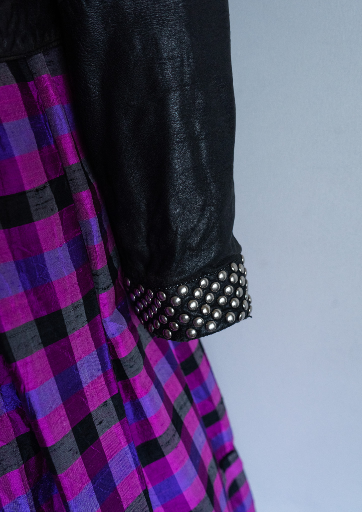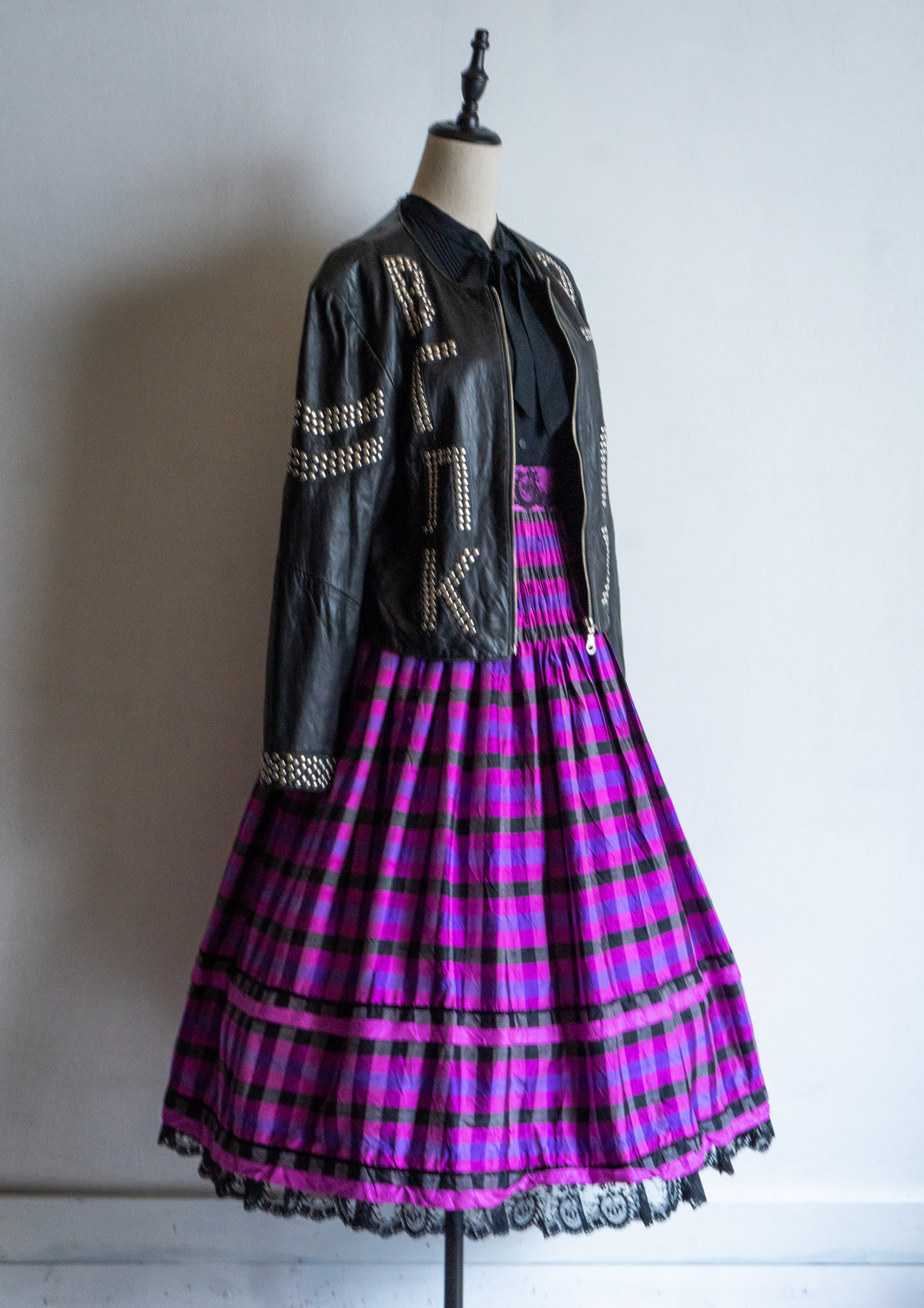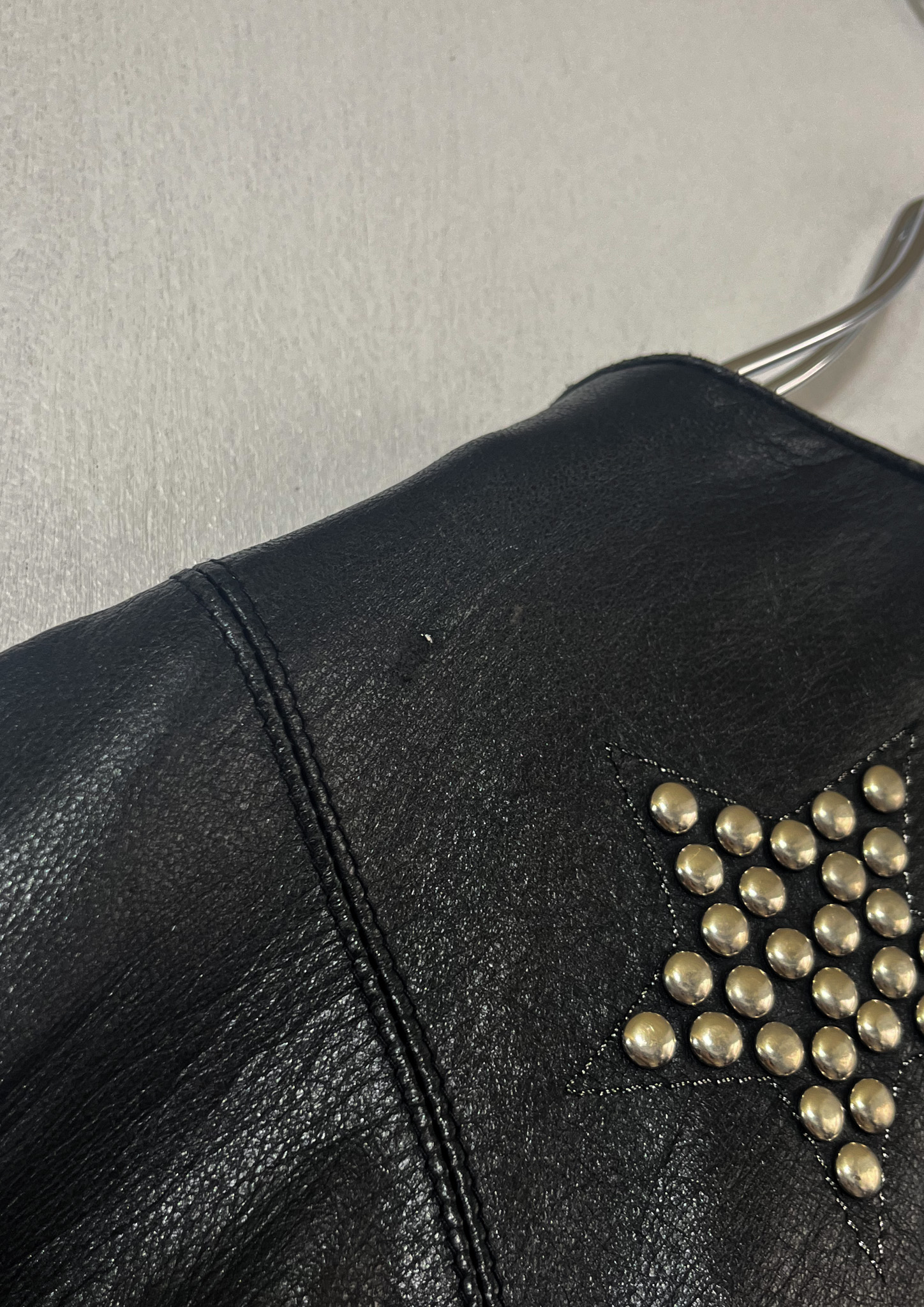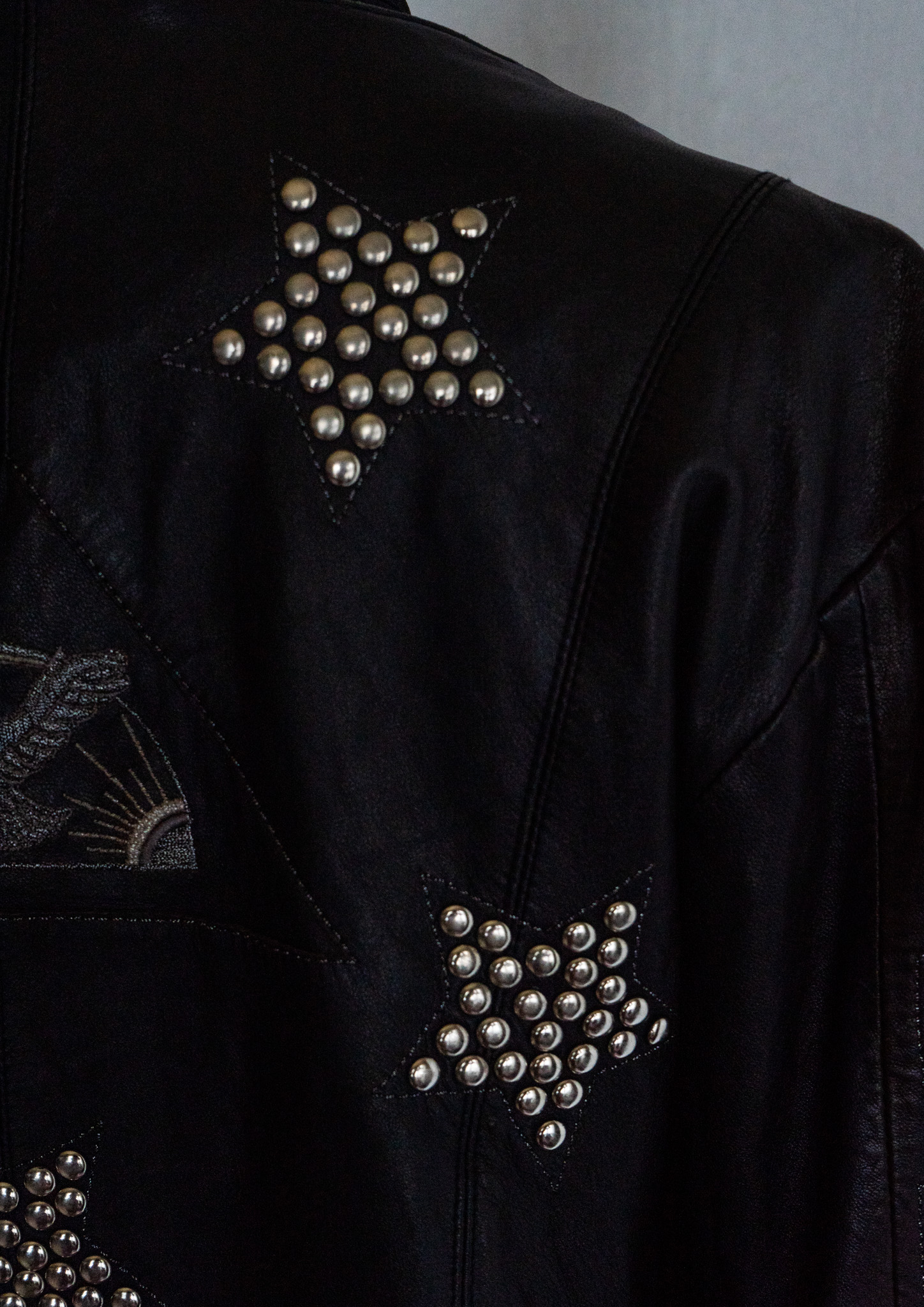 80's Double Gold Button × Fur Design Black Leather Jacket
