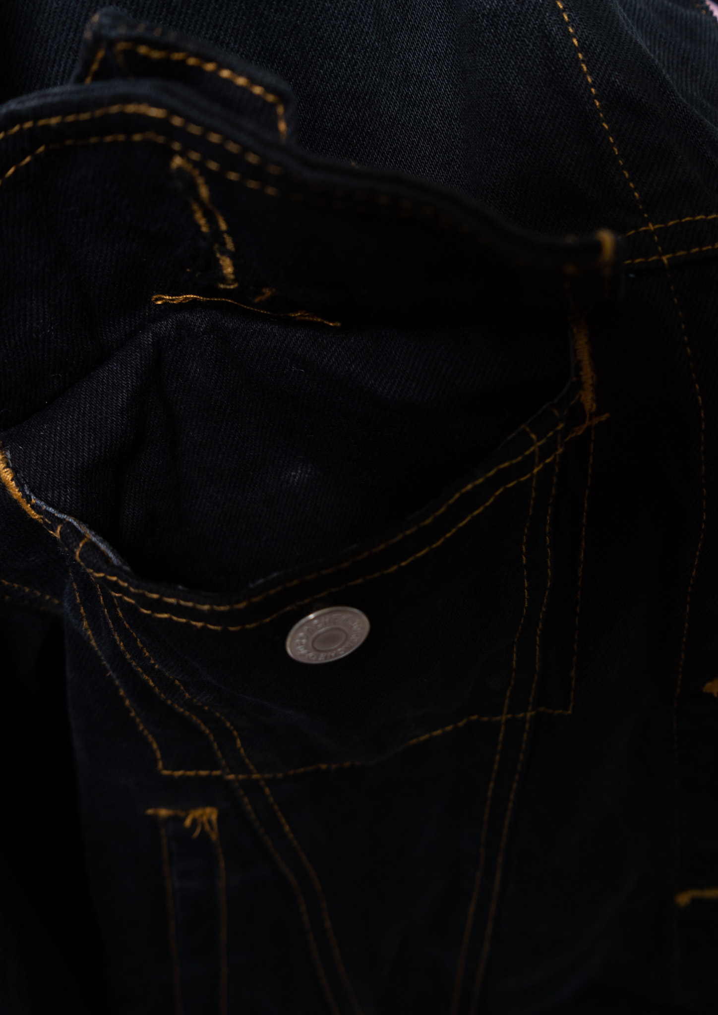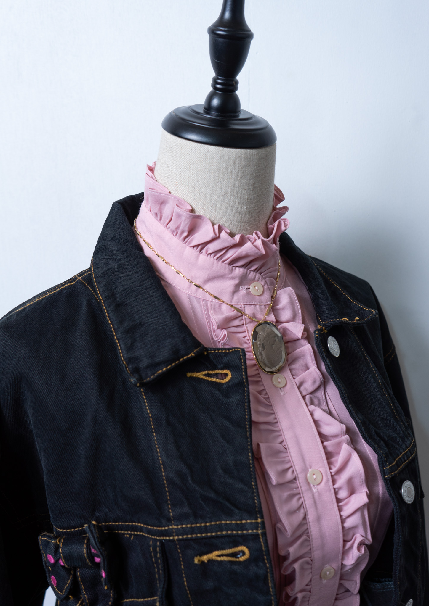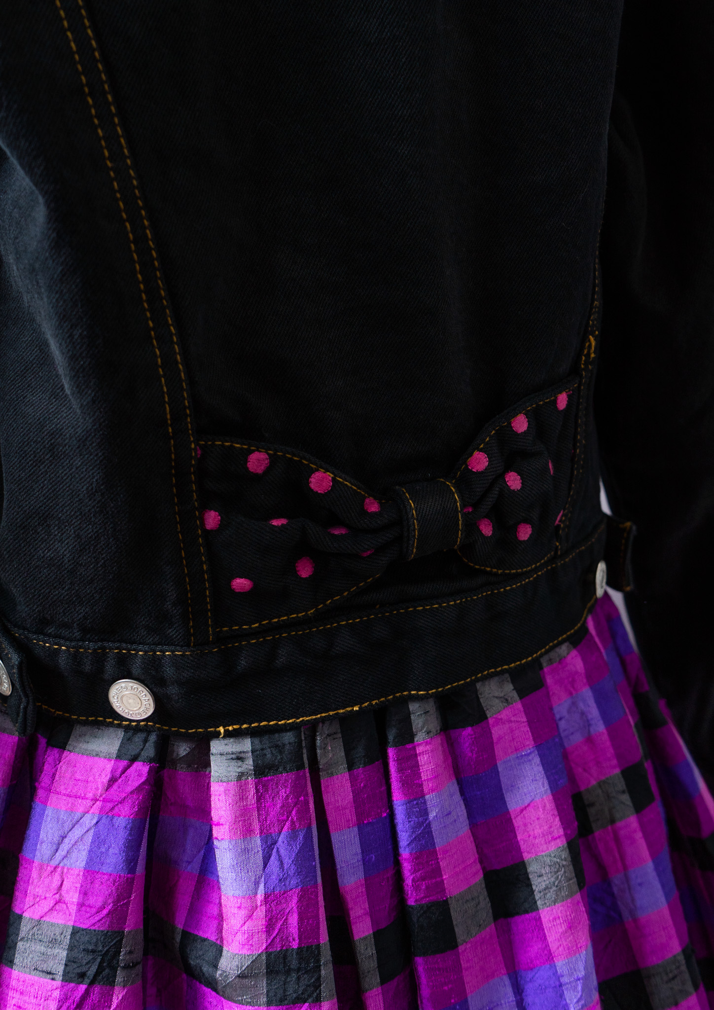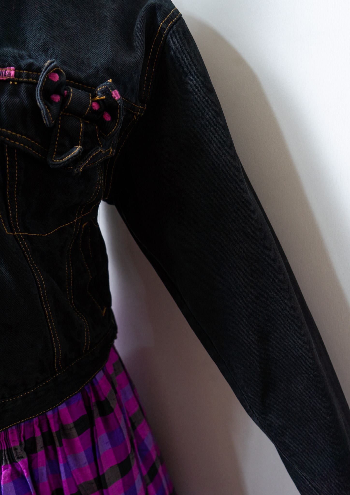 80's Pink Dot Ribbon Design Denim Black Jacket