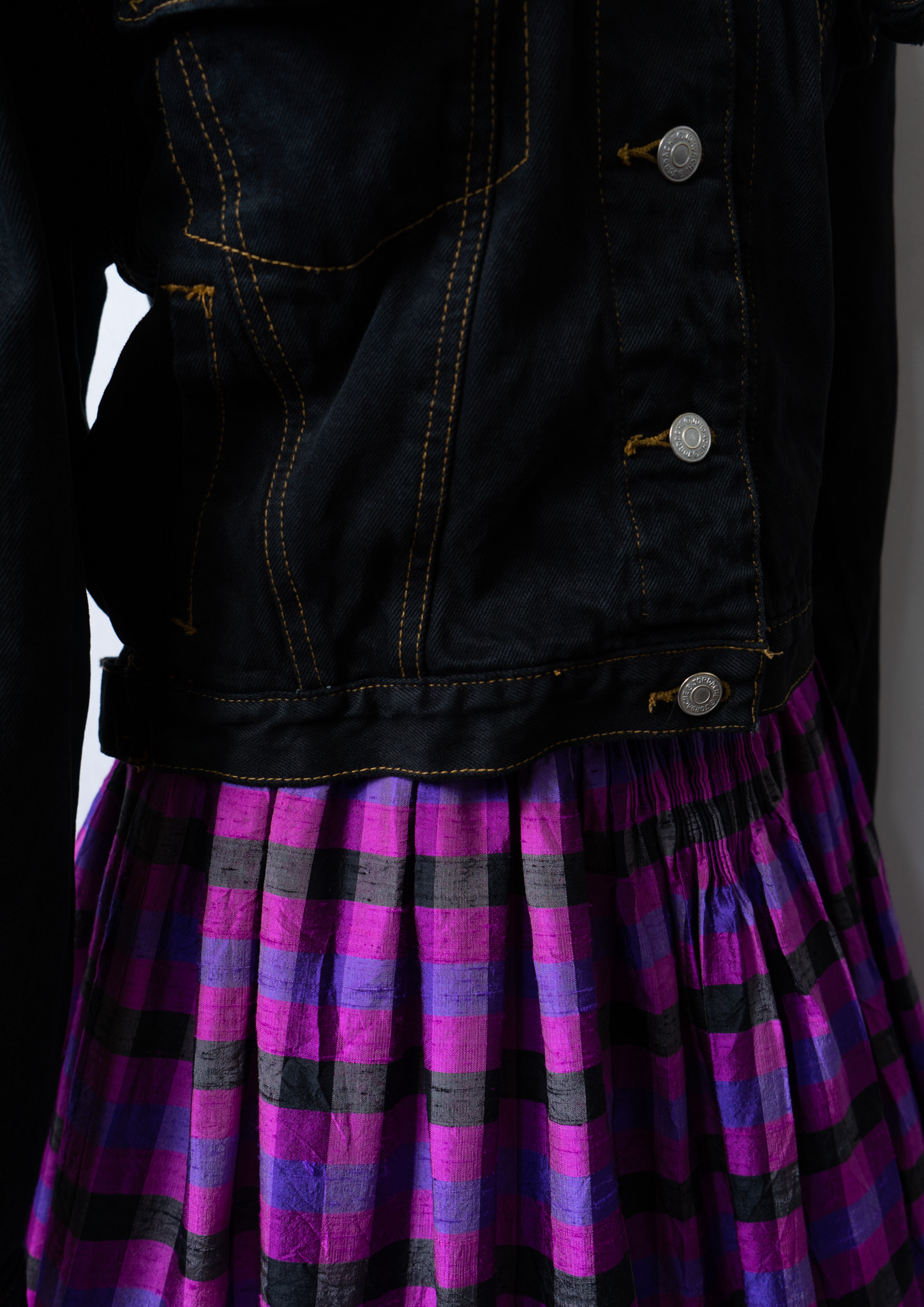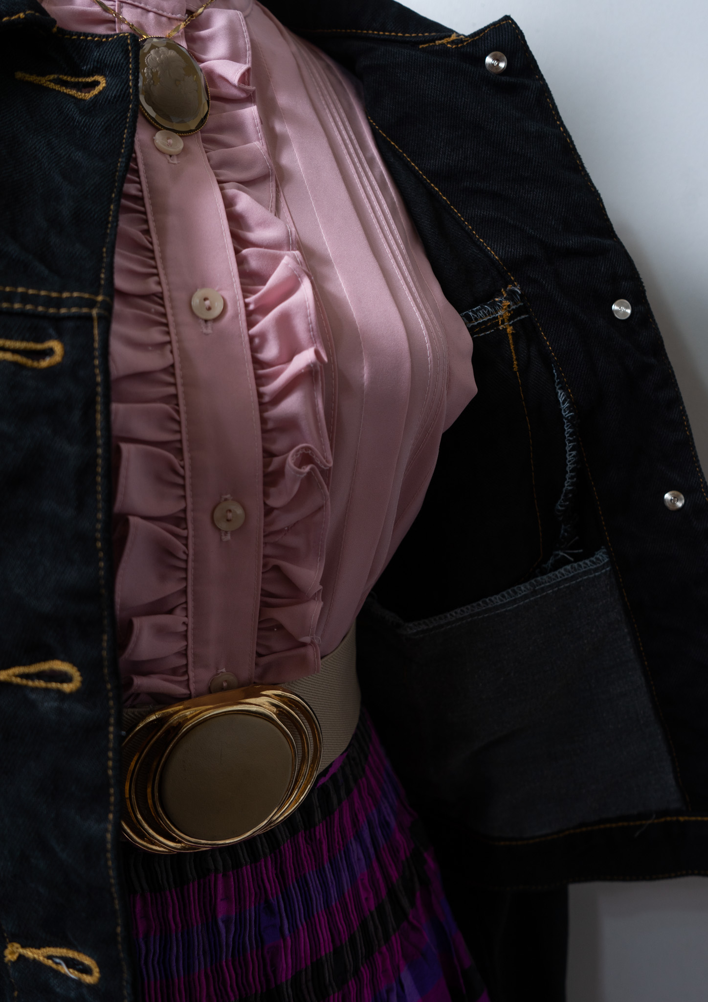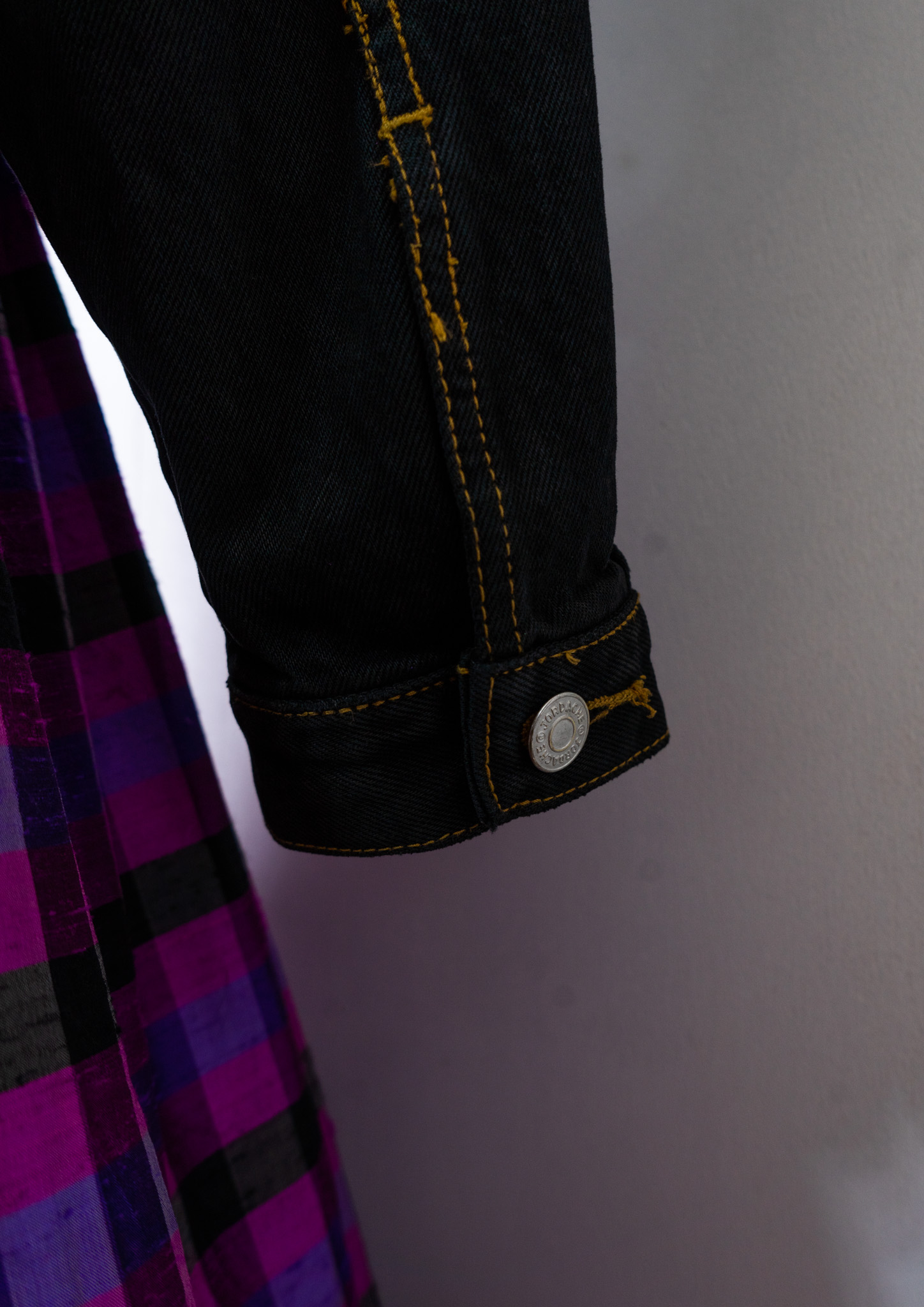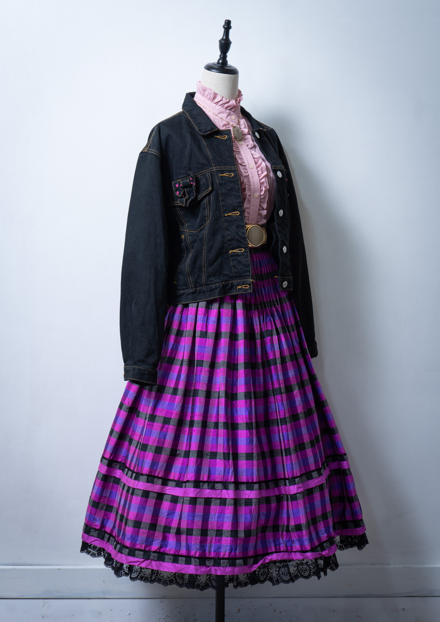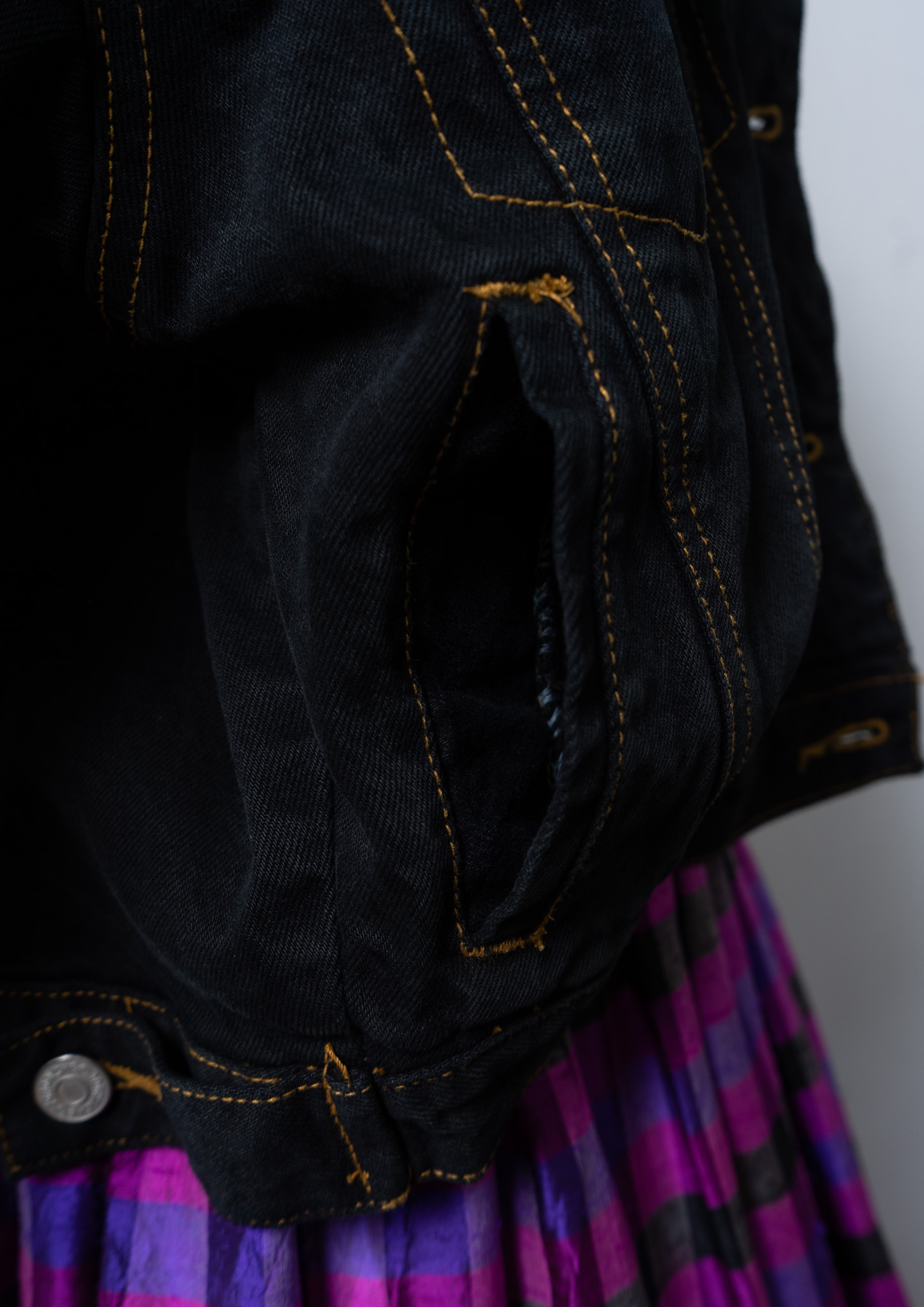 80's Pink Dot Ribbon Design Denim Black Jacket