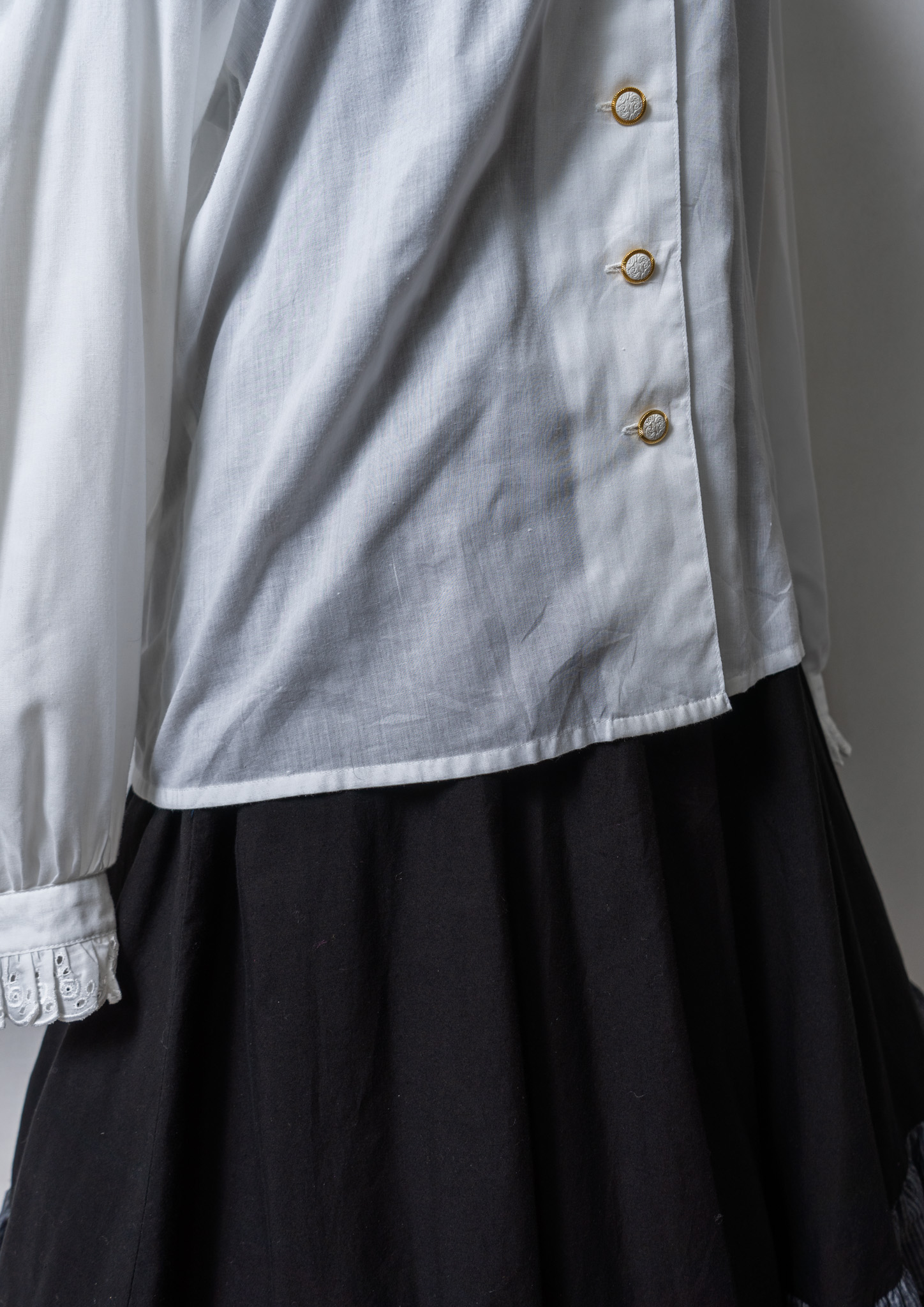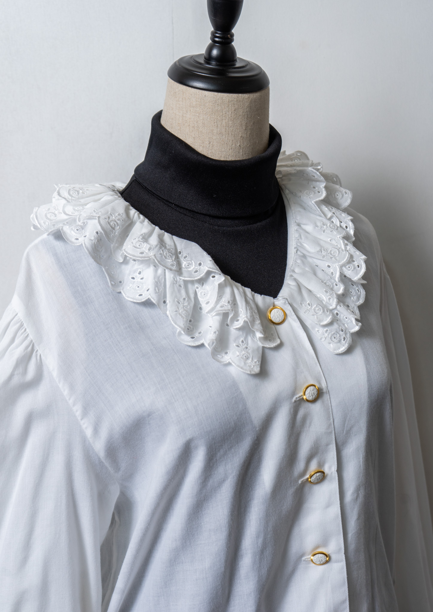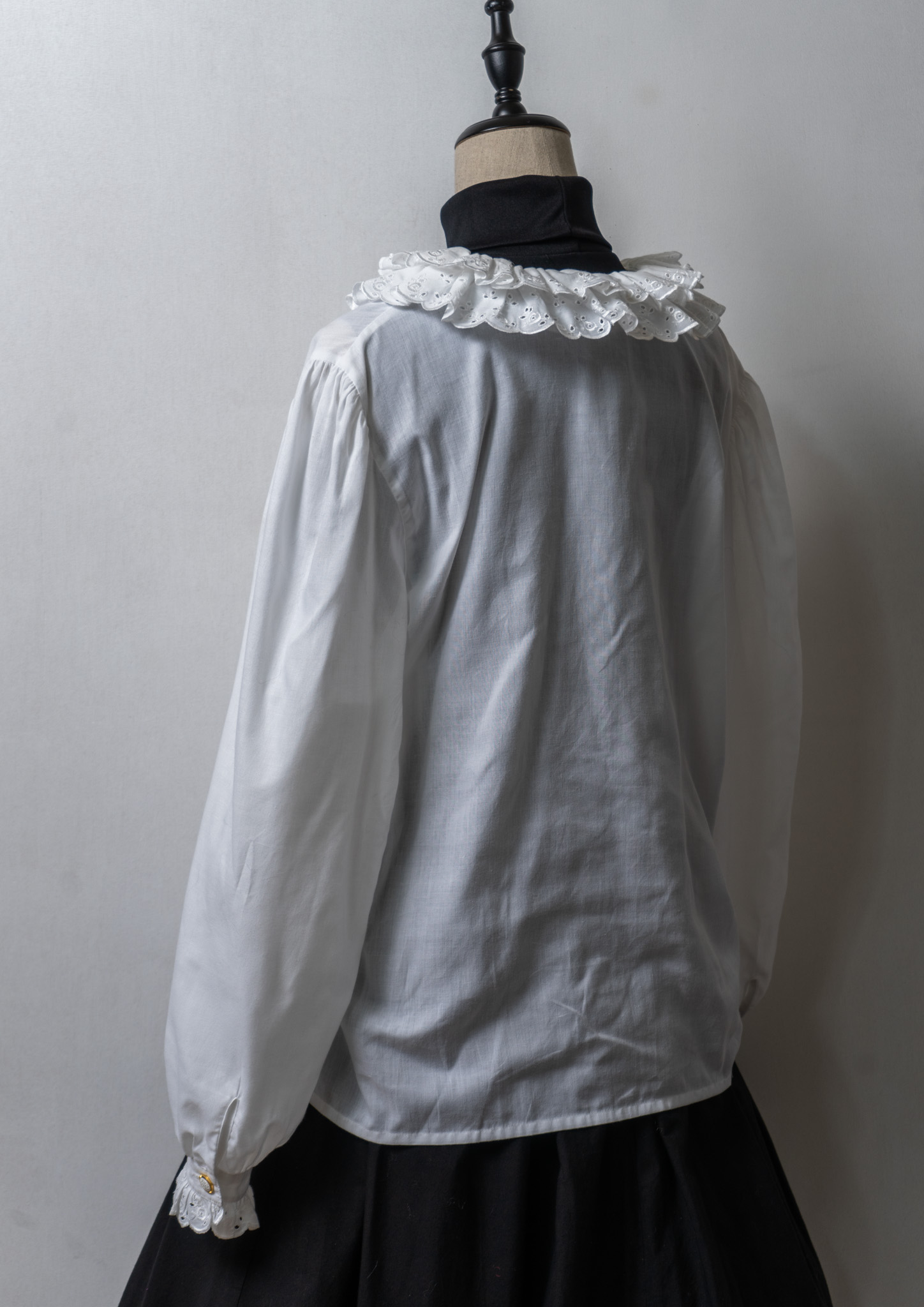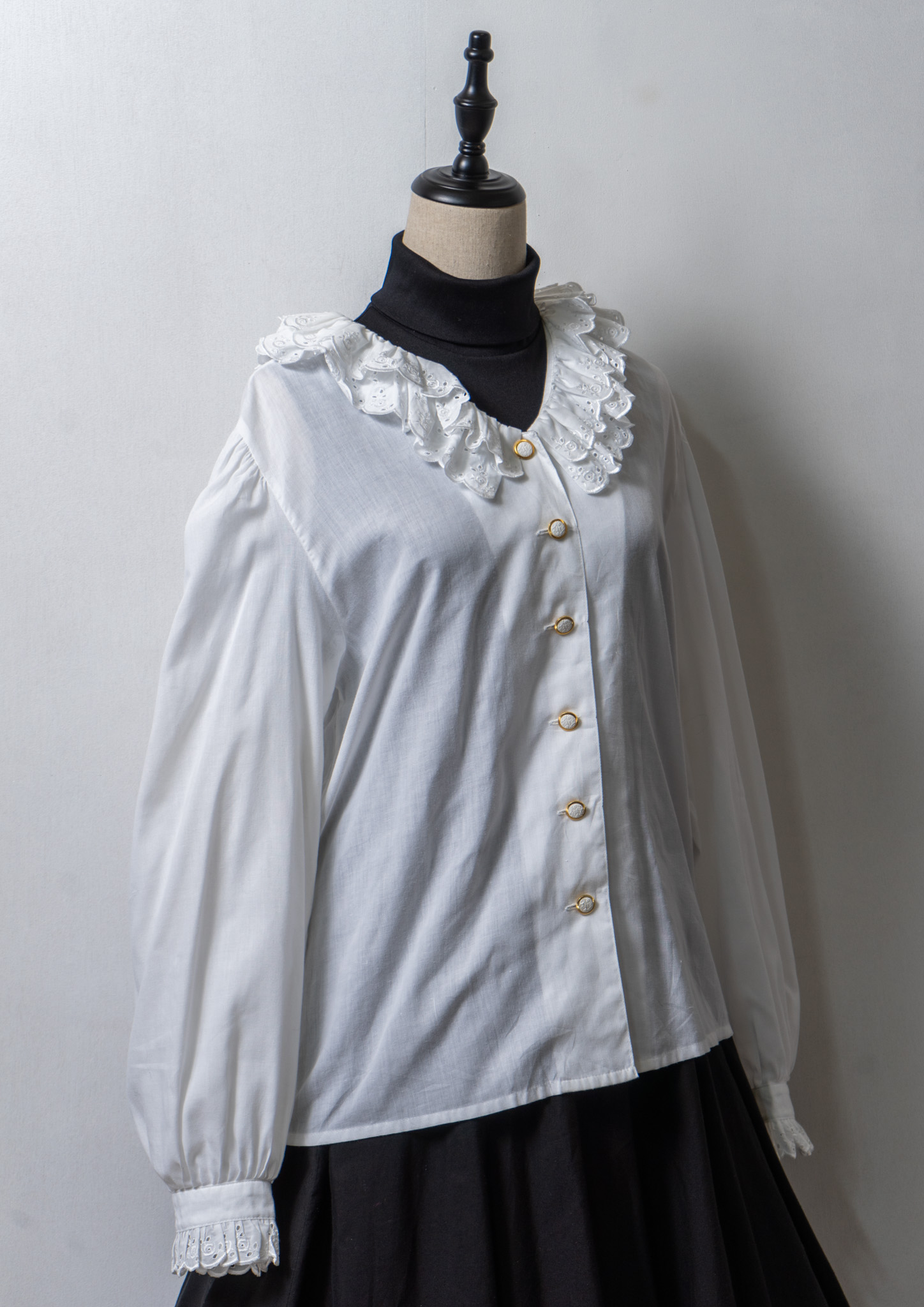 90's Euro Lace Frill Collar Decorative Button Design White Blouse
