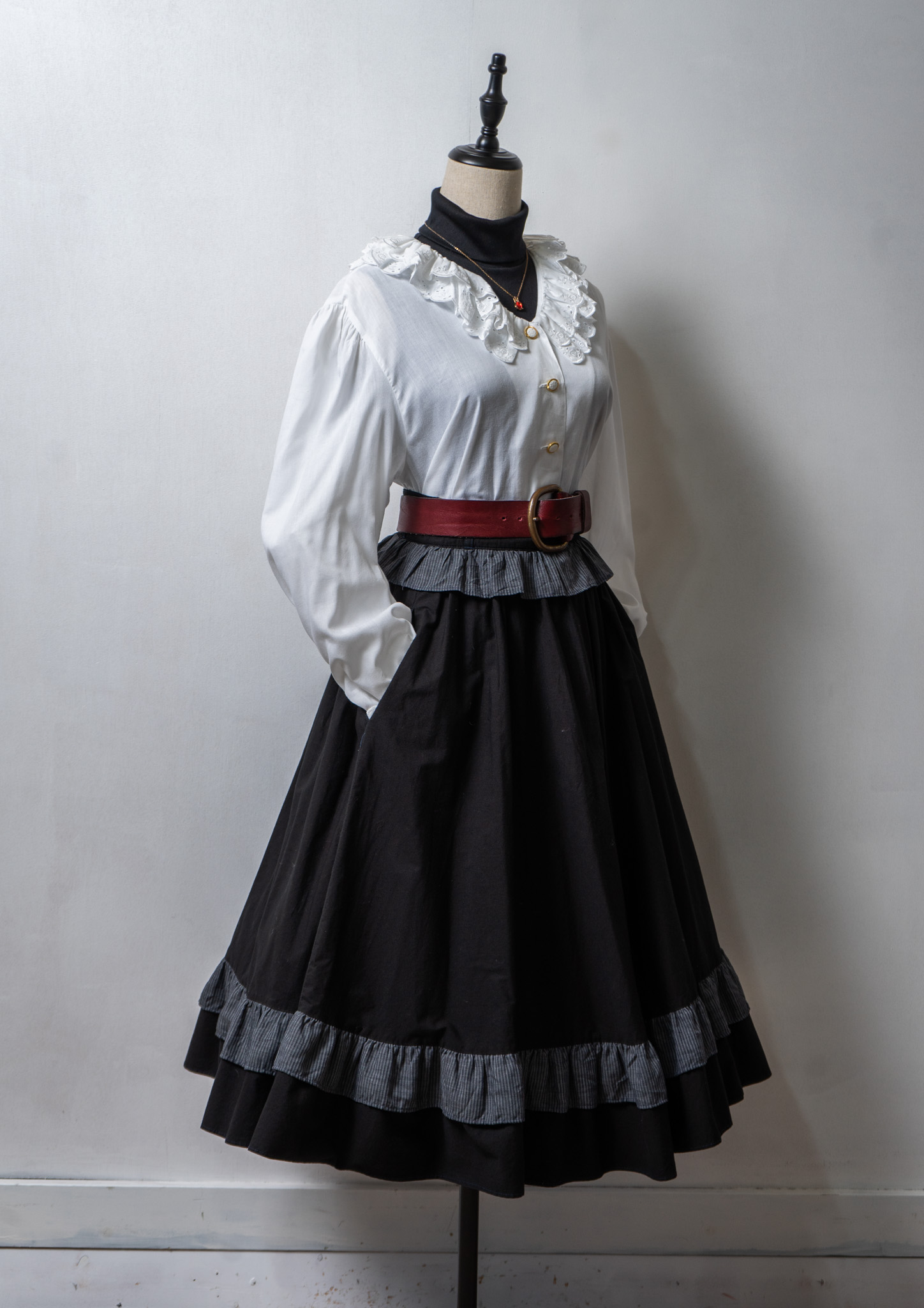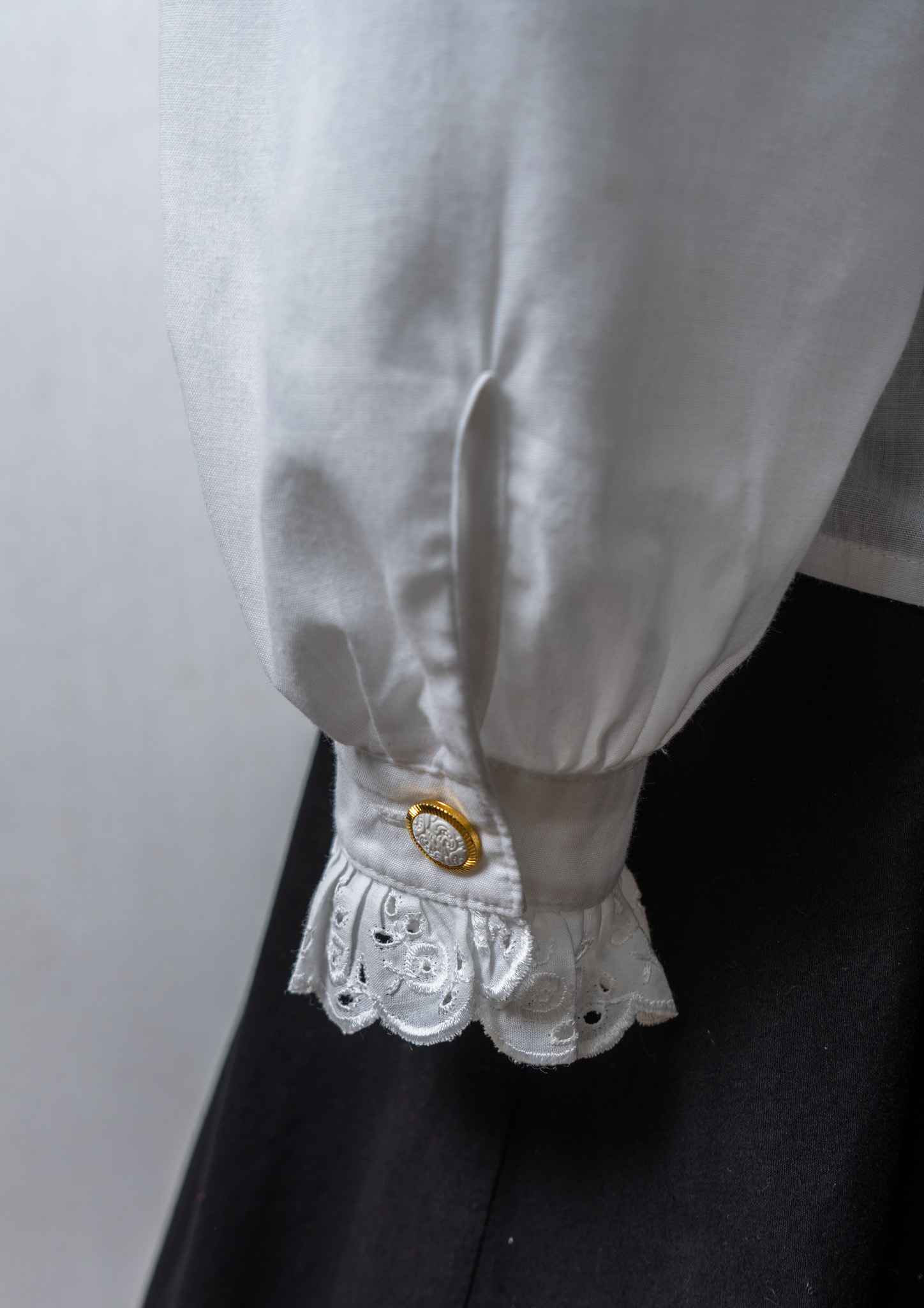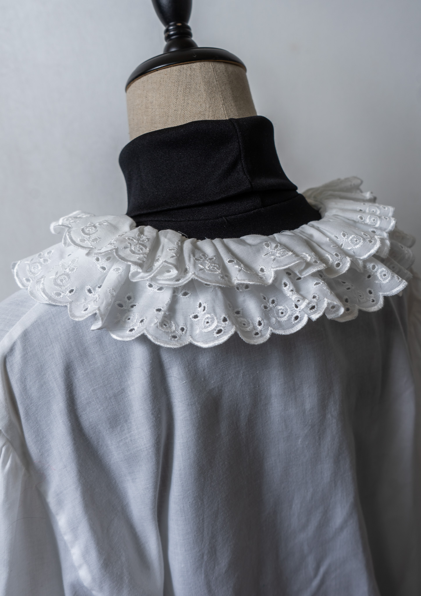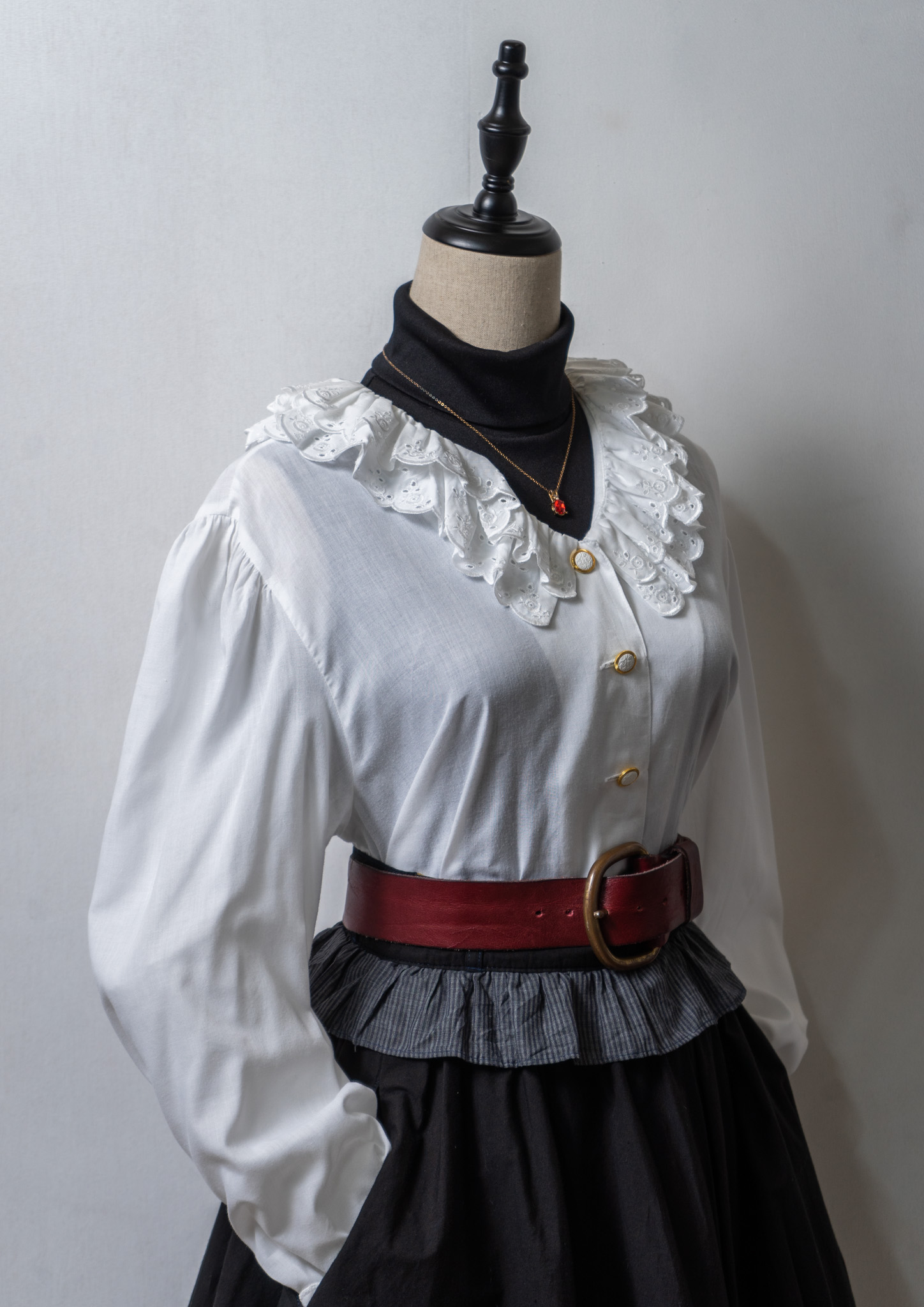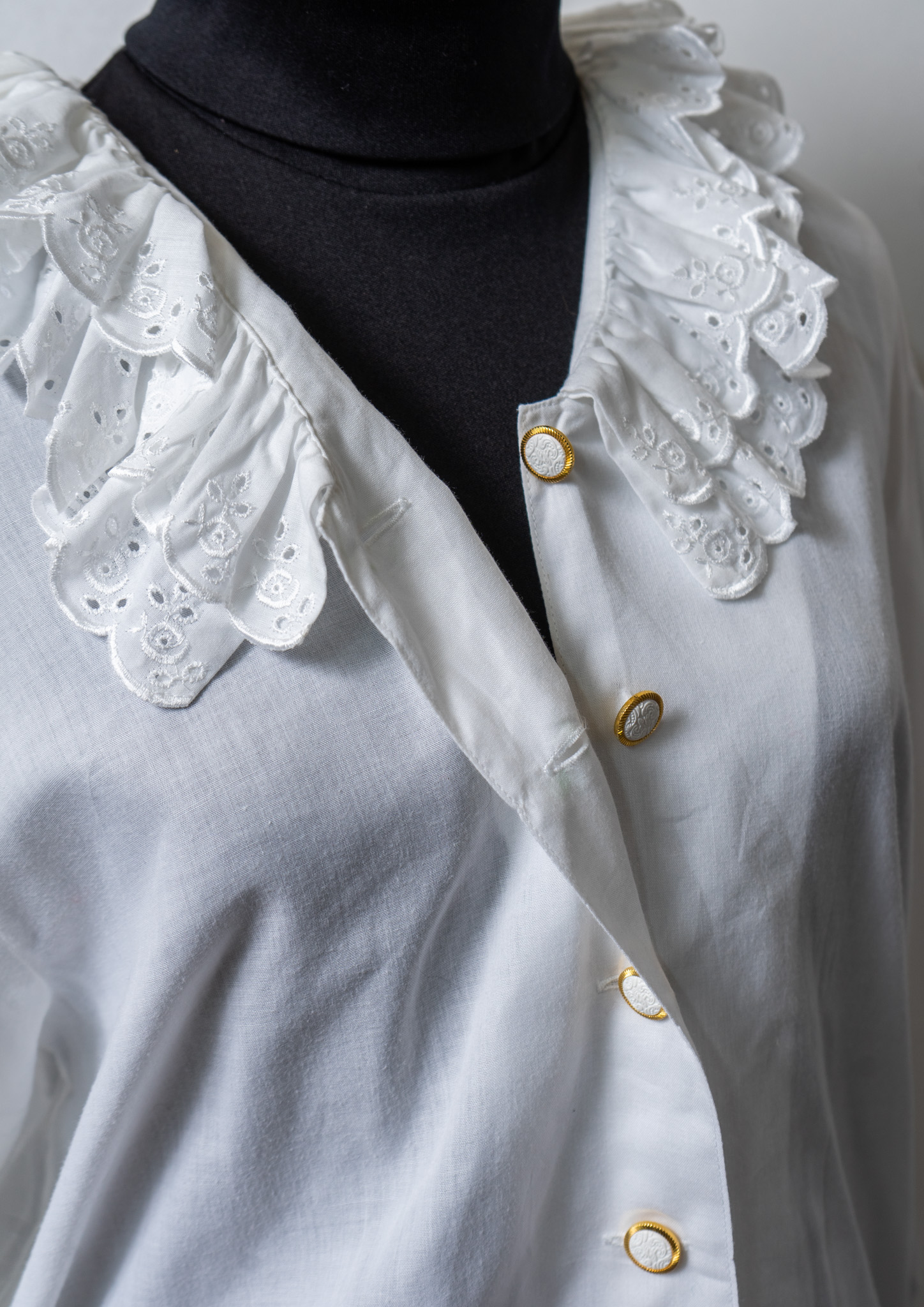 90's Euro Lace Frill Collar Decorative Button Design White Blouse