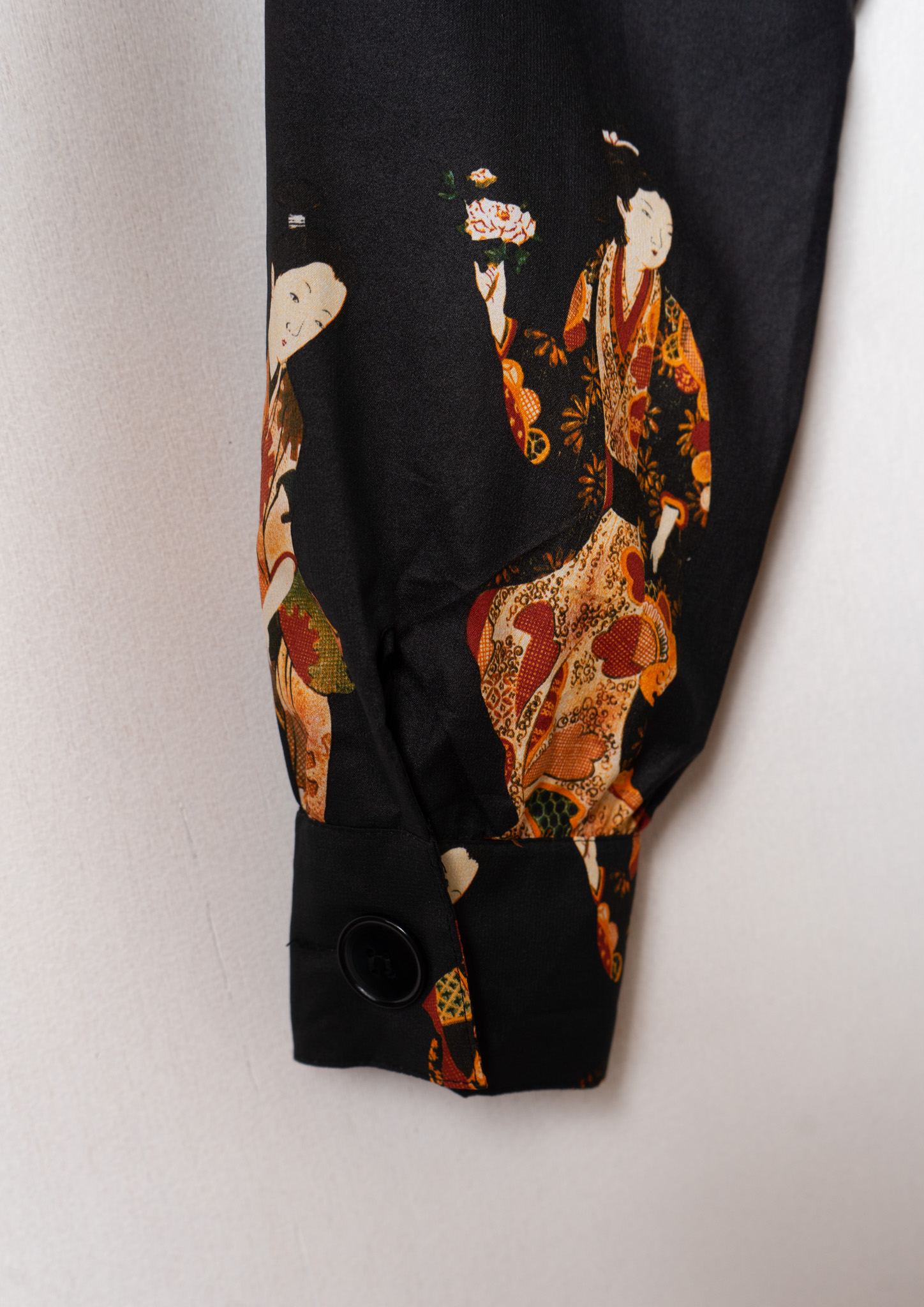 80~90's LESLIE FAY Peplum Design Colorful Botanical Pattern Blouse