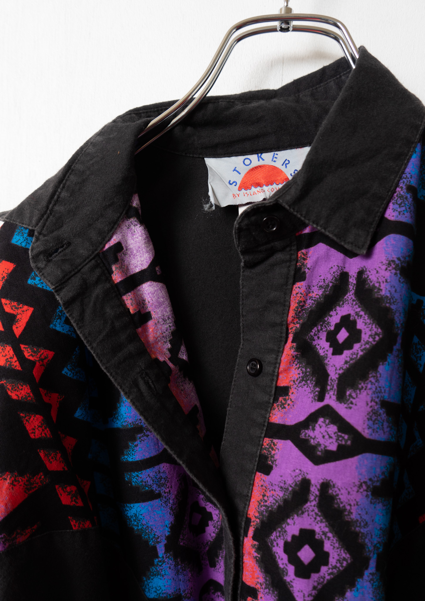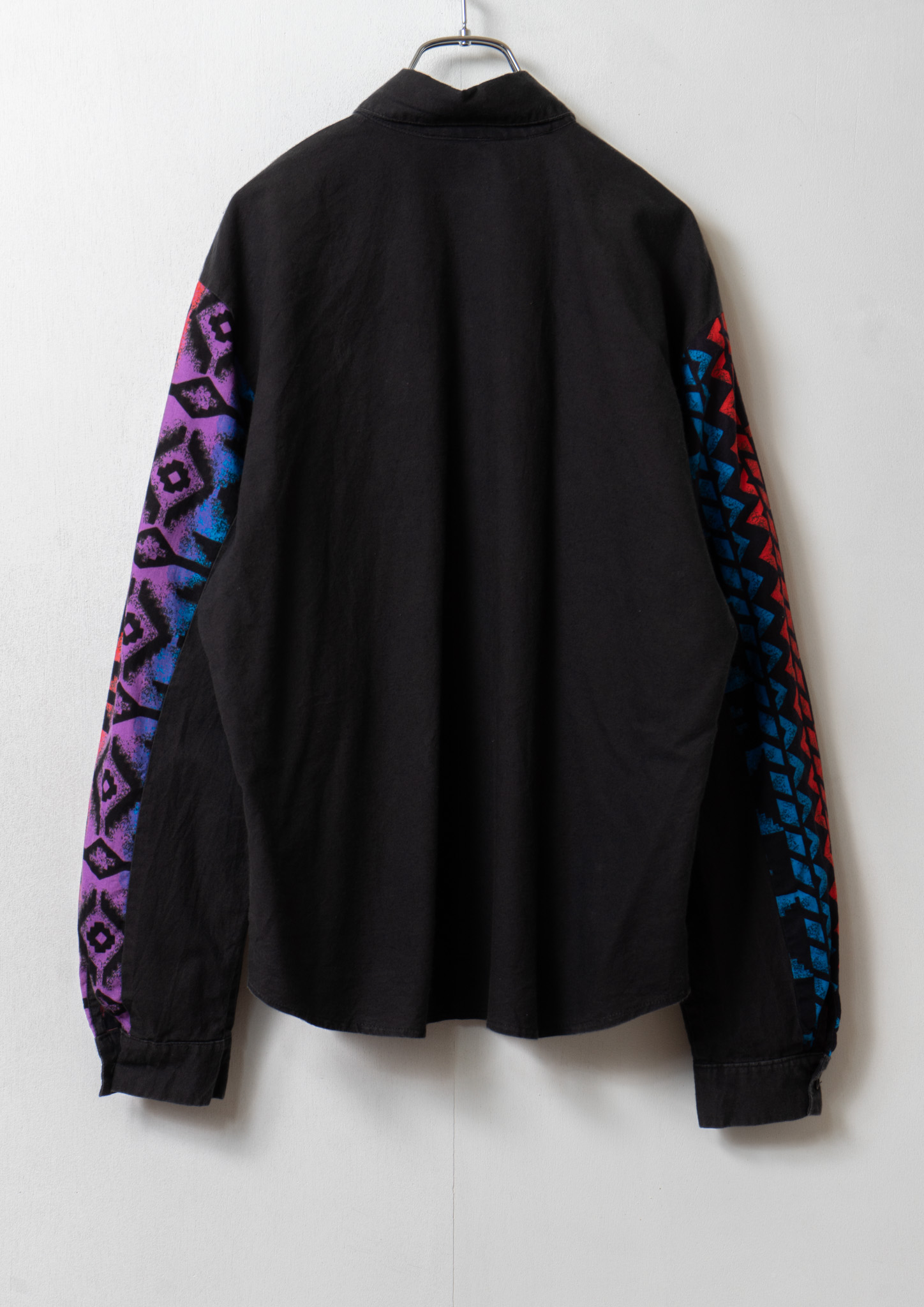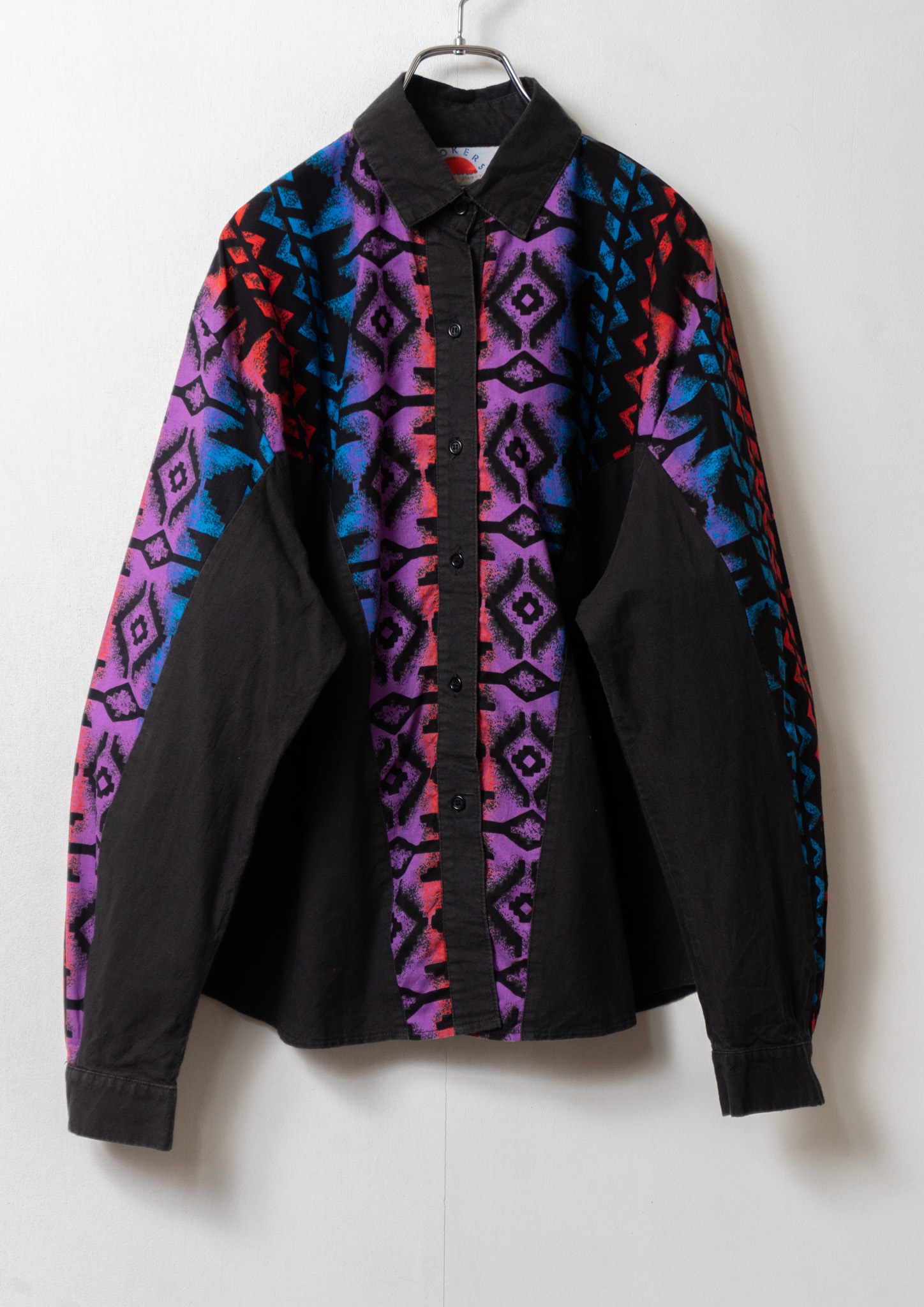 80’s USA Unique Pattern Black Cotton Blouse