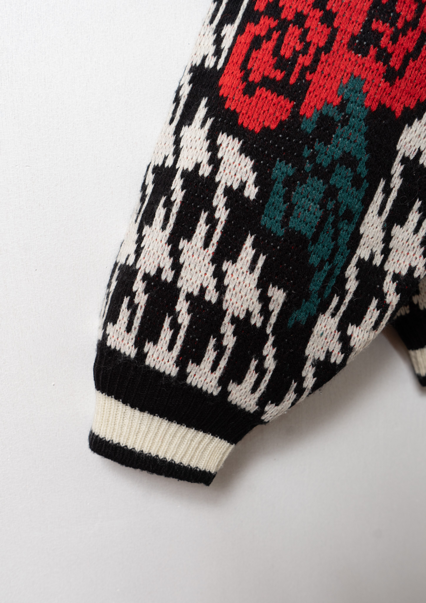 90's Flower × 3D Embroidery Pattern Knit Sweater