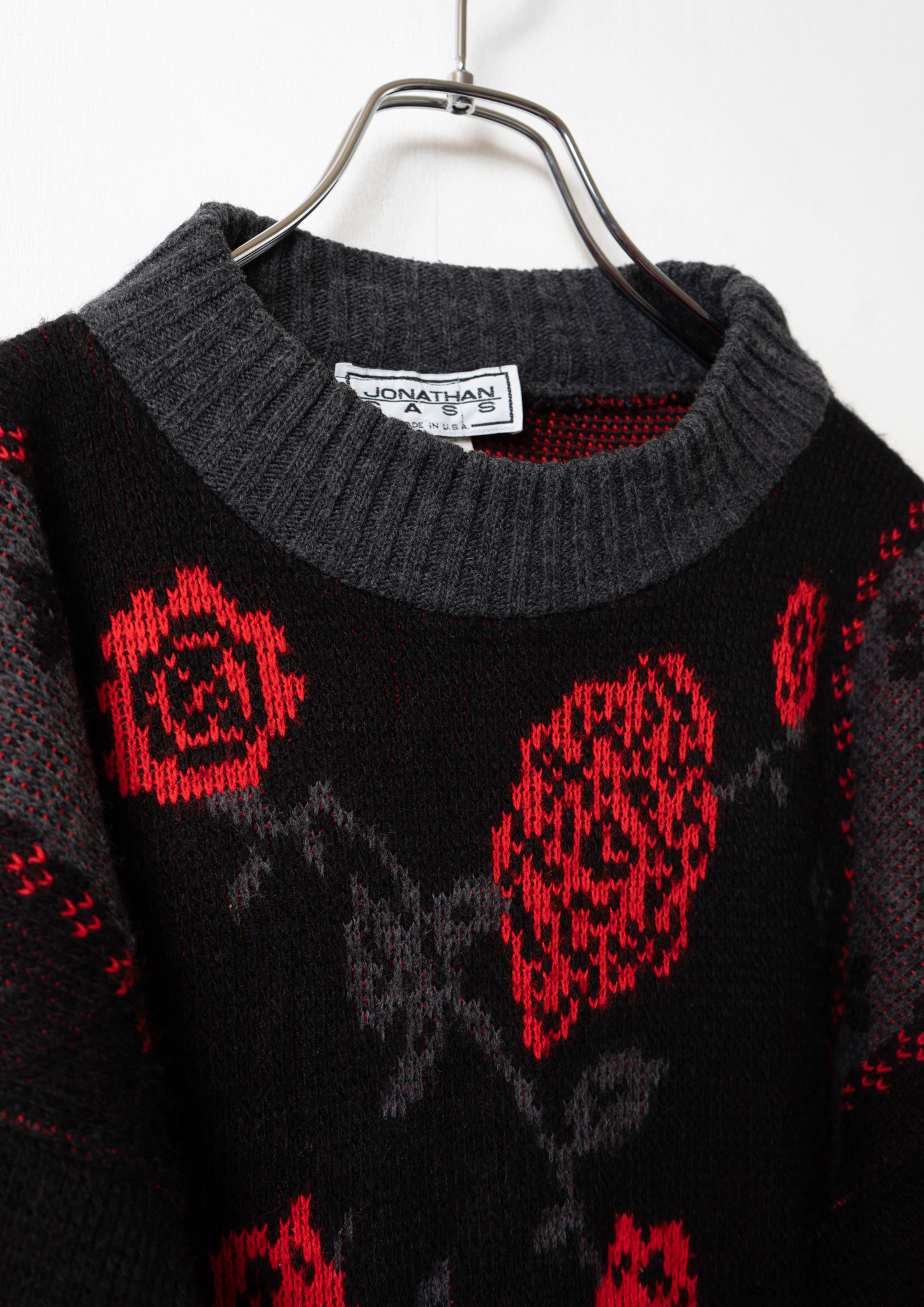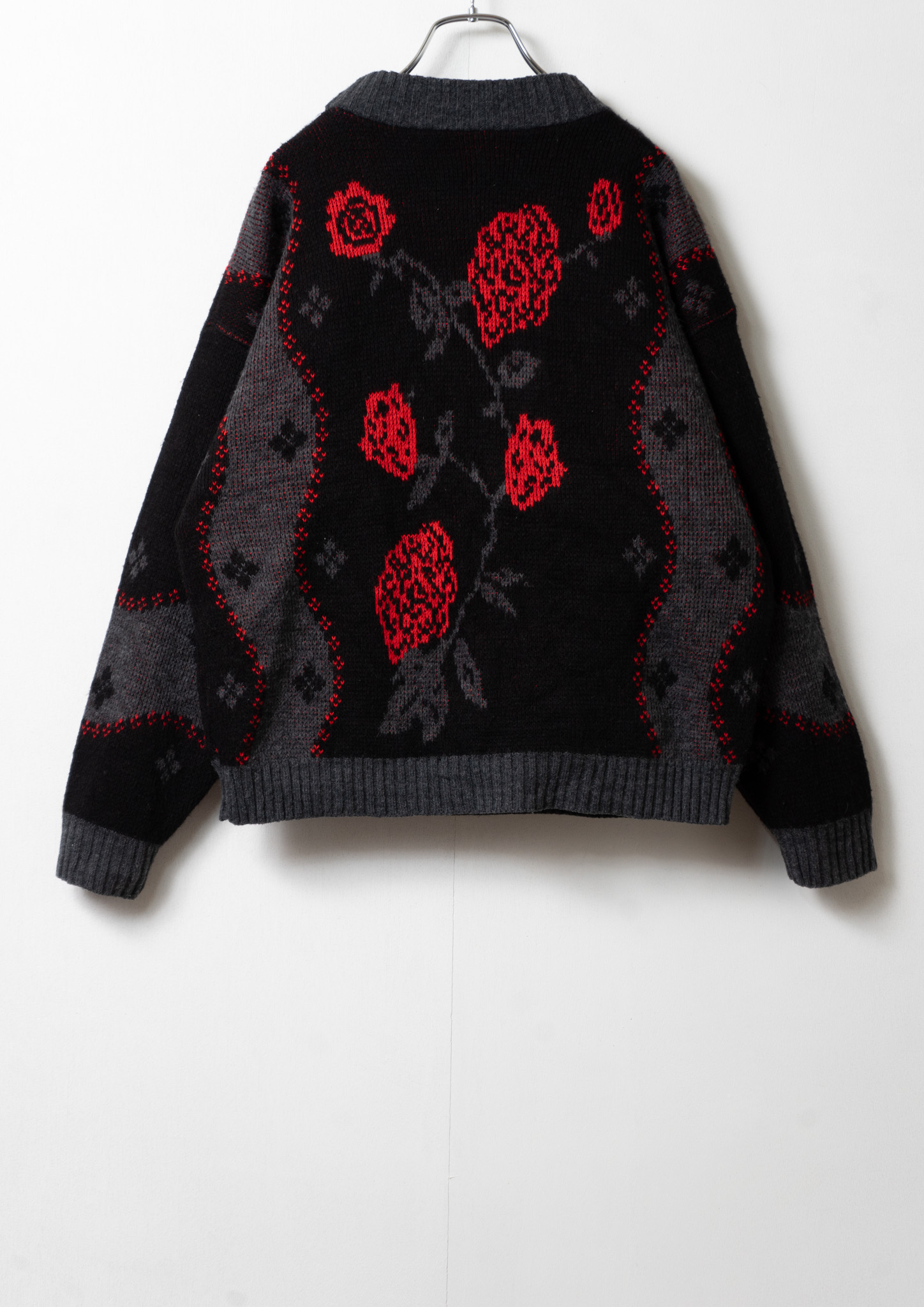 80’s USA Rose Pattern Black × Gray Sweater