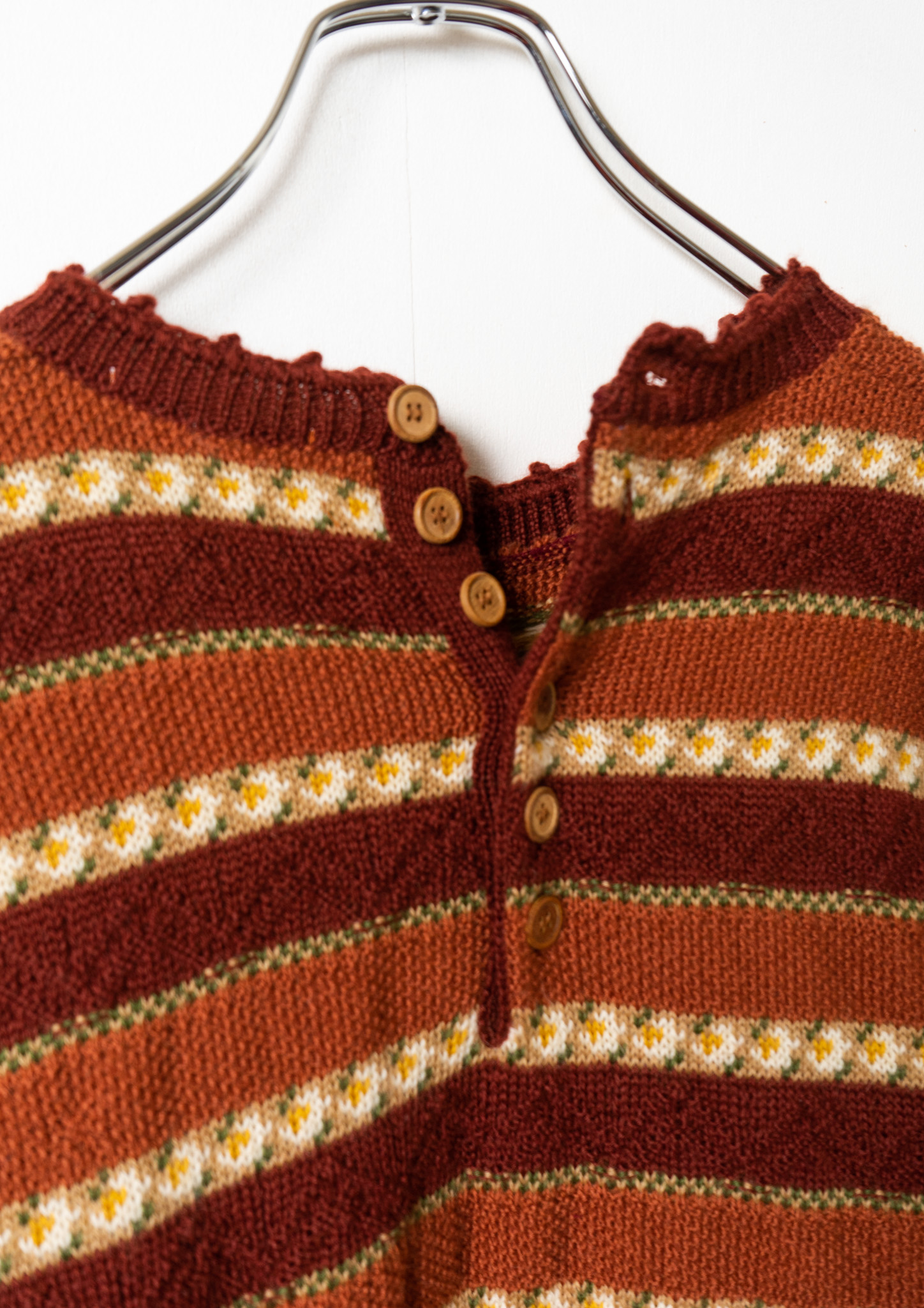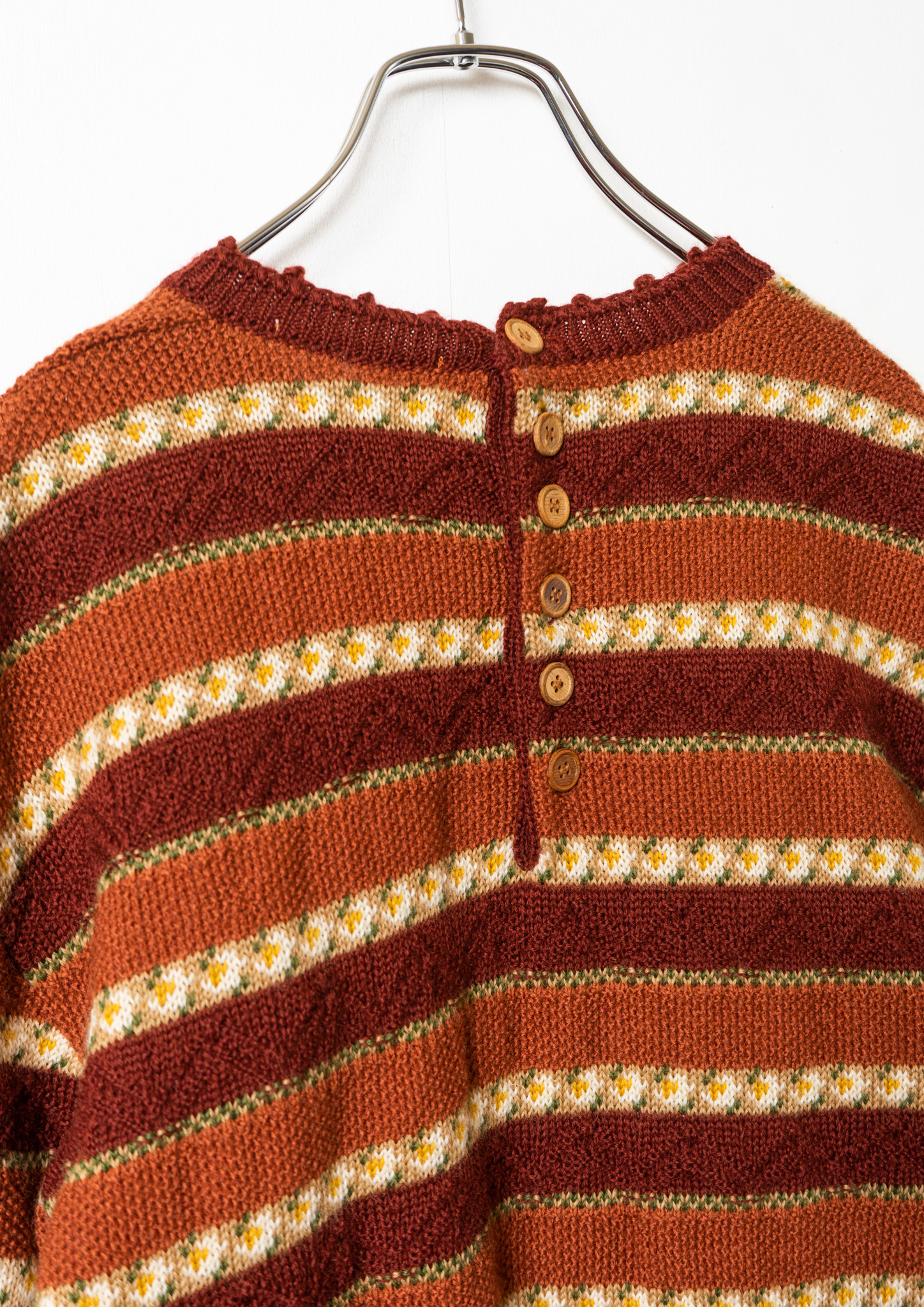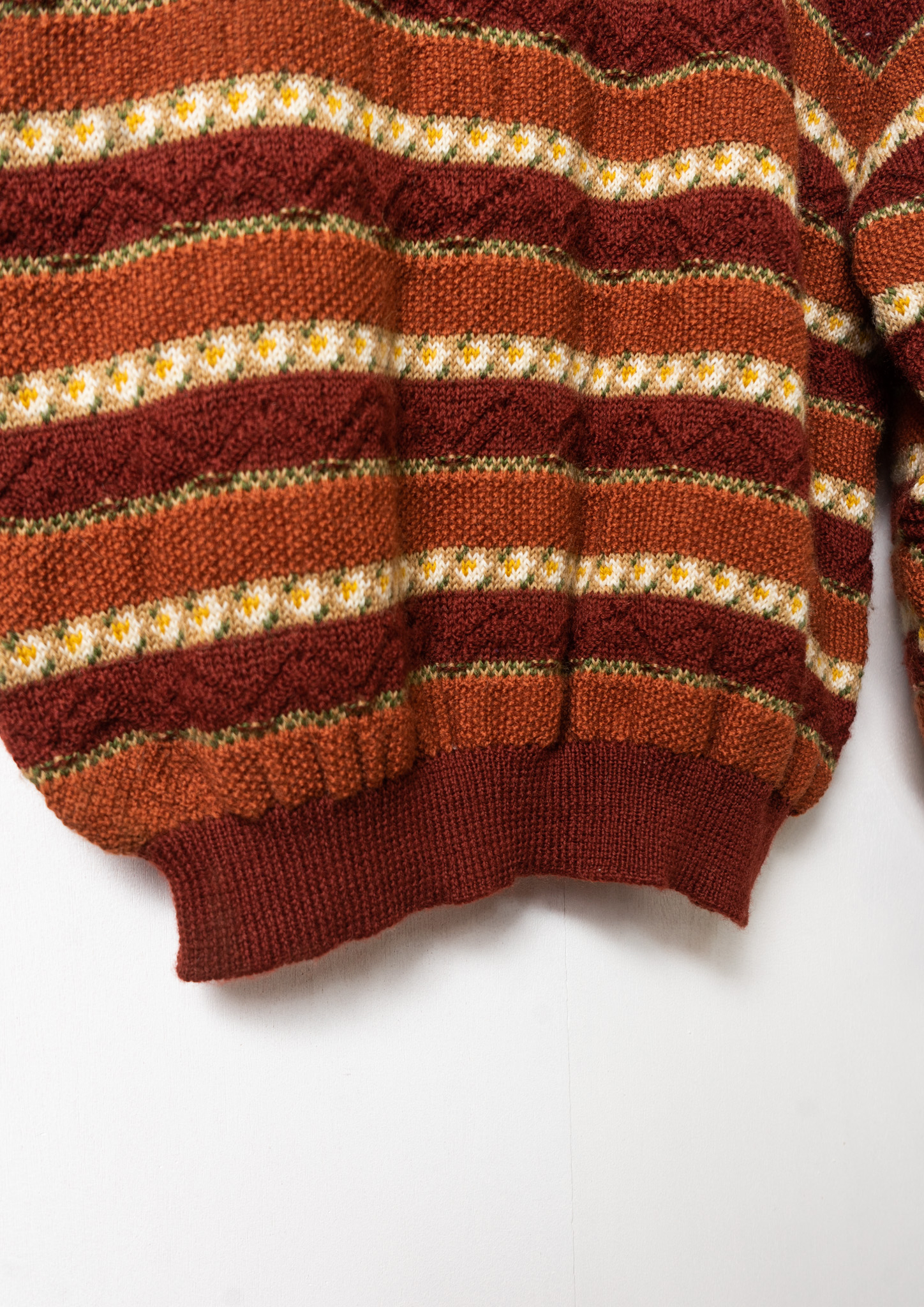 80’s Flower Motif Terracotta & Brown Border Sweater
