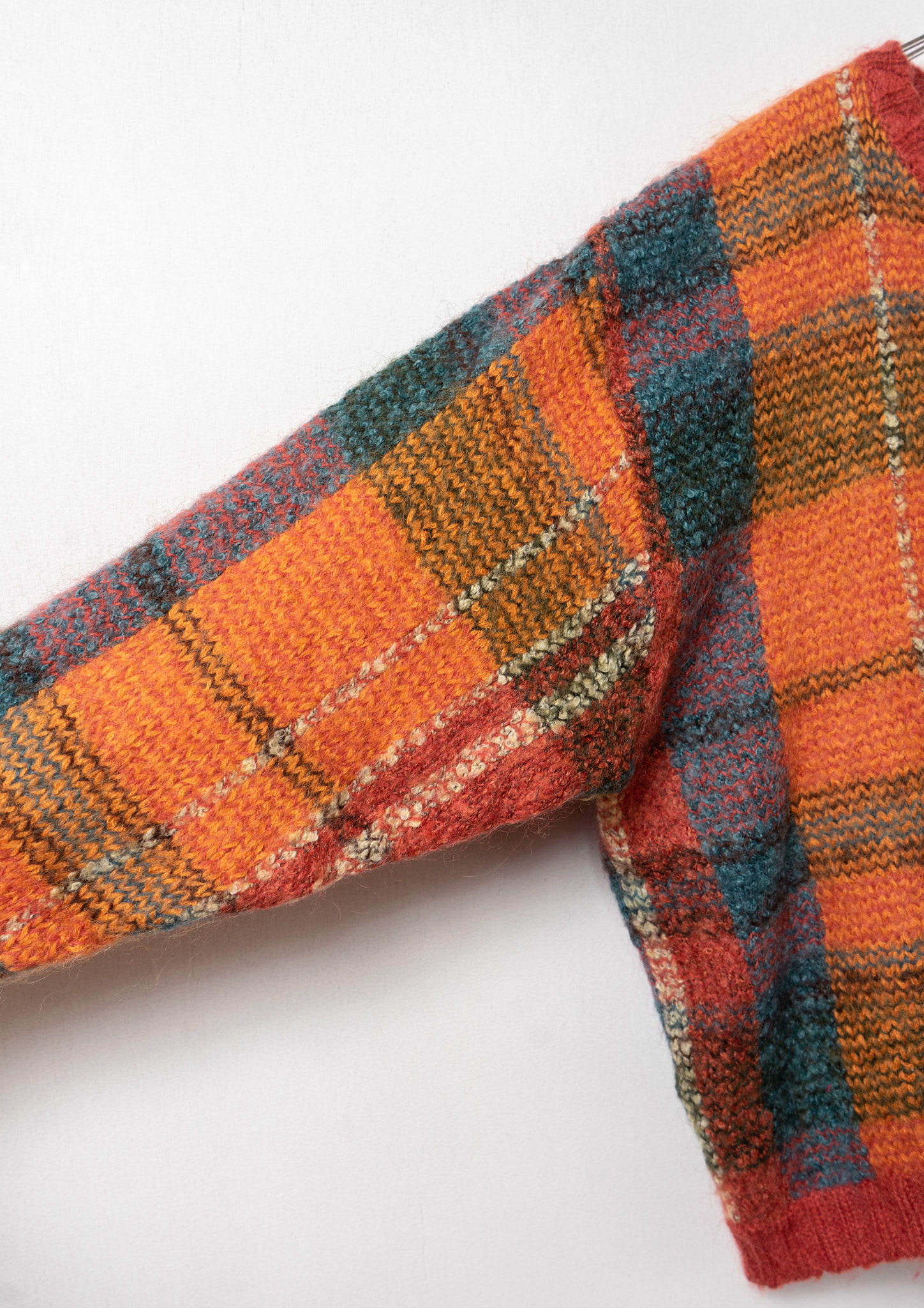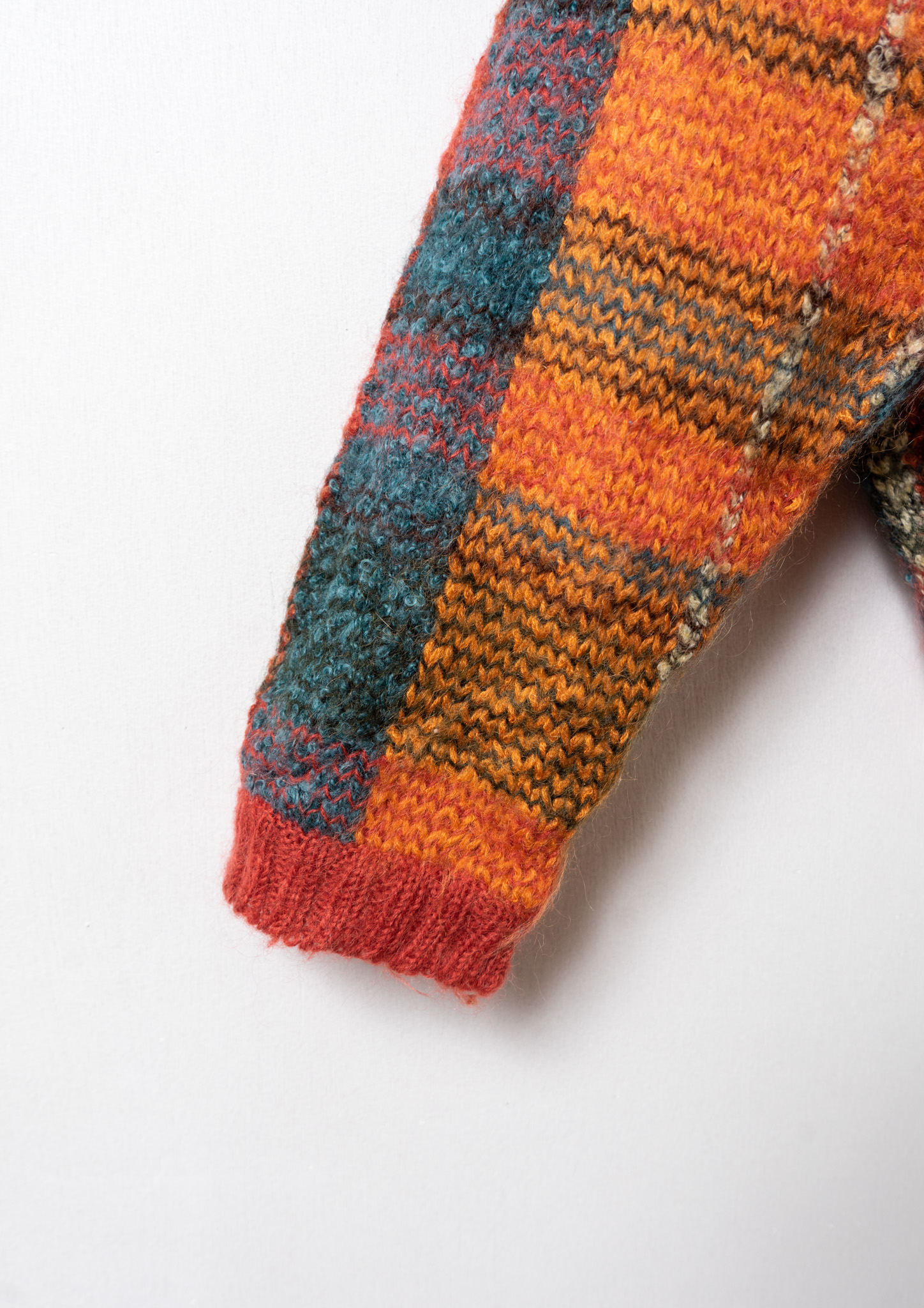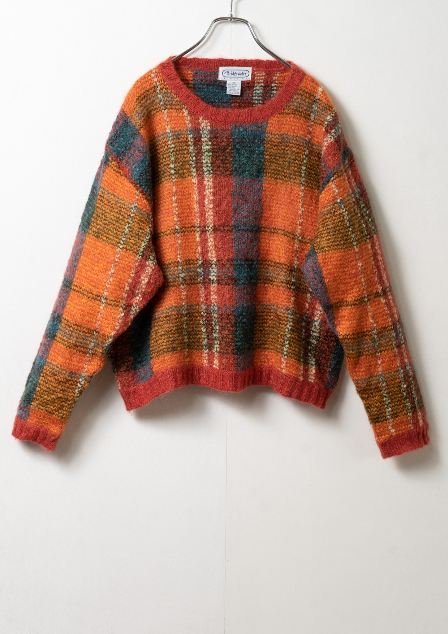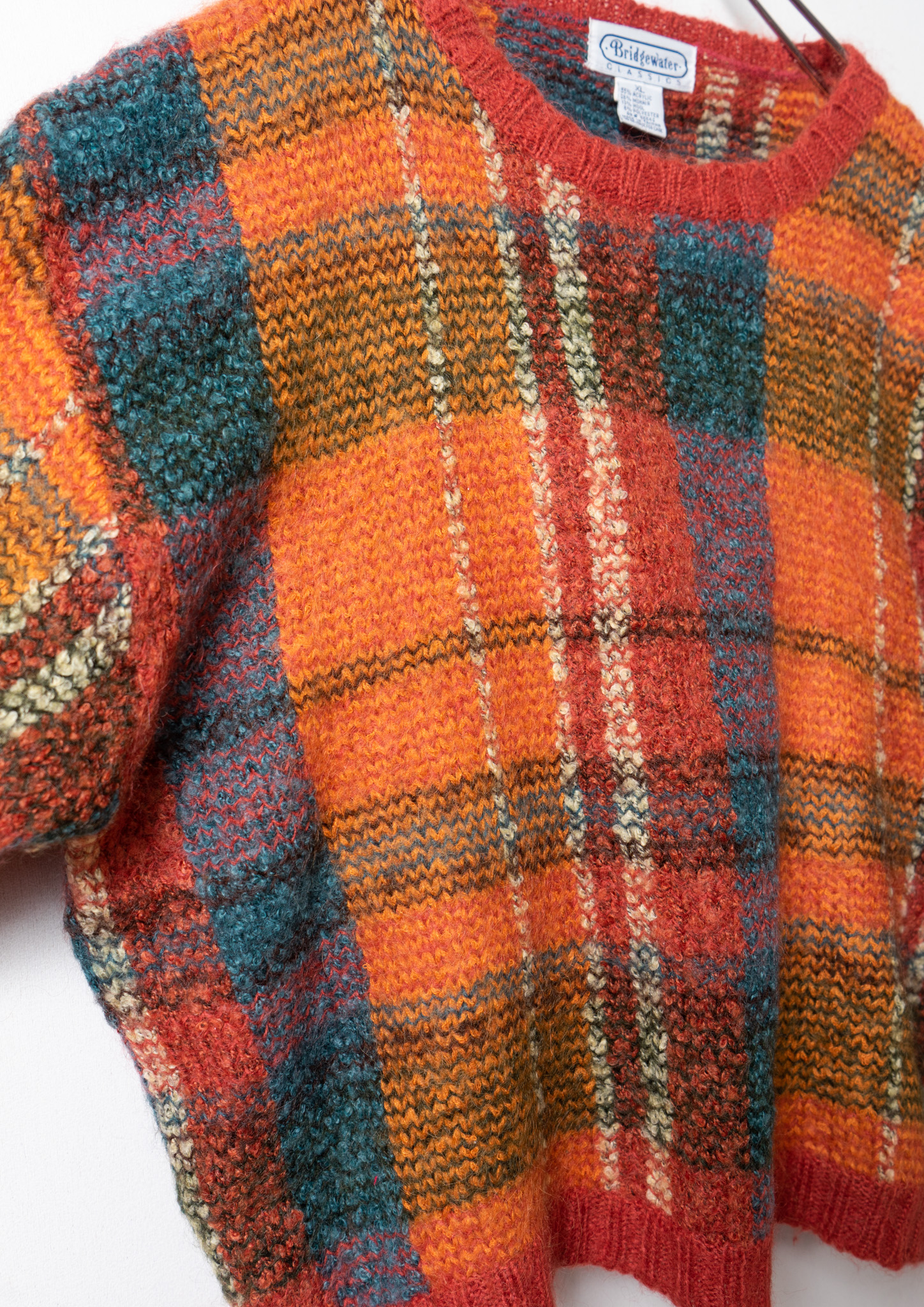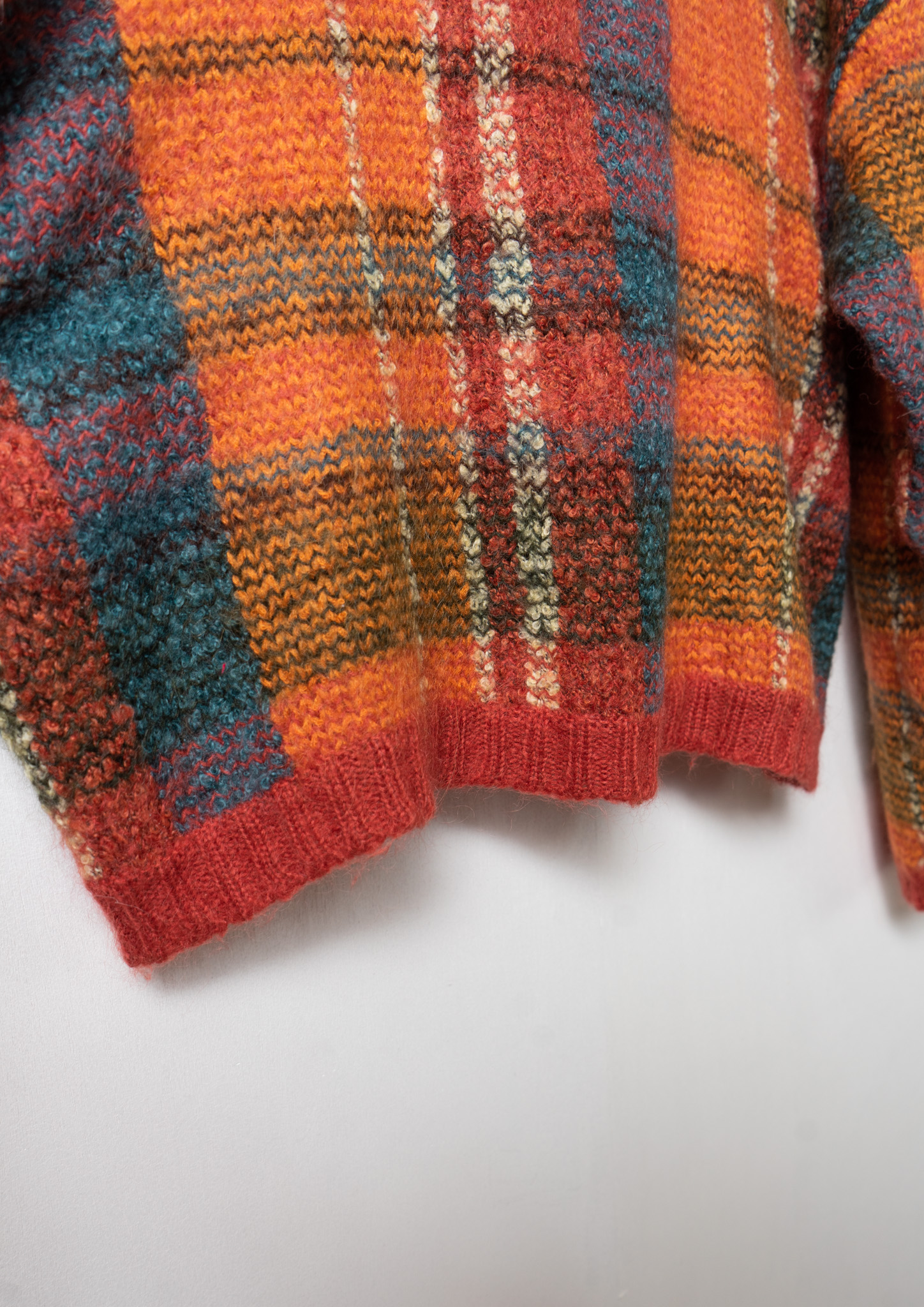 80's Warm Color Check Pattern Mohair Blend Sweater
