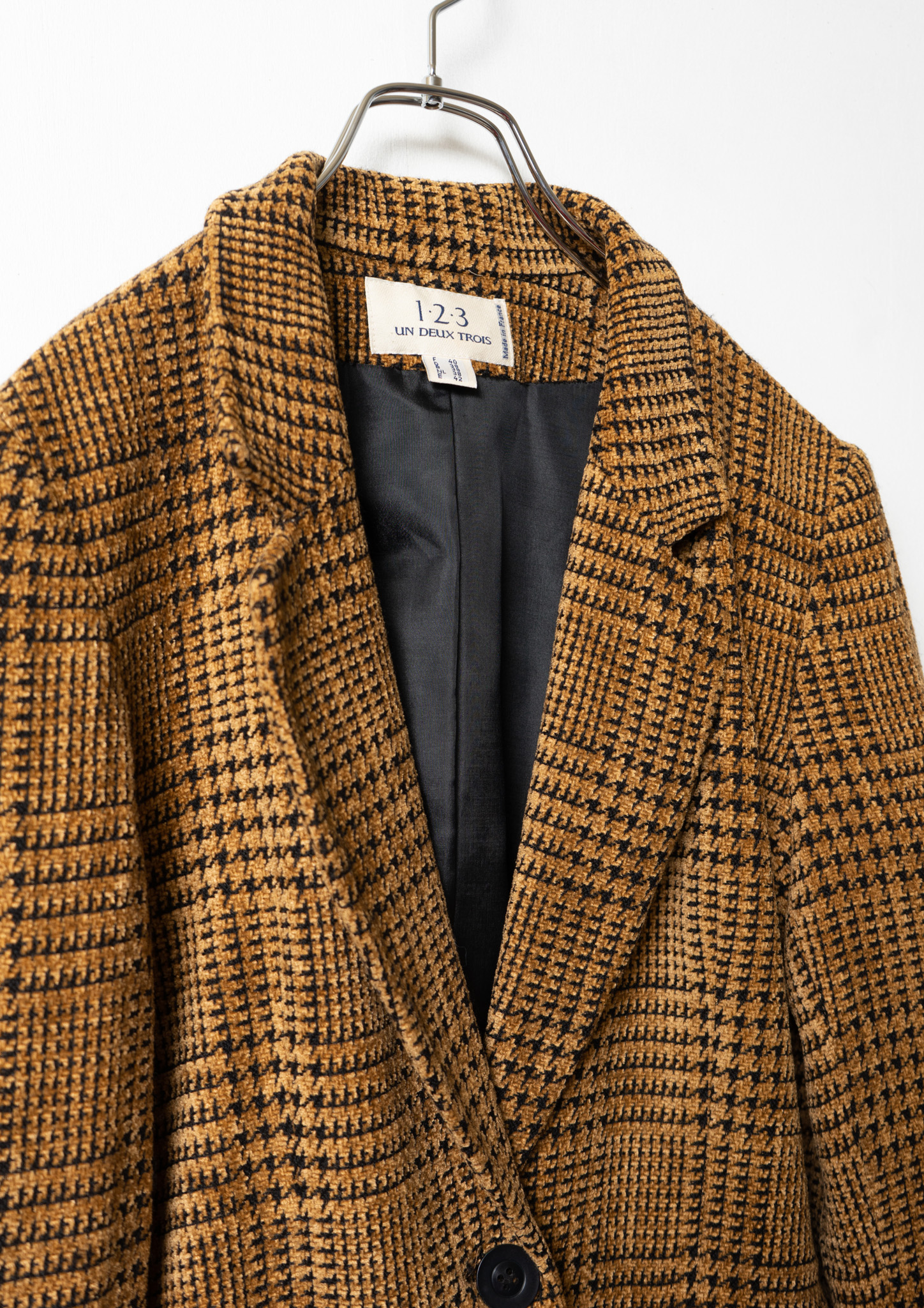 90's France Black × Beige Houndstooth Pattern Tailored Jacket