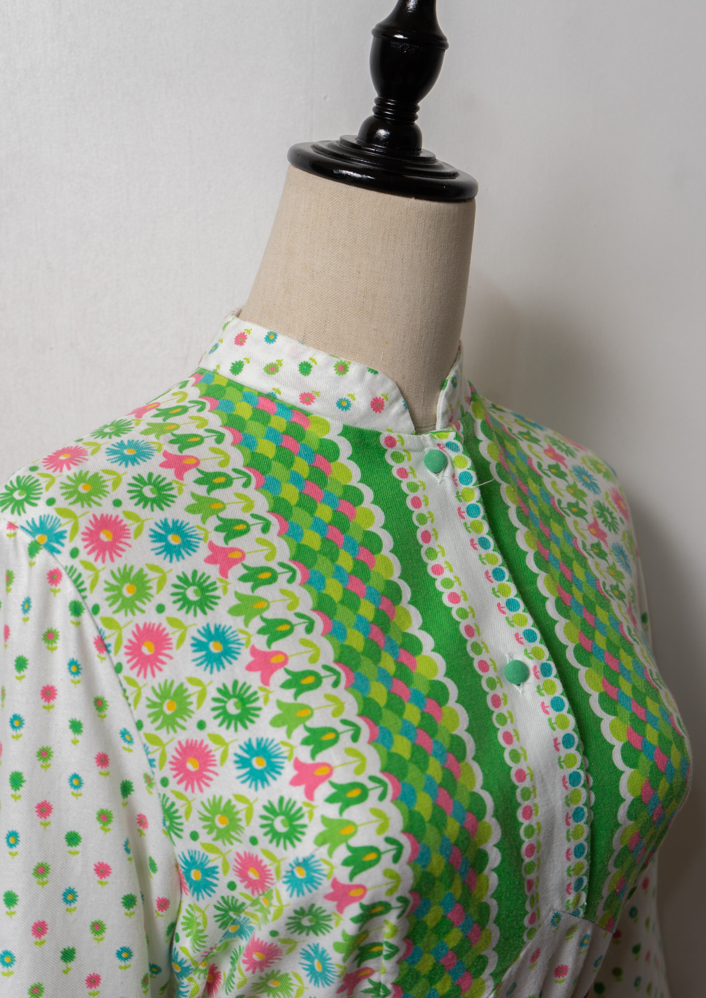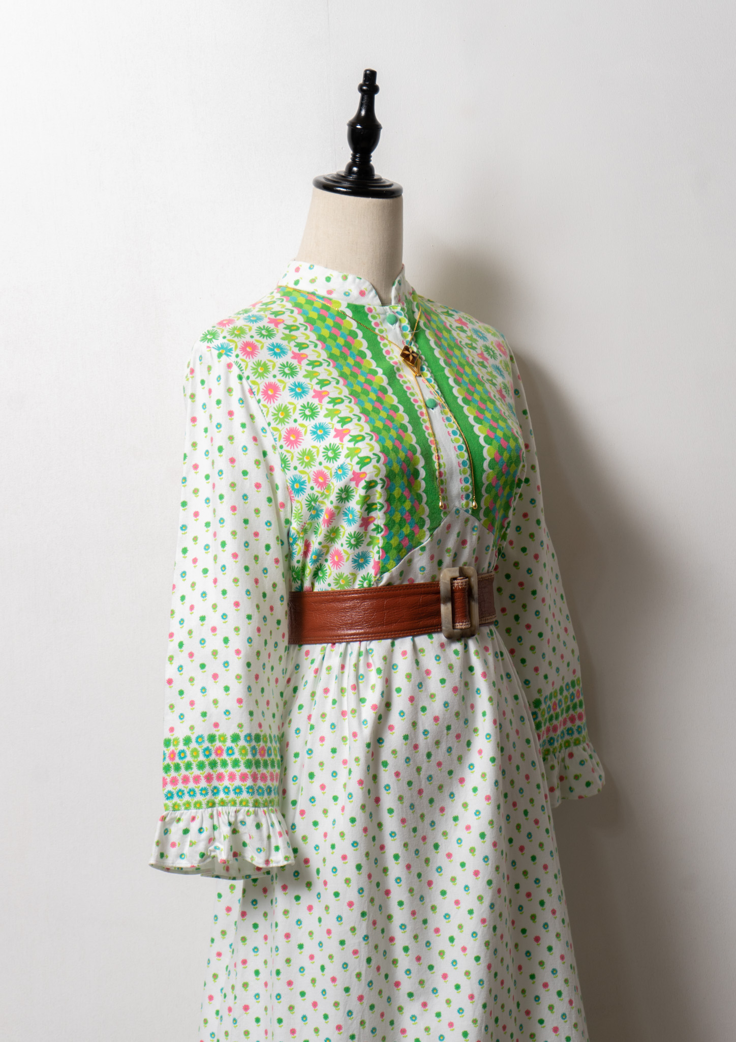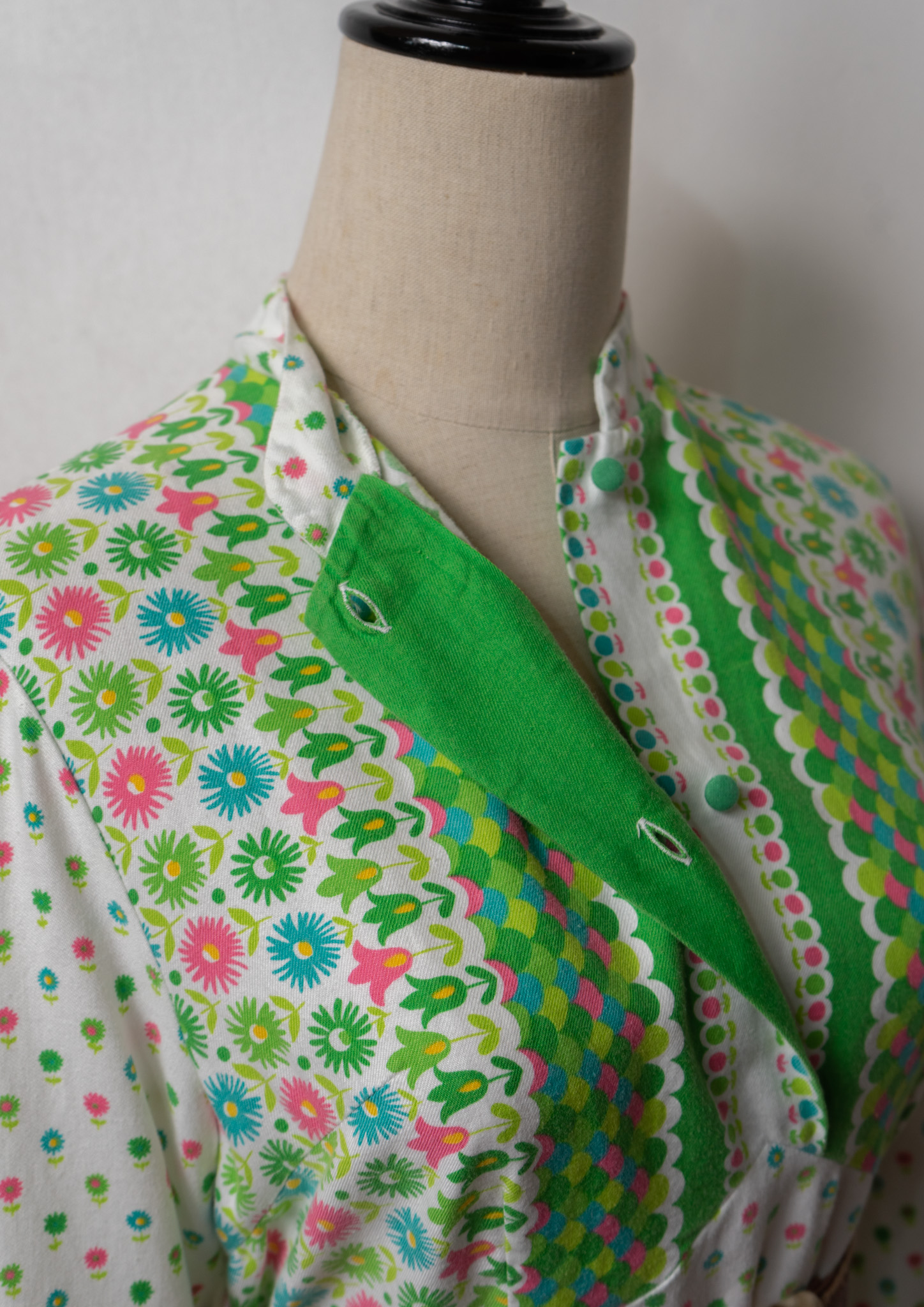 80's USA Houndstooth Pattern Velour Collar × Button Dress