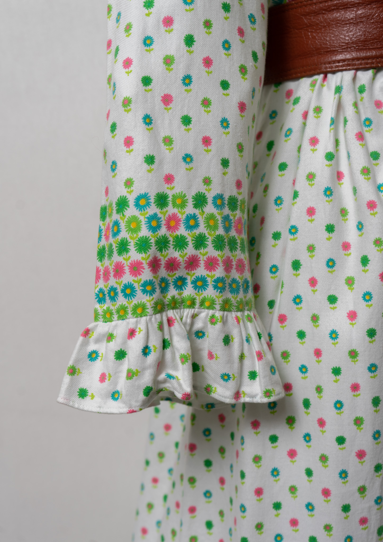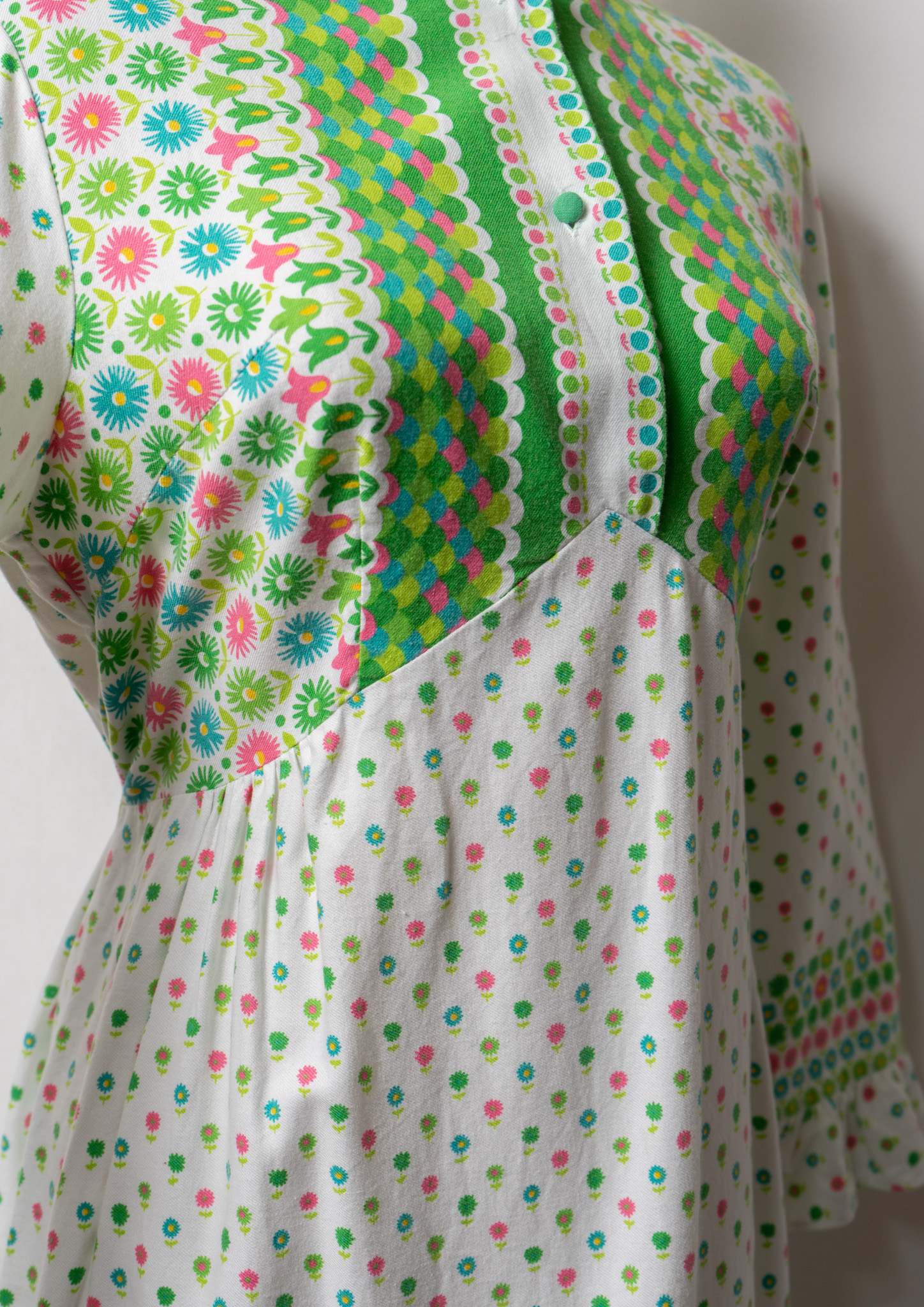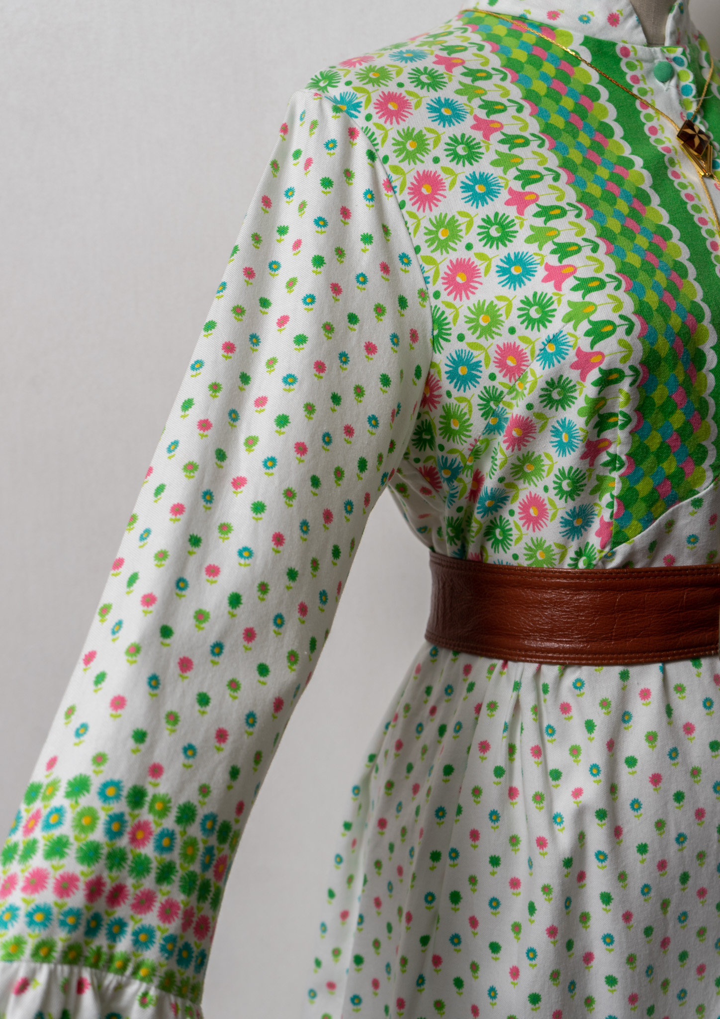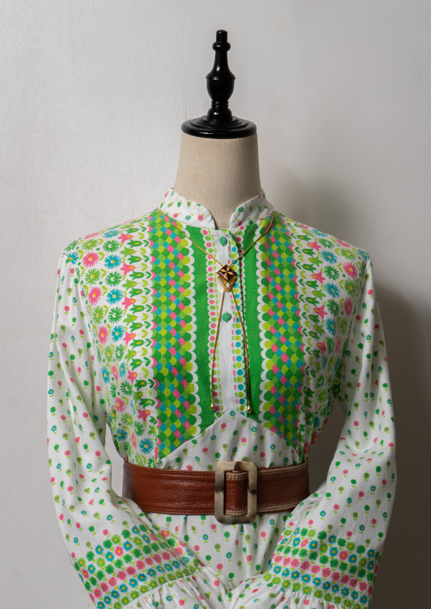 80's USA Houndstooth Pattern Velour Collar × Button Dress