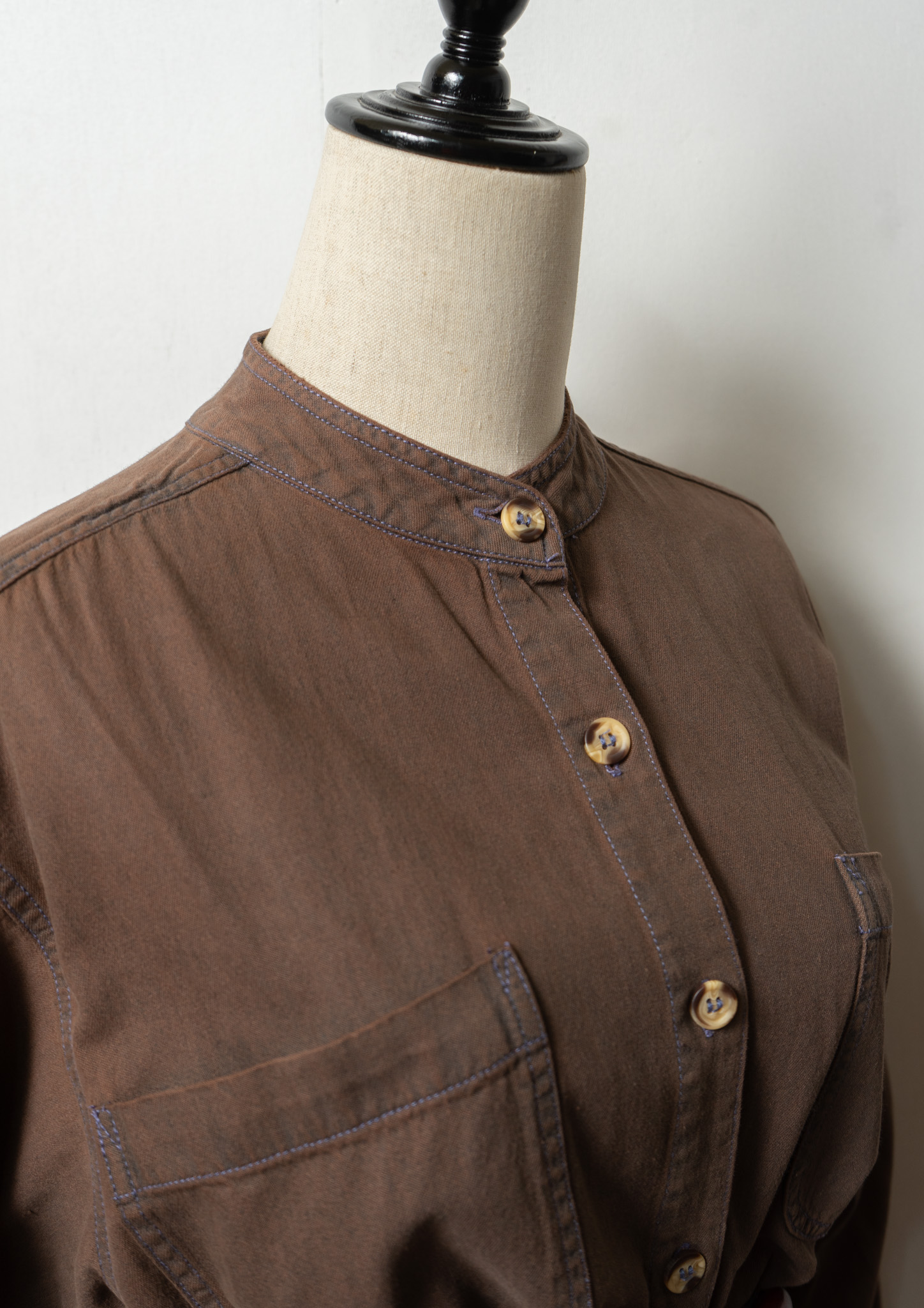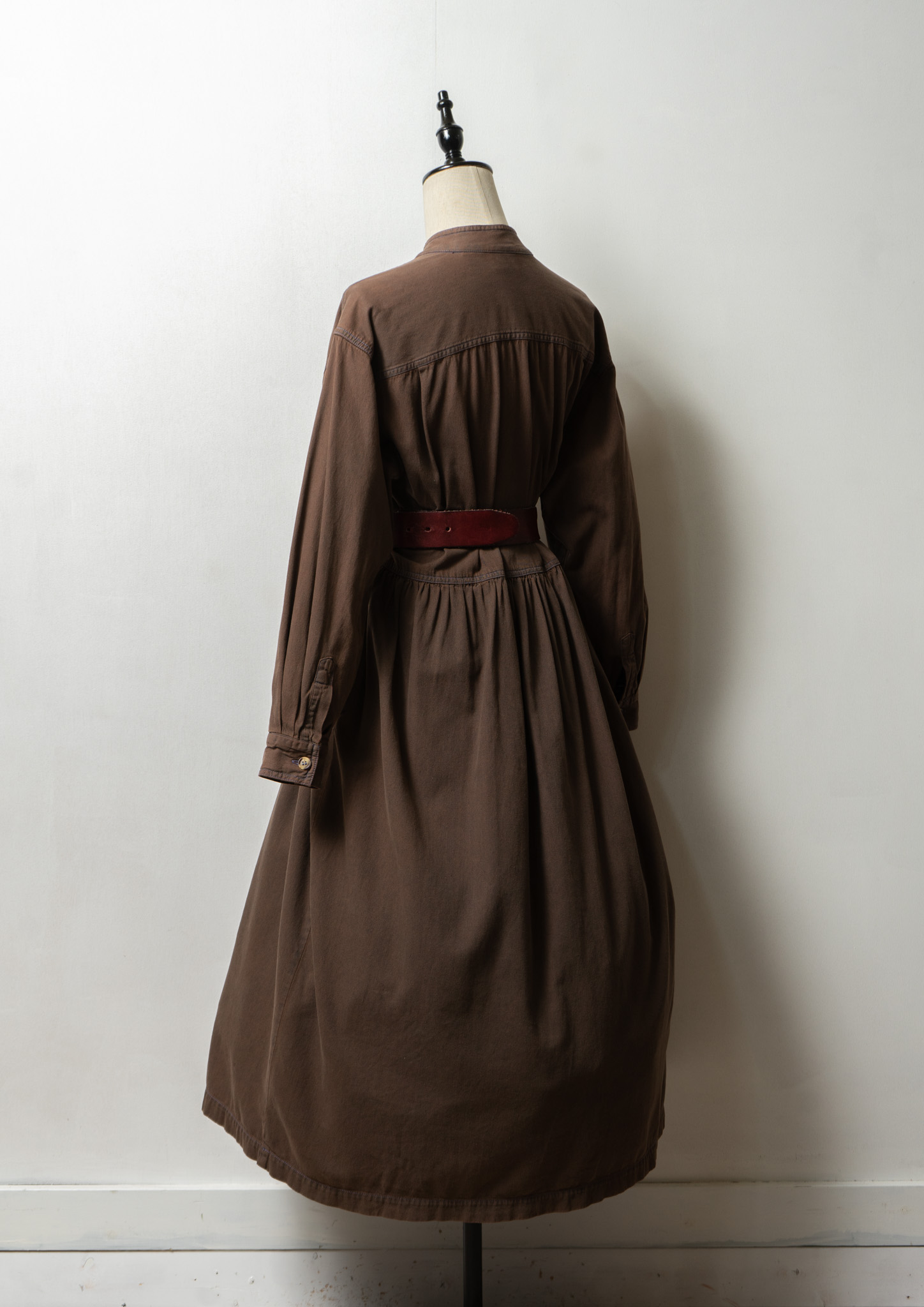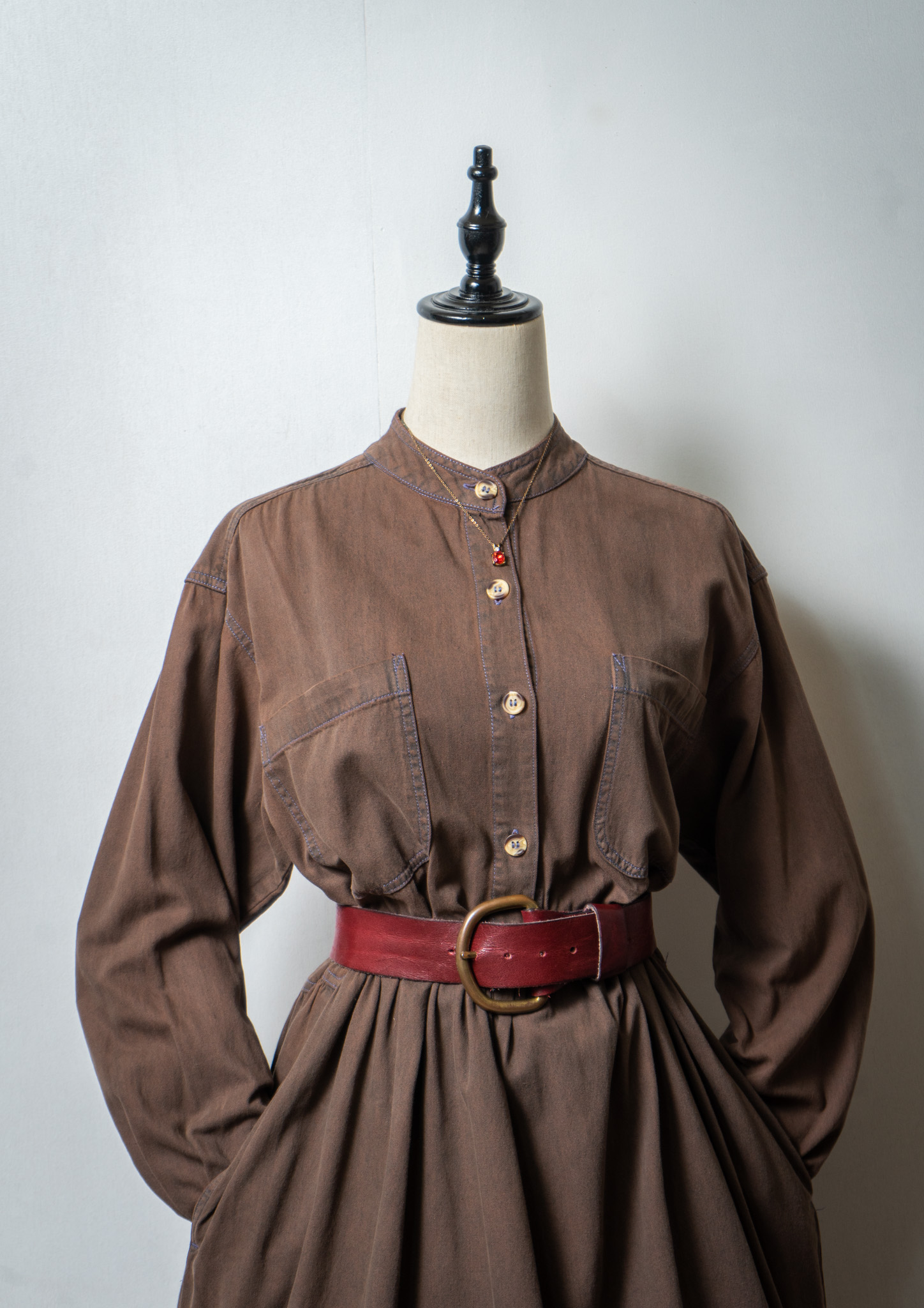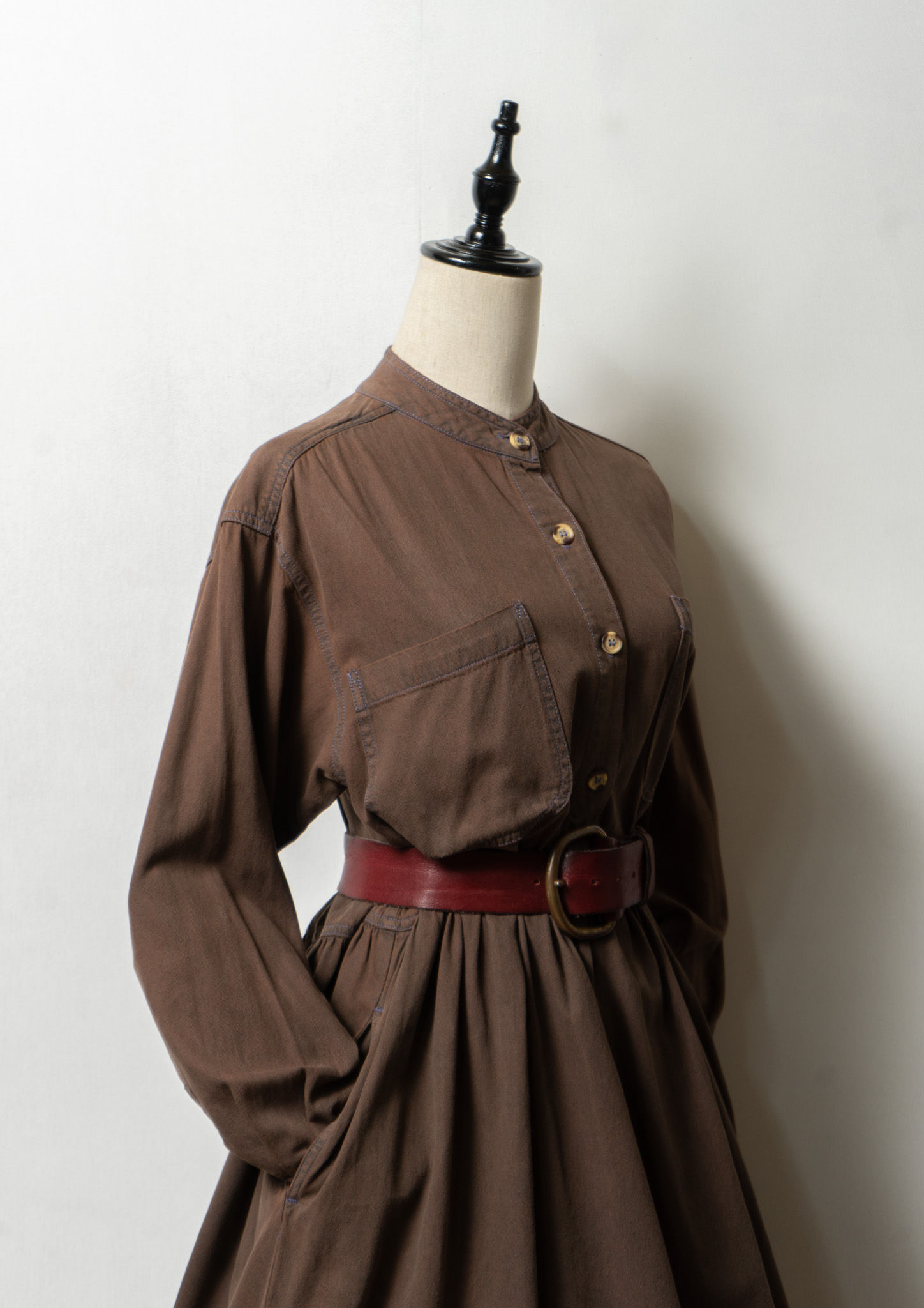 70~80's Blue Stitch Brown Over dye Stand Collar Dress