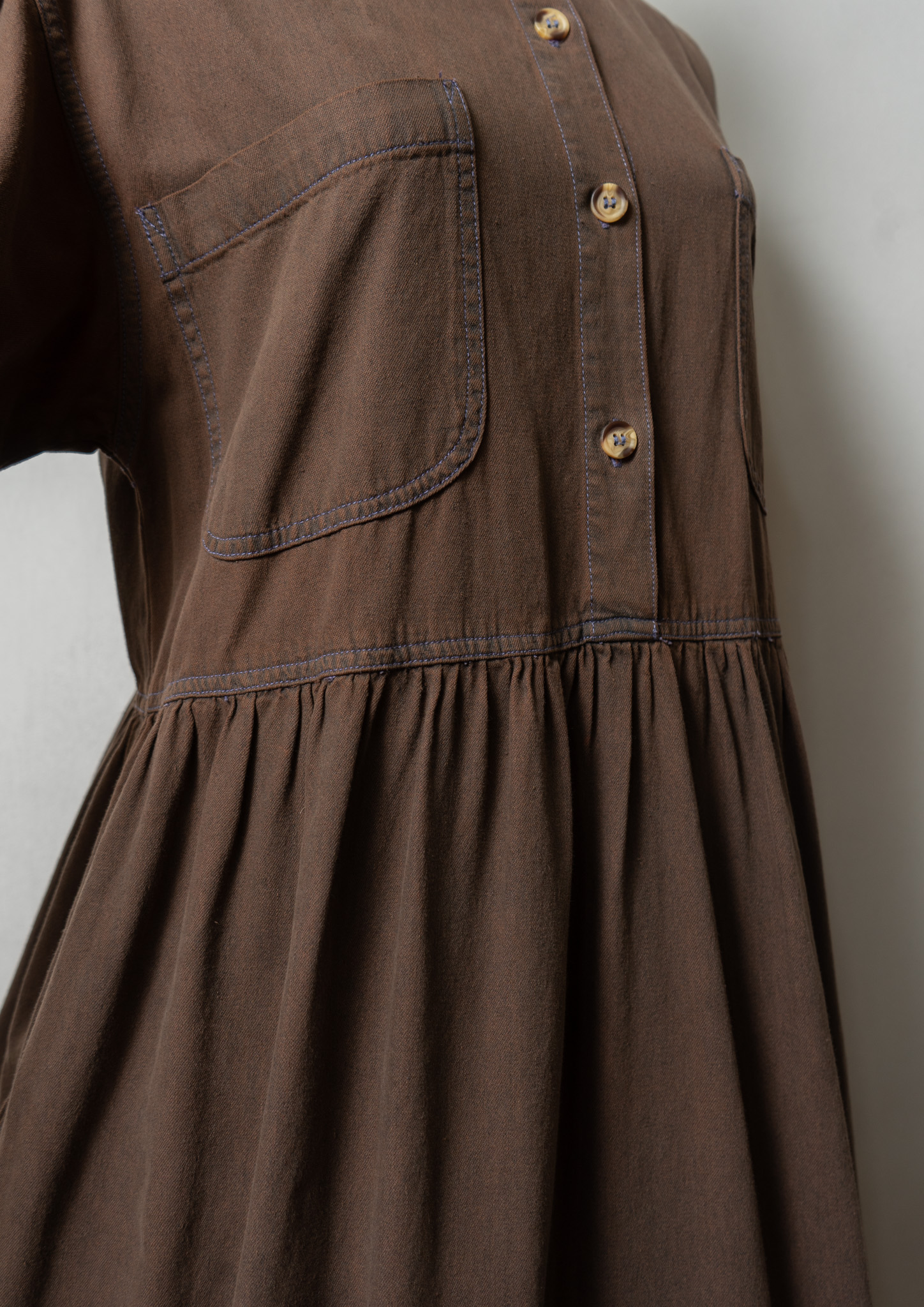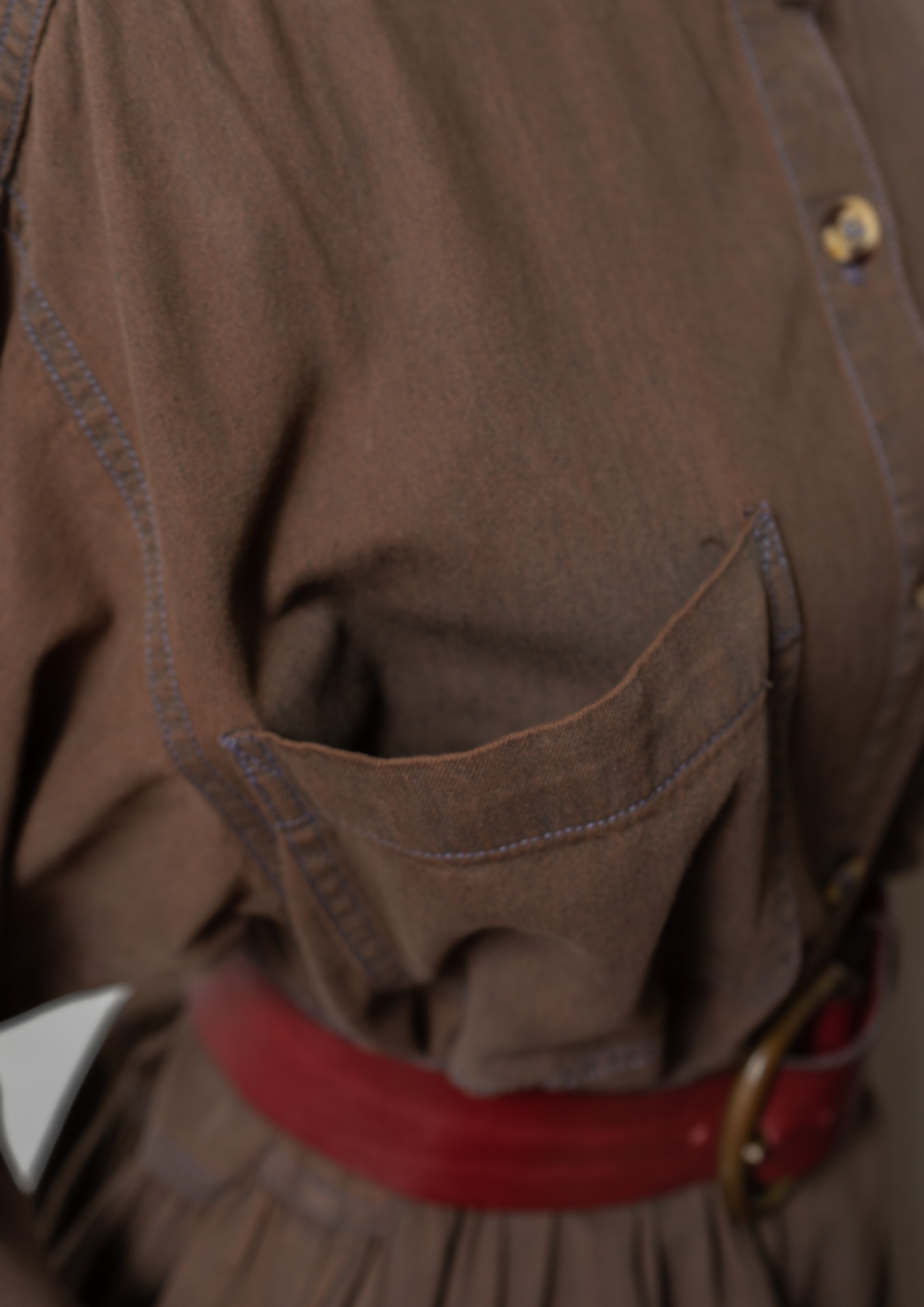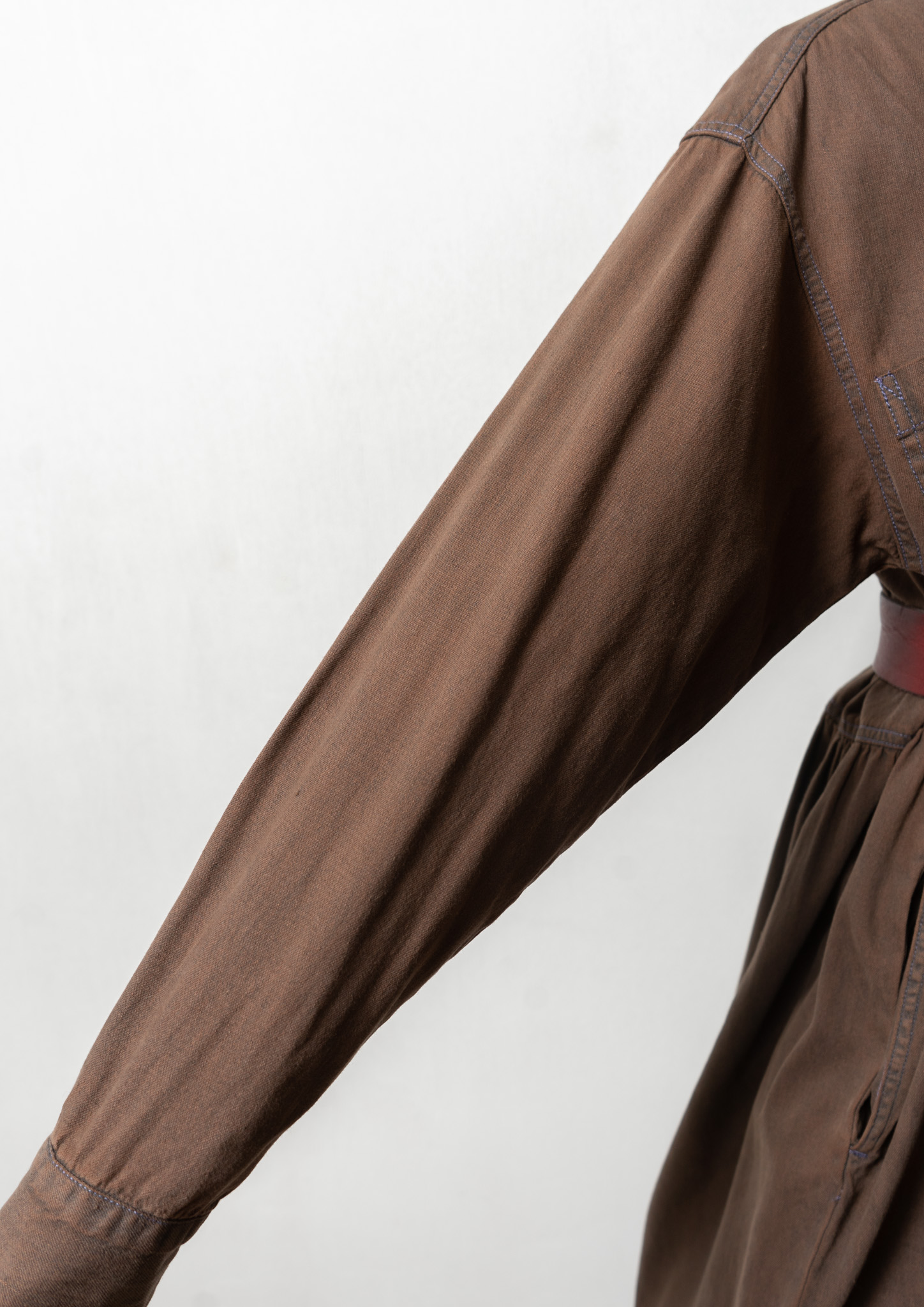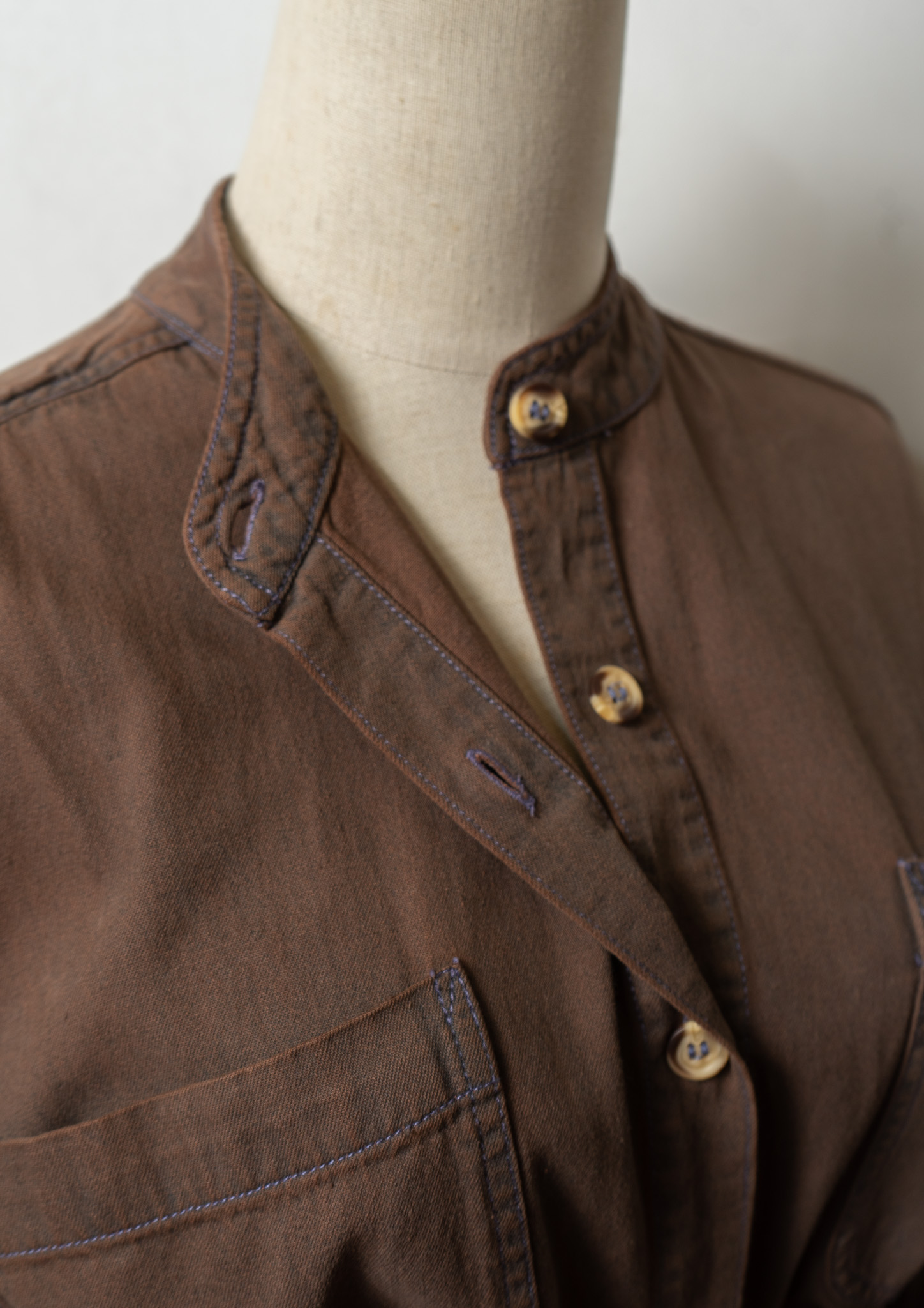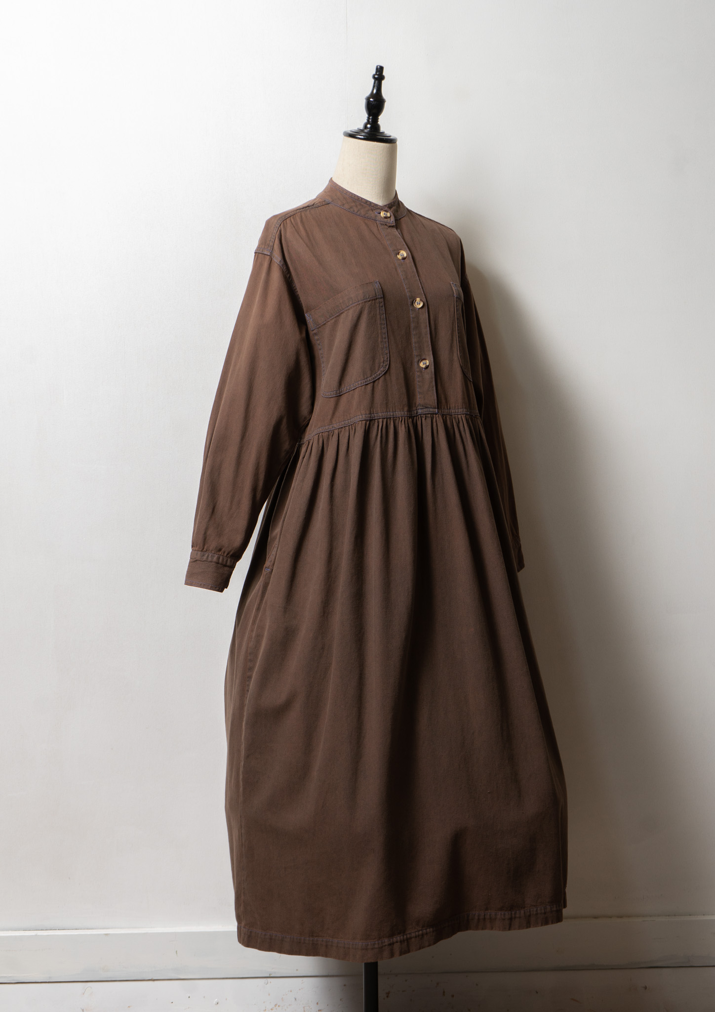 70~80's Blue Stitch Brown Over dye Stand Collar Dress