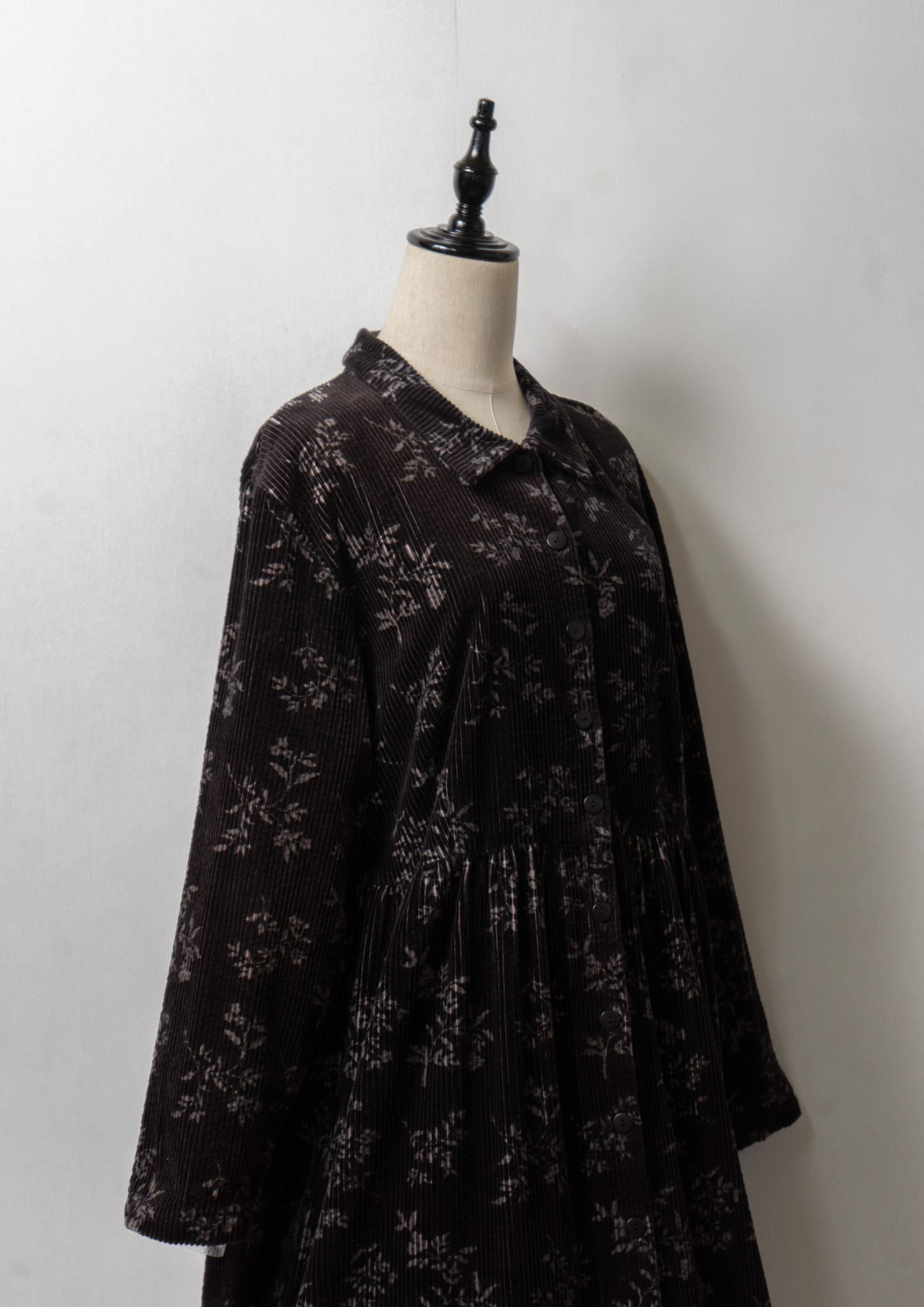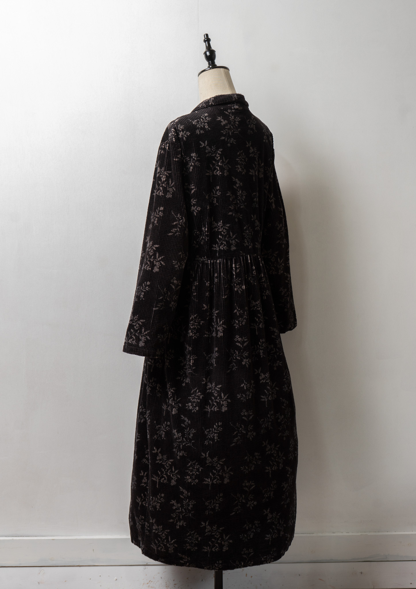 80~90's Flower Pattern Black Corduroy Dress