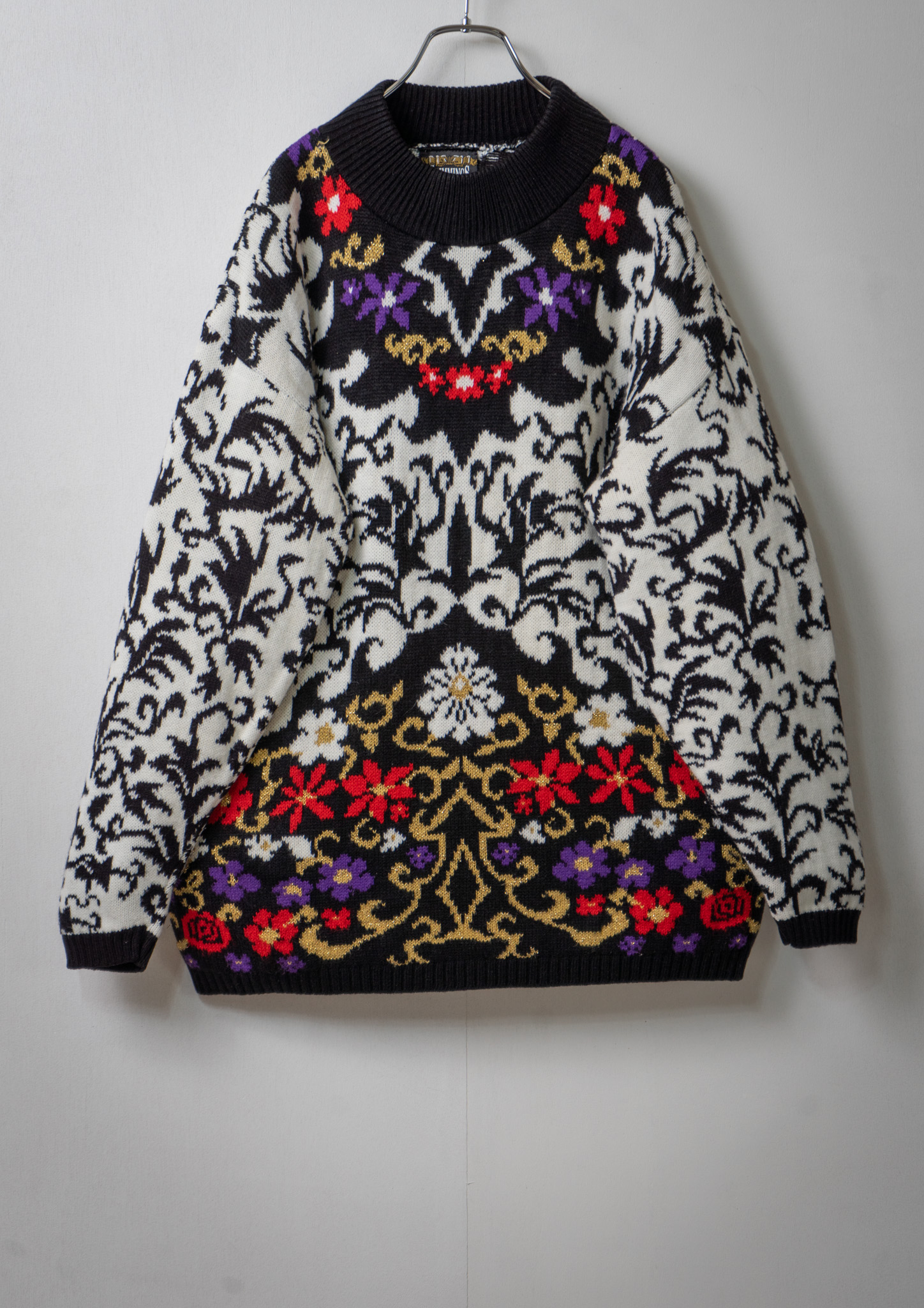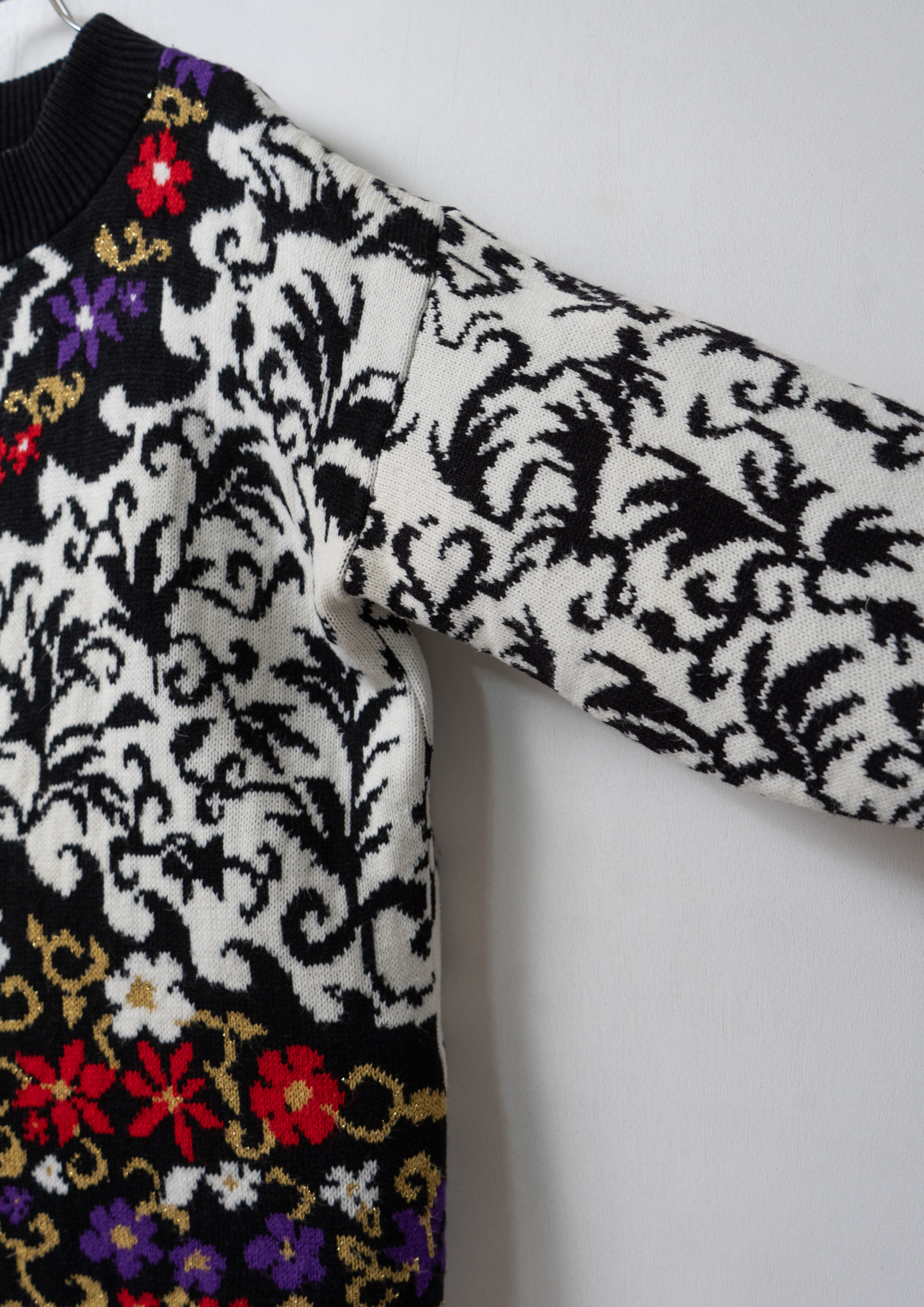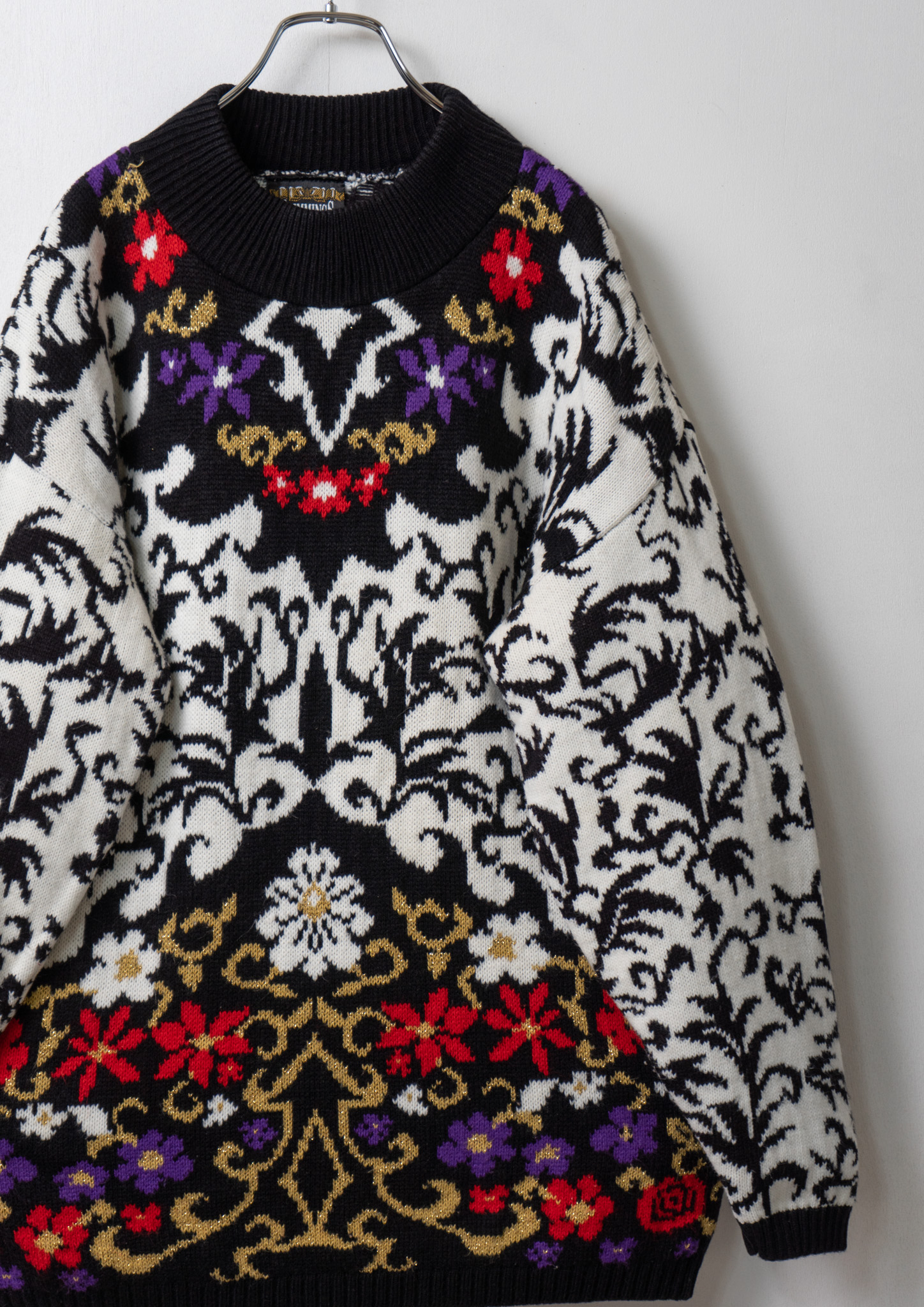 90's Flower × 3D Embroidery Pattern Knit Sweater