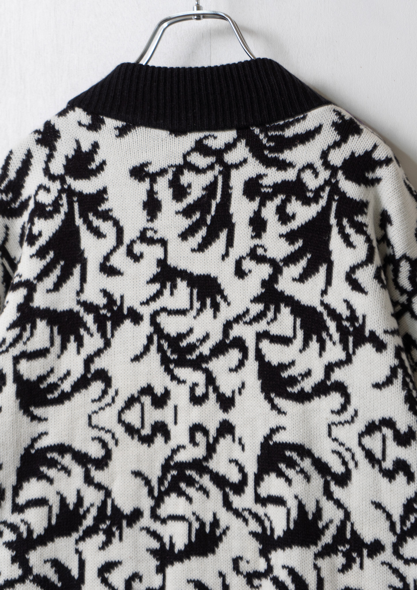 80~90's USA Tennis Art Pattern White Knit Sweater