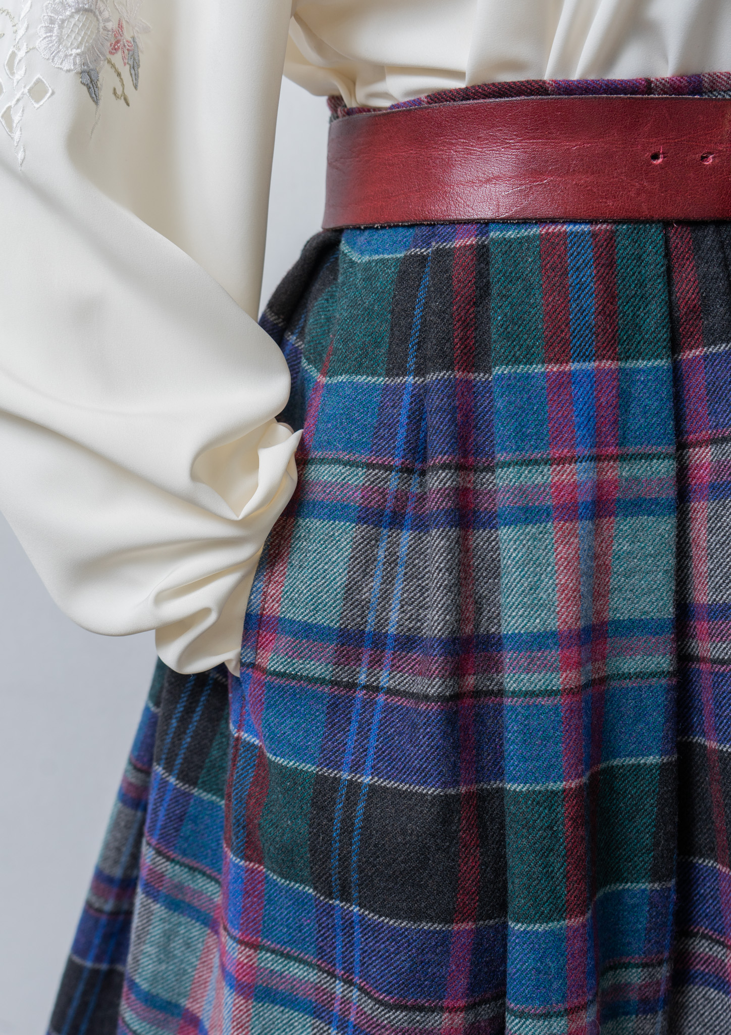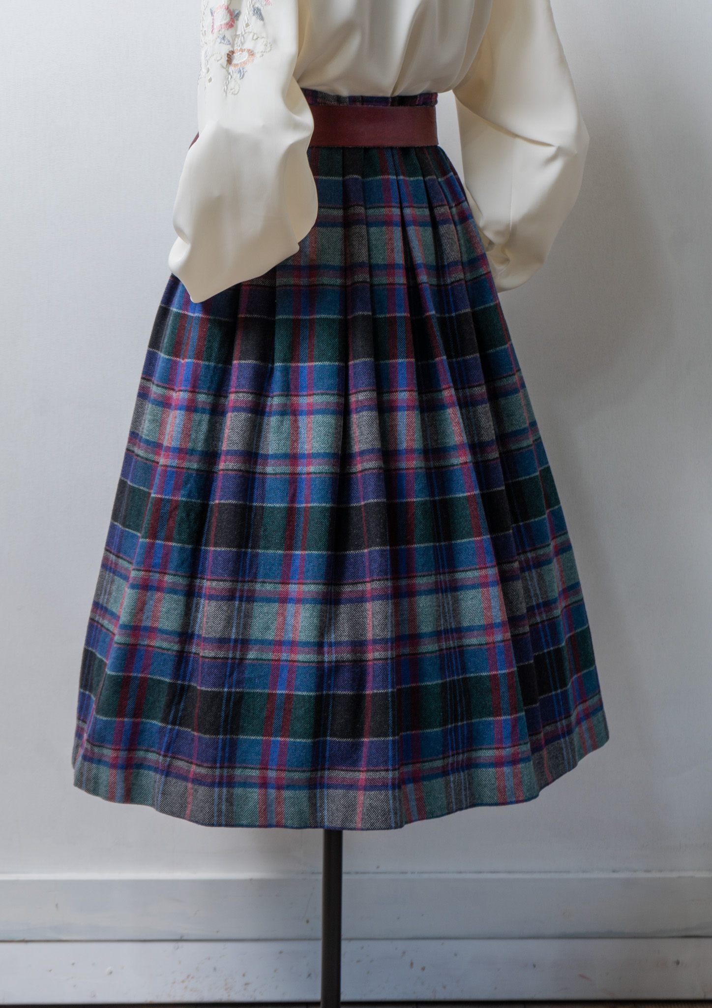 90's Euro Tuck Design Check Pattern Brown Skirt