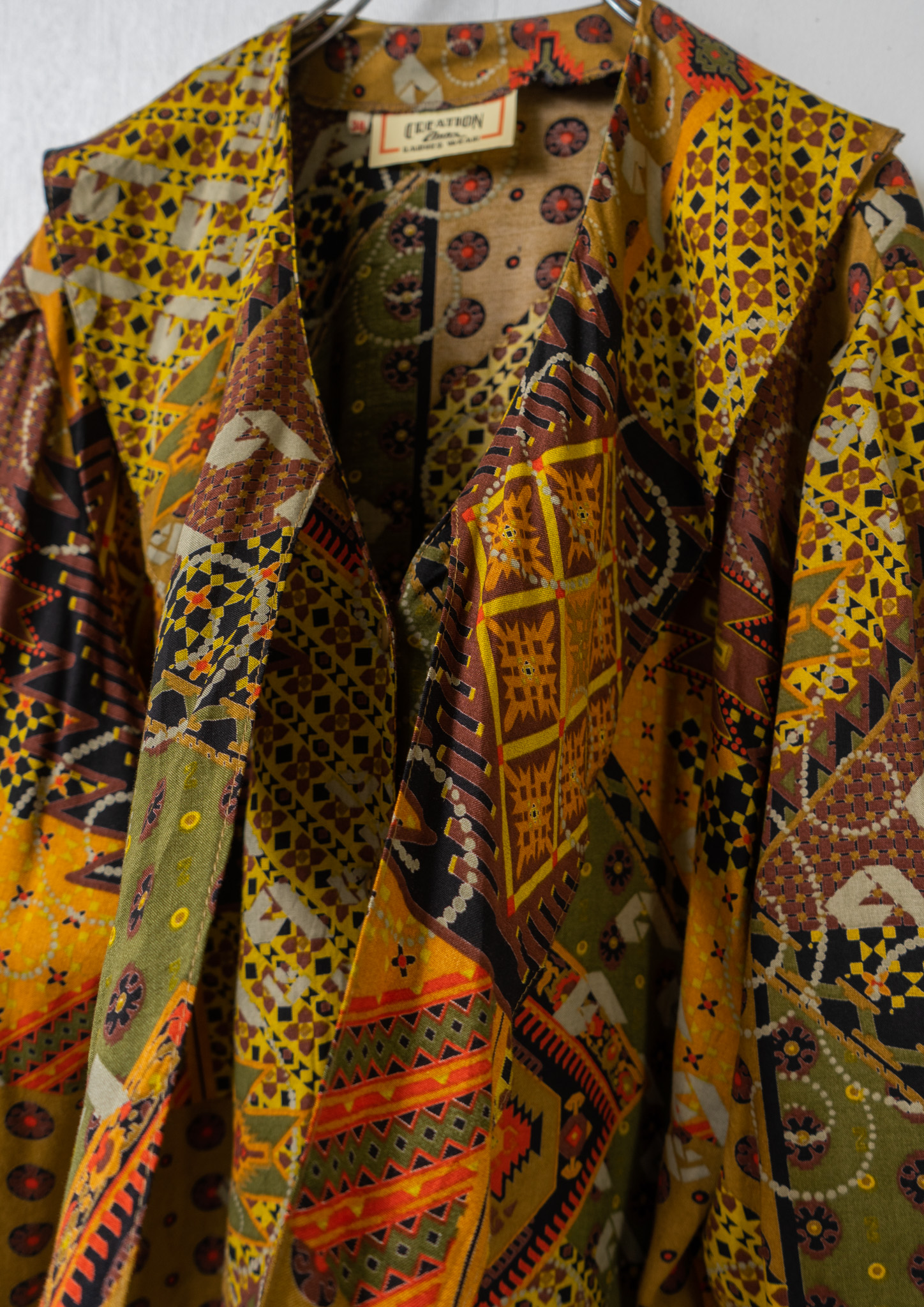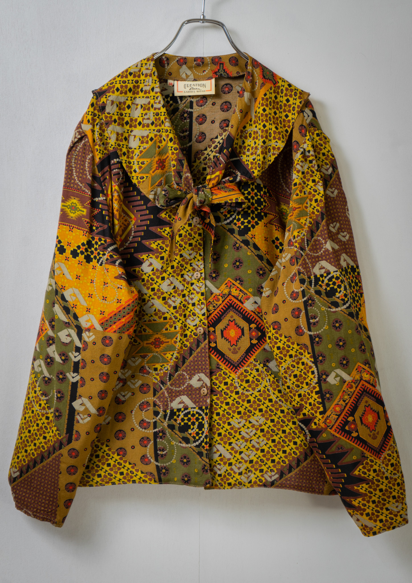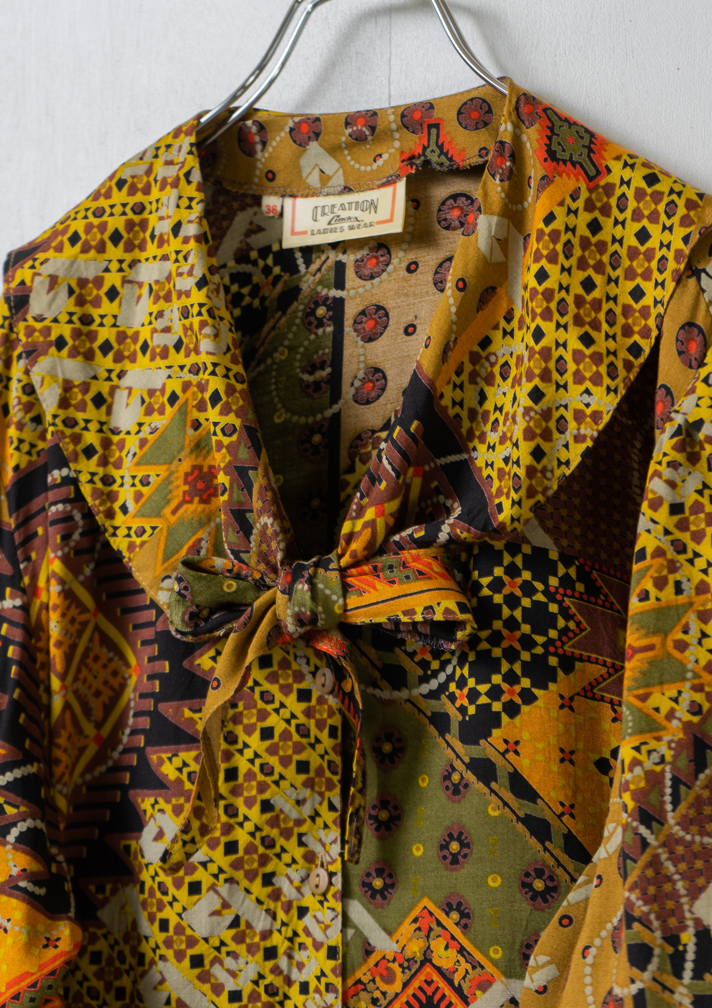 80's UK Unique Asian Inspired Pattern Bow-tie Blouse