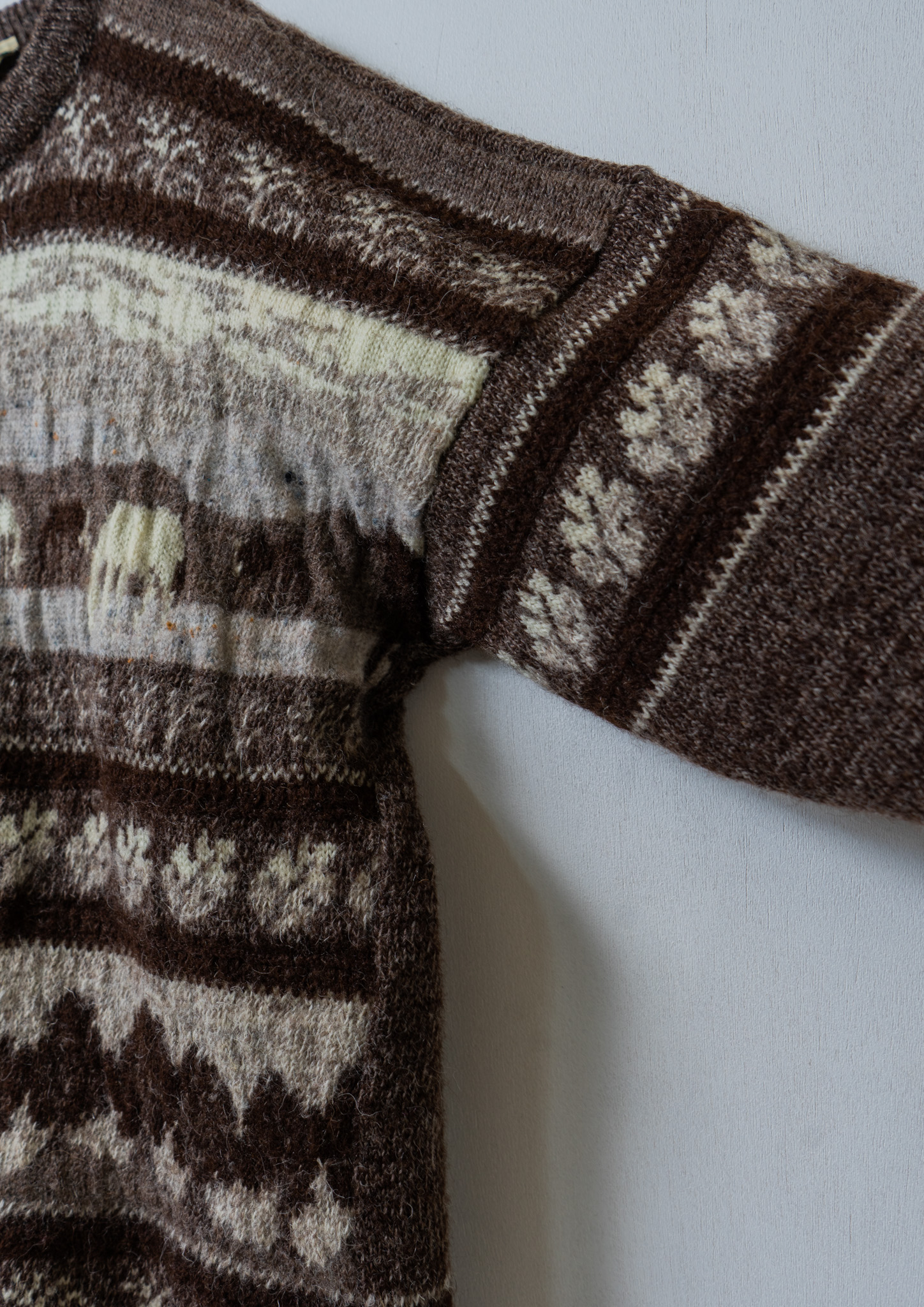 80~90's USA Tennis Art Pattern White Knit Sweater