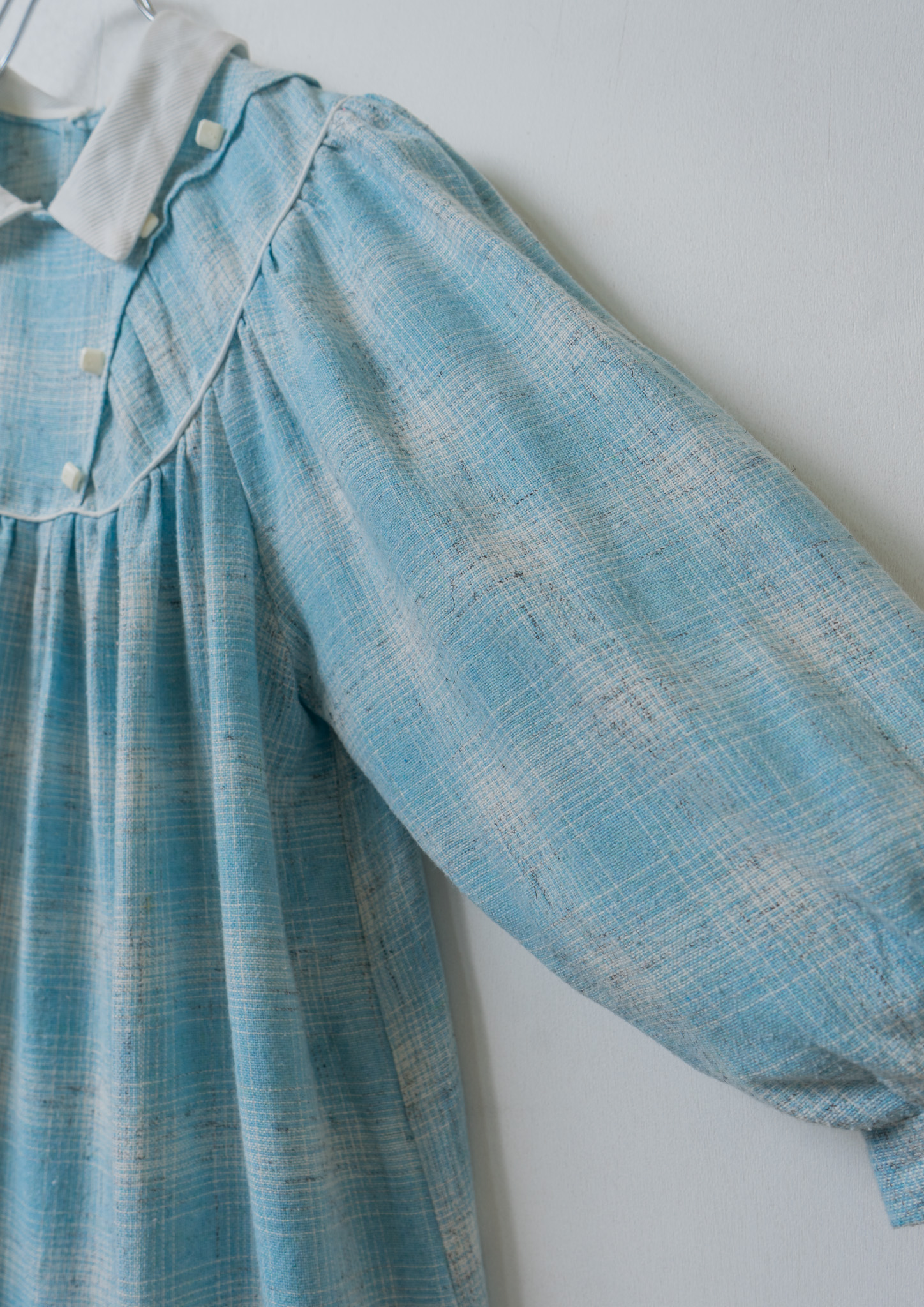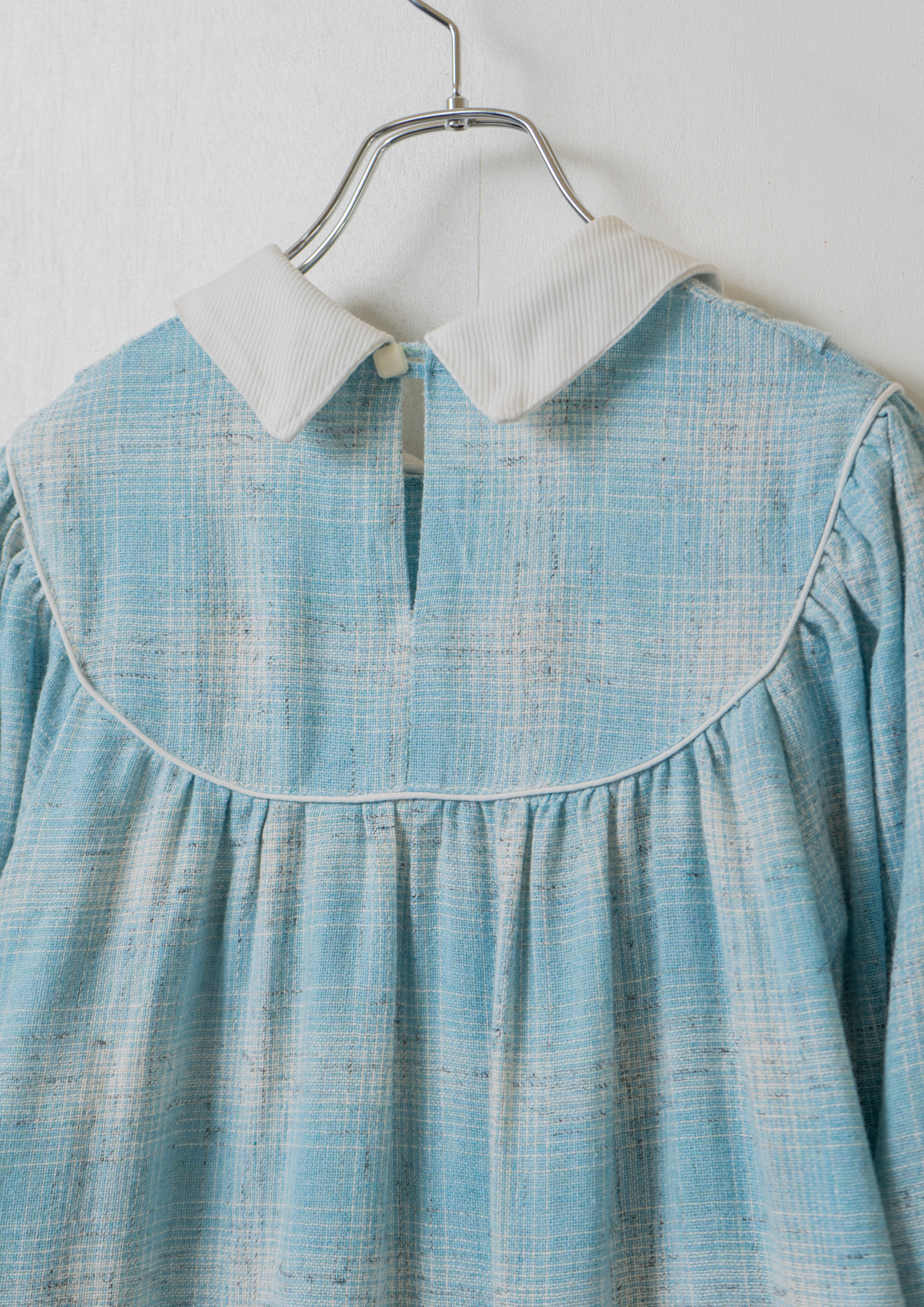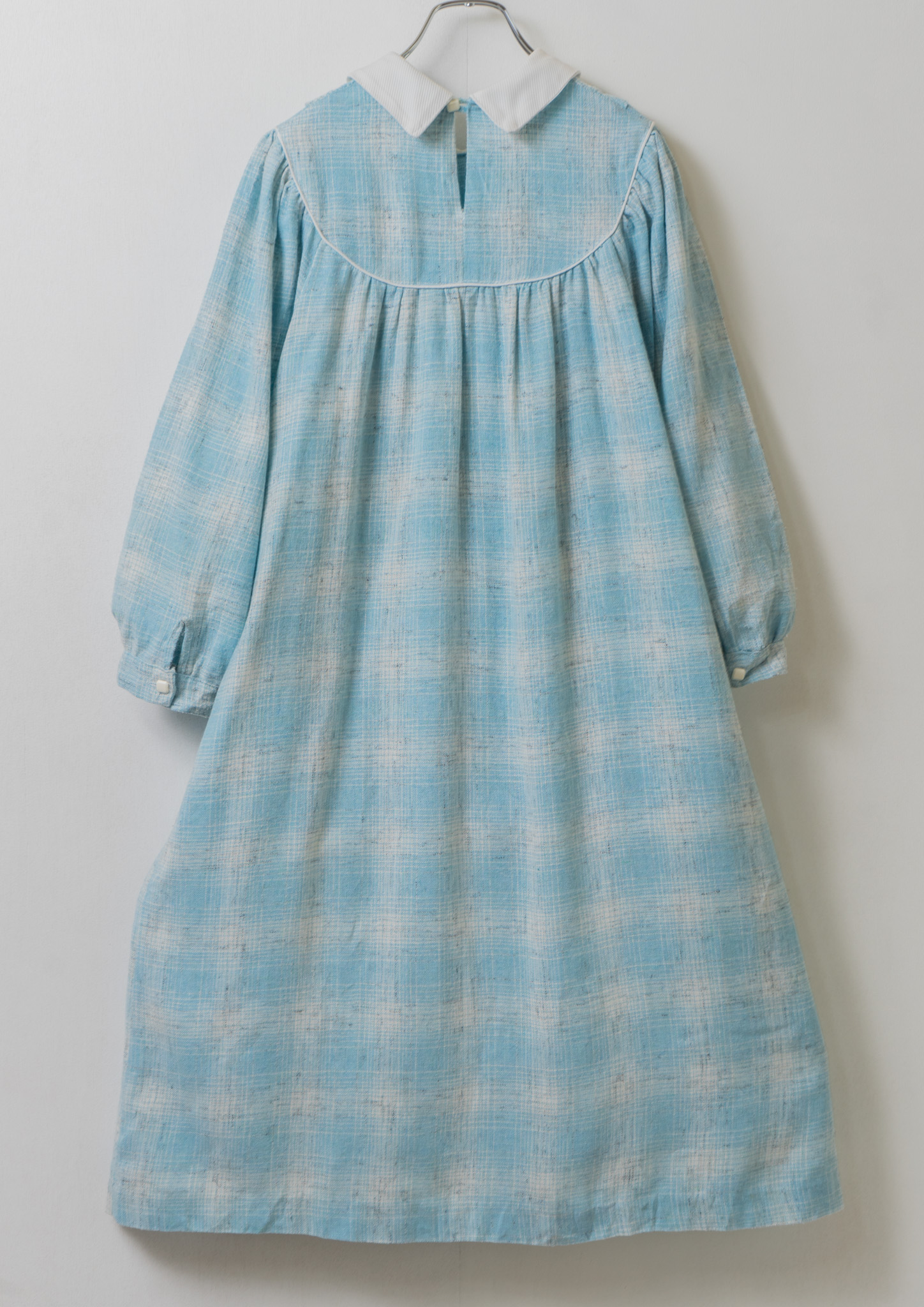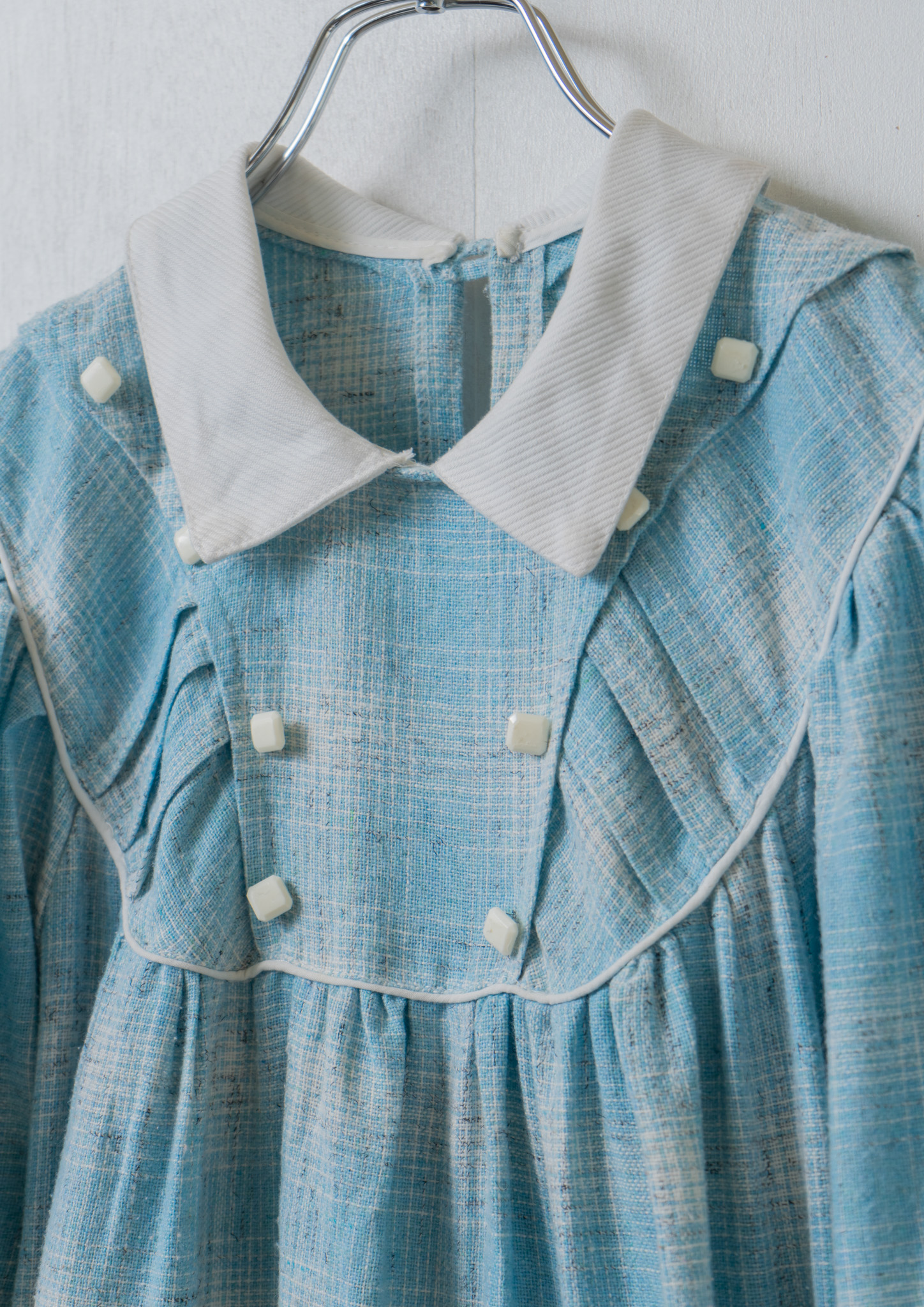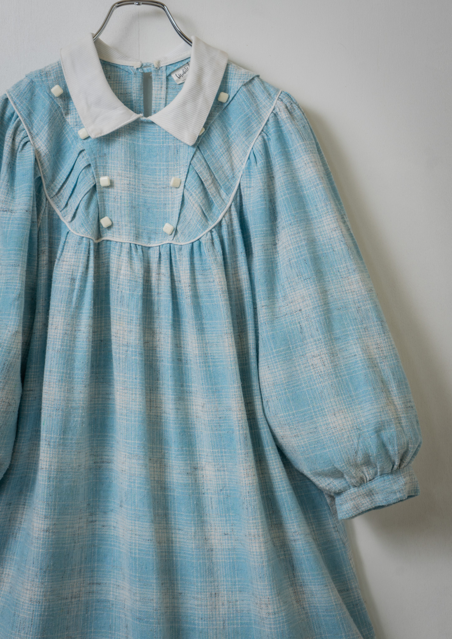 80's USA Houndstooth Pattern Velour Collar × Button Dress