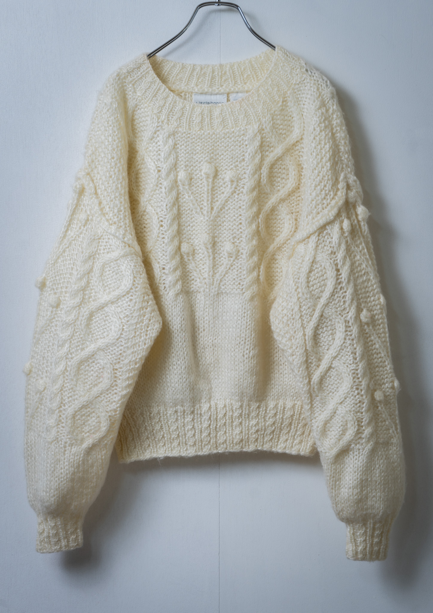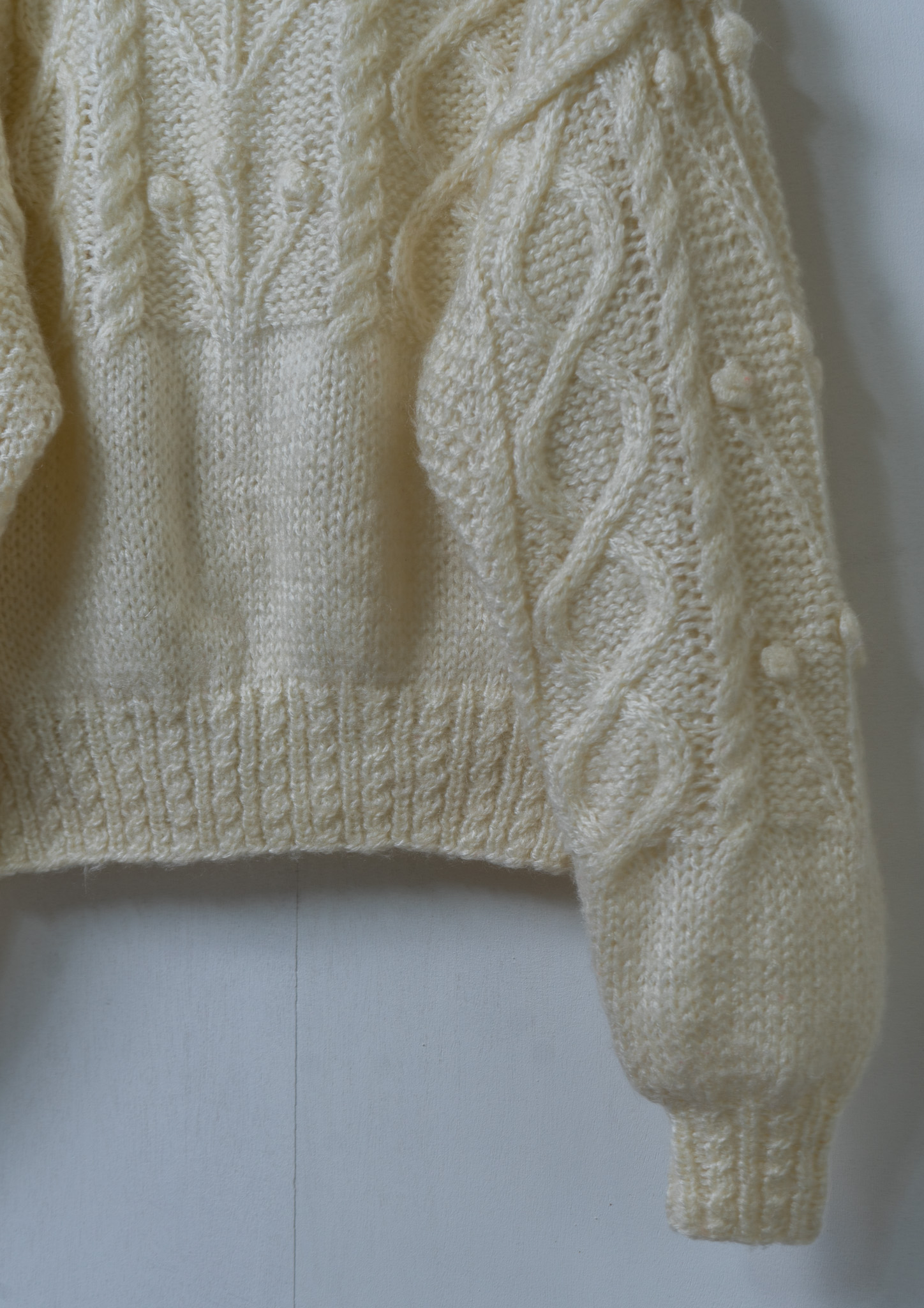 90's Unique Cable Knitting White Sweater