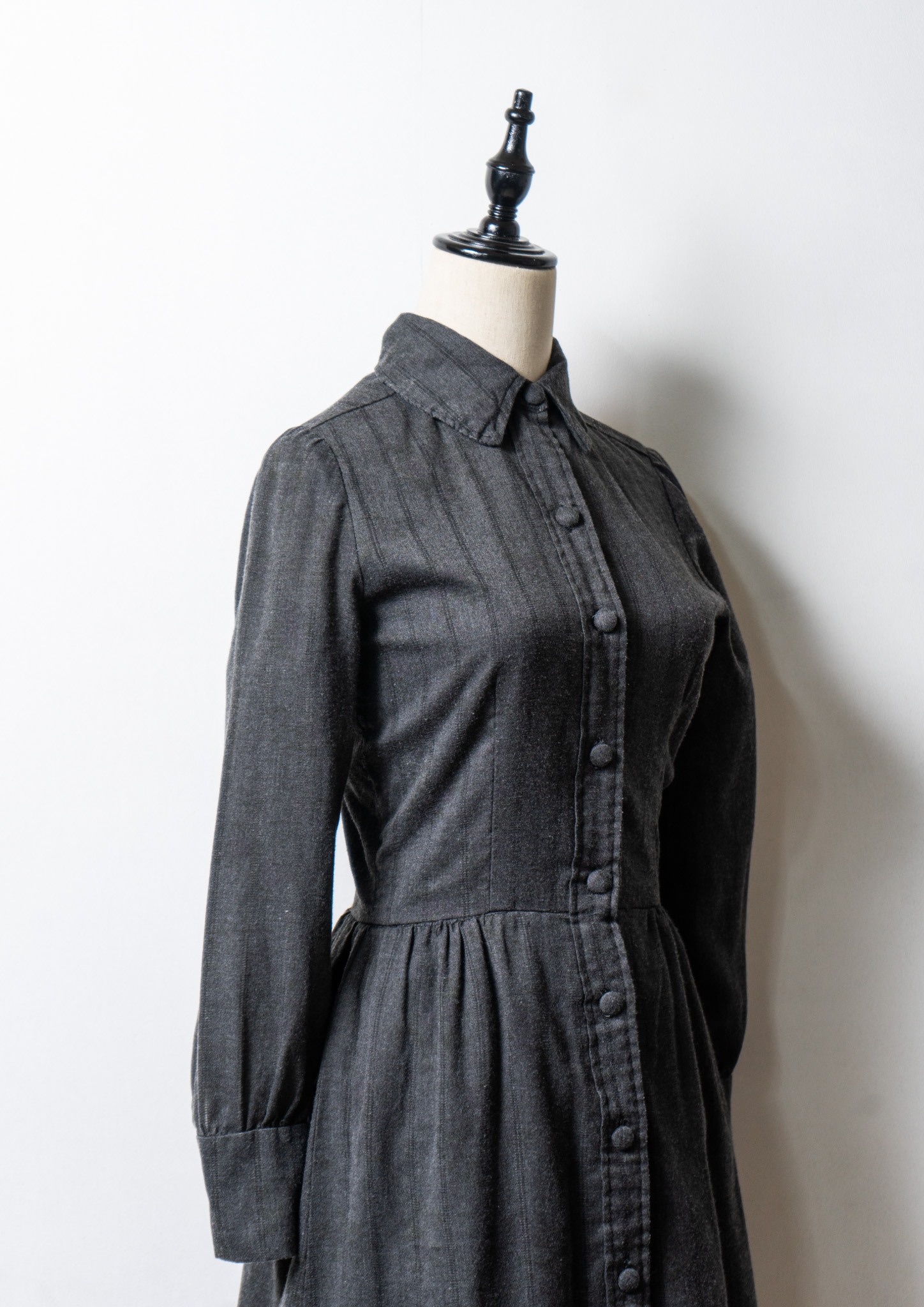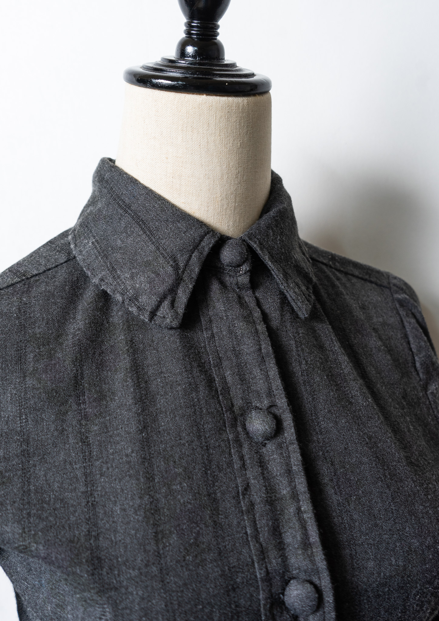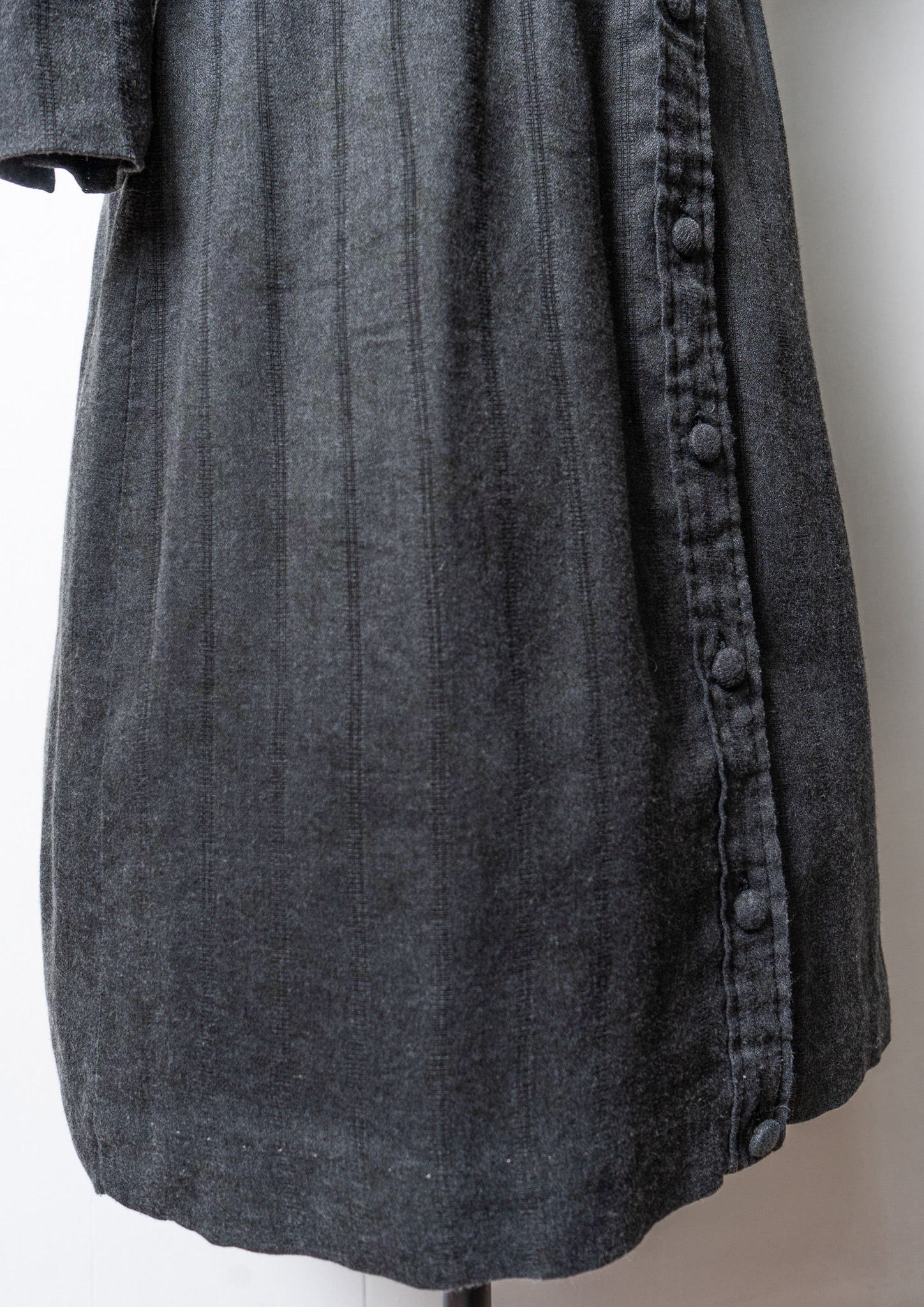 90's Black Velour Collar × Button Gray Over Dye Maxi Dress