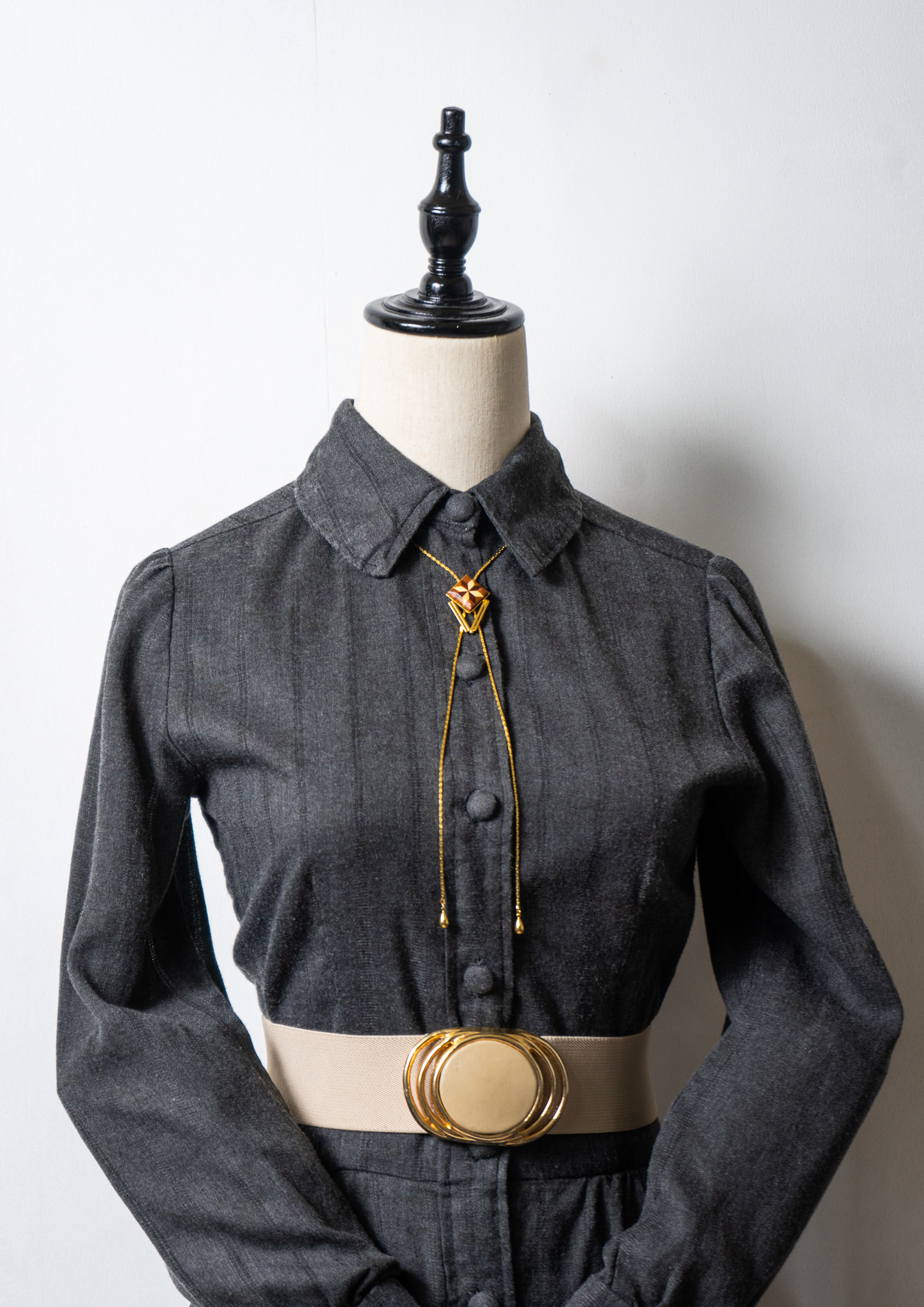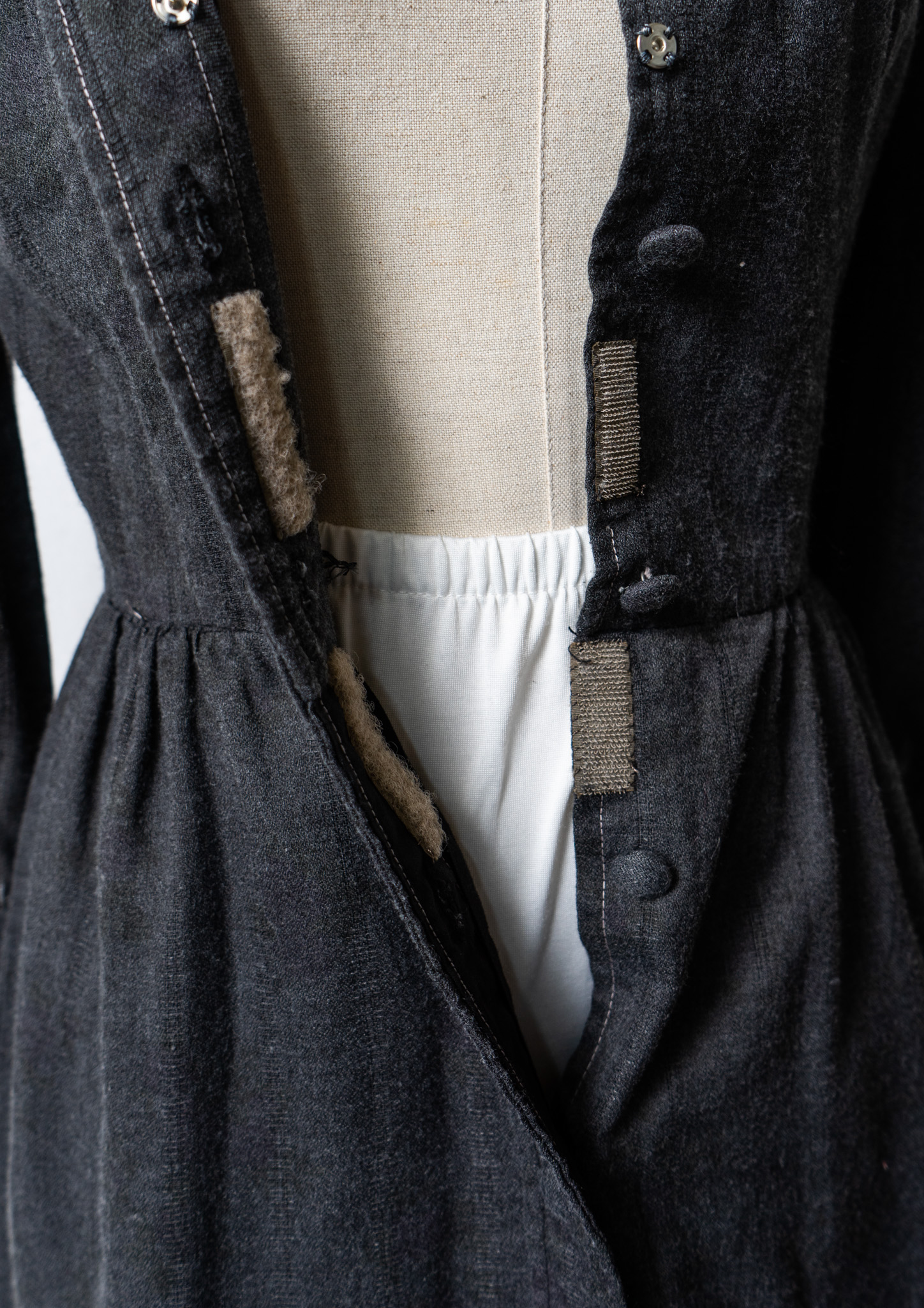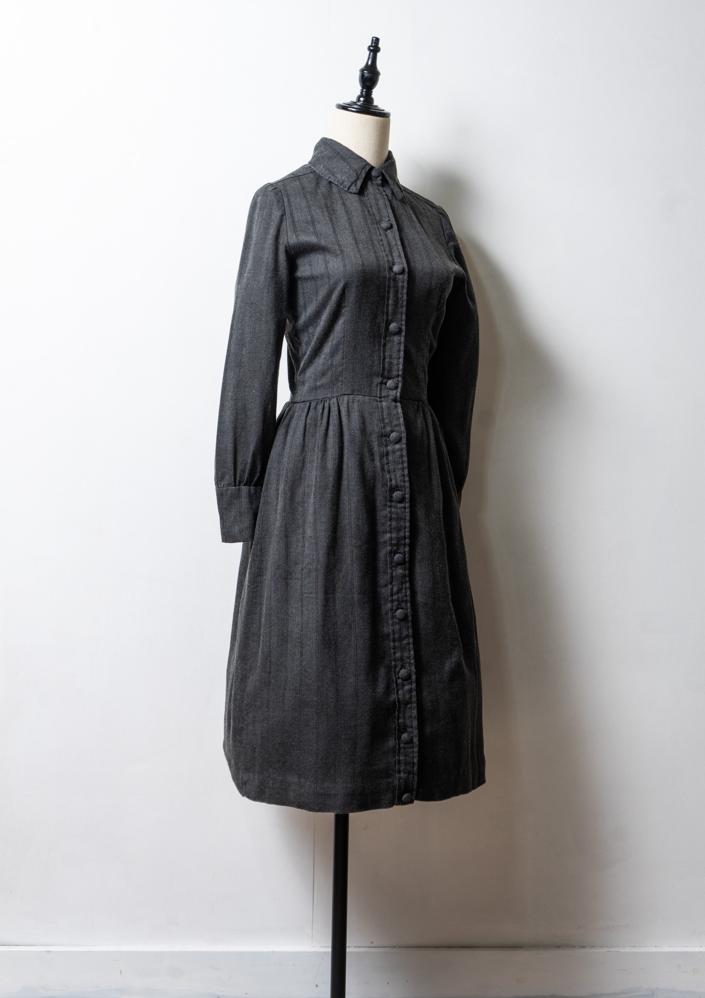 90's Black Velour Collar × Button Gray Over Dye Maxi Dress