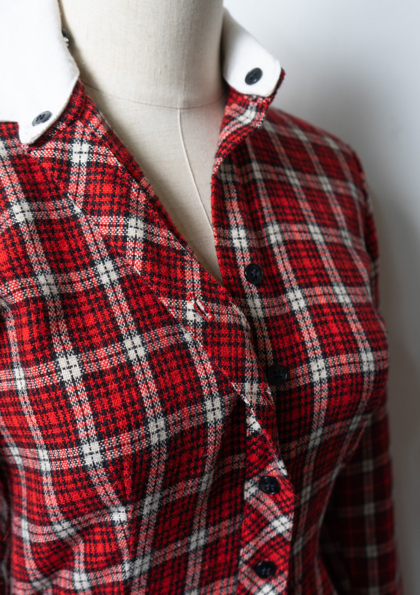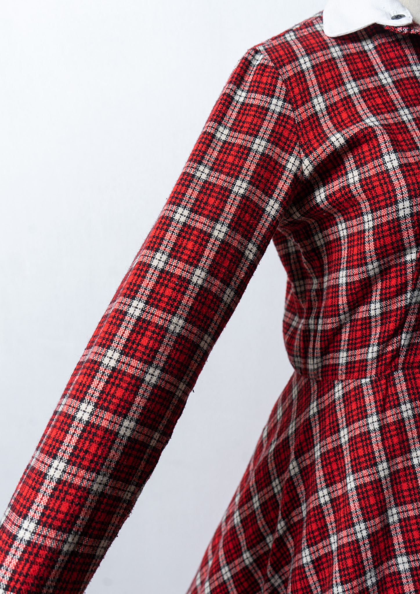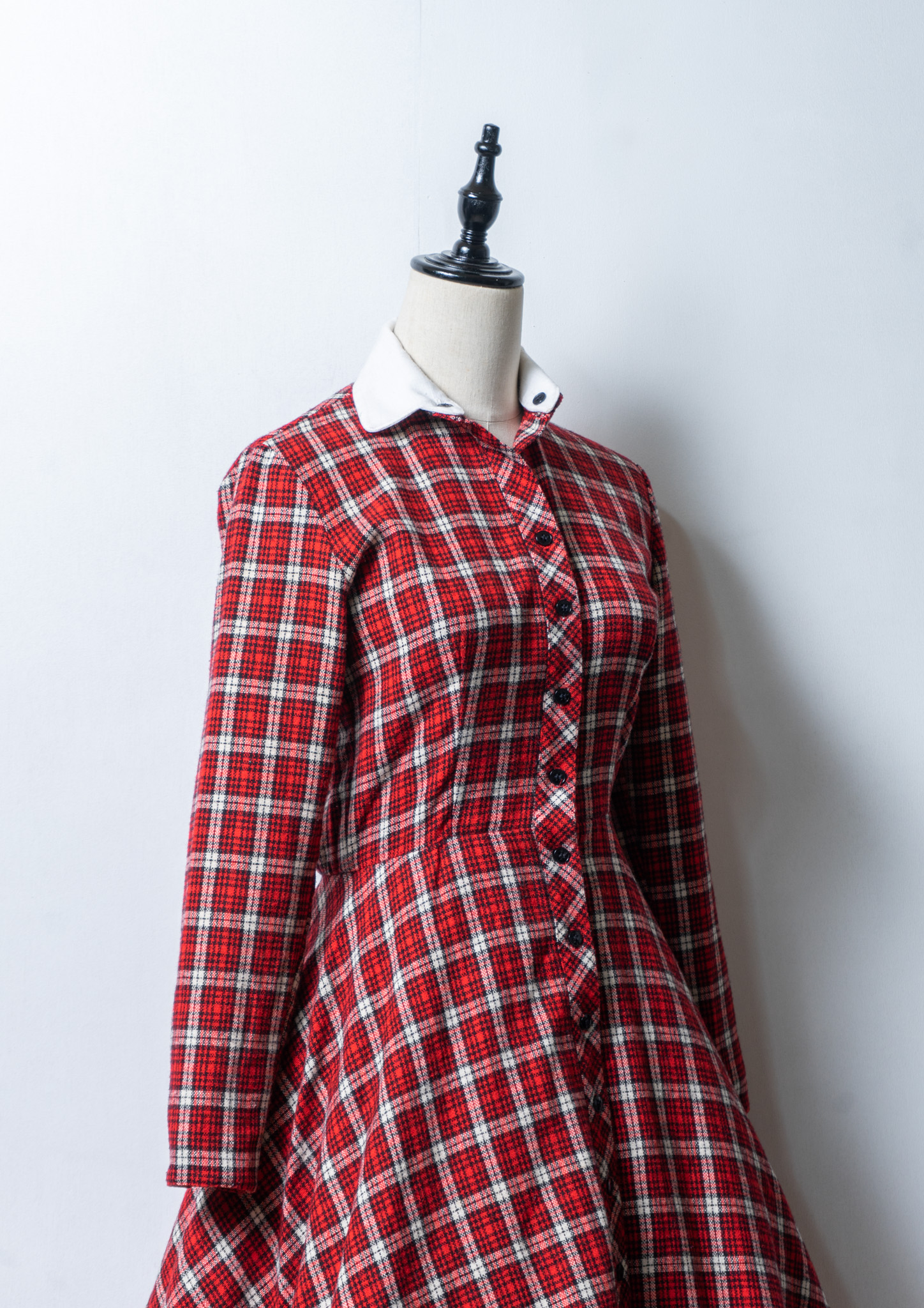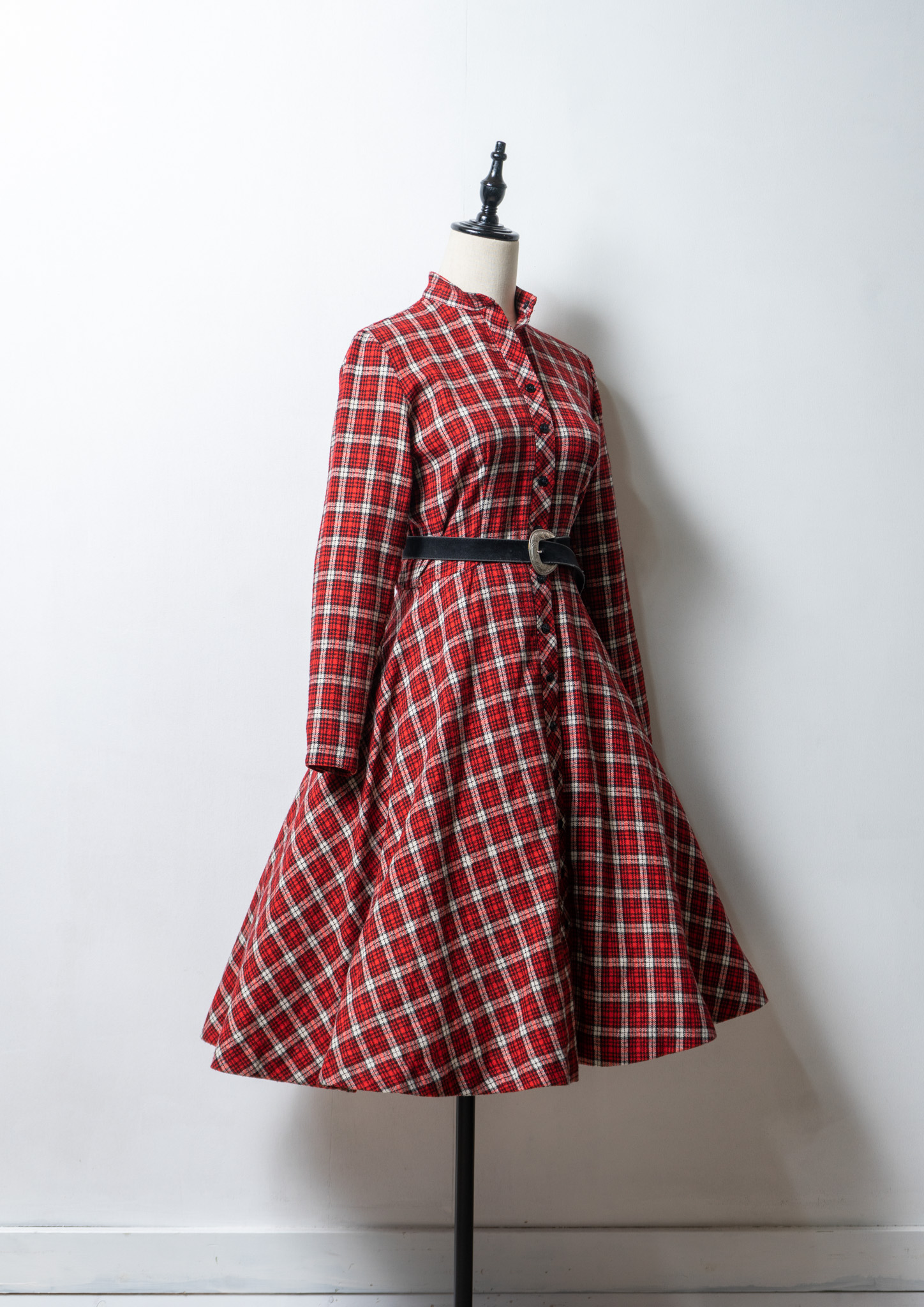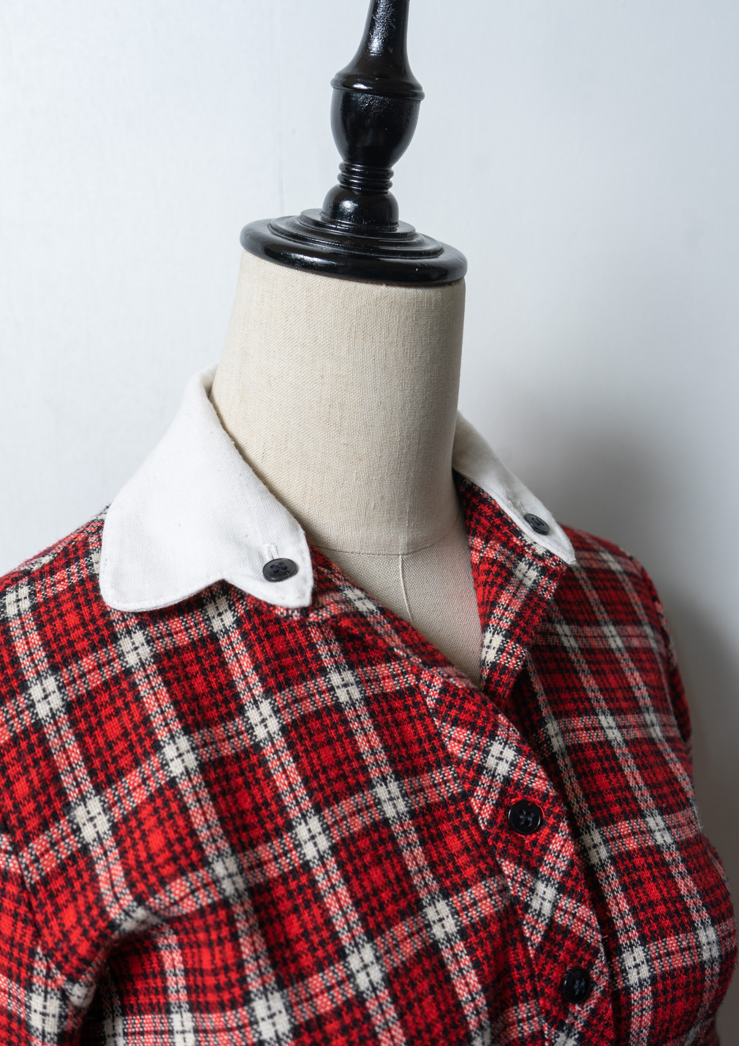 70~80's Euro Lanz Red Check Pattern Shirts Dress
