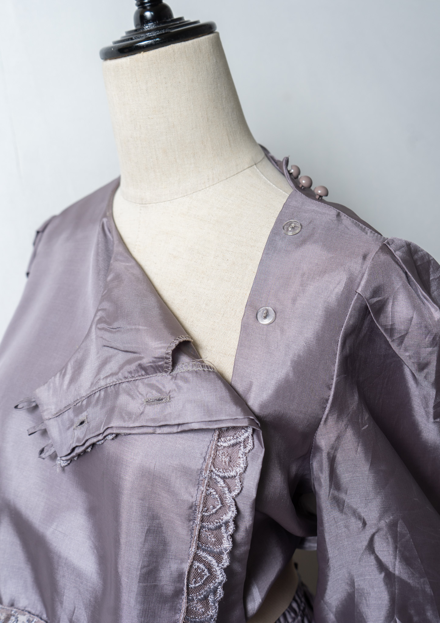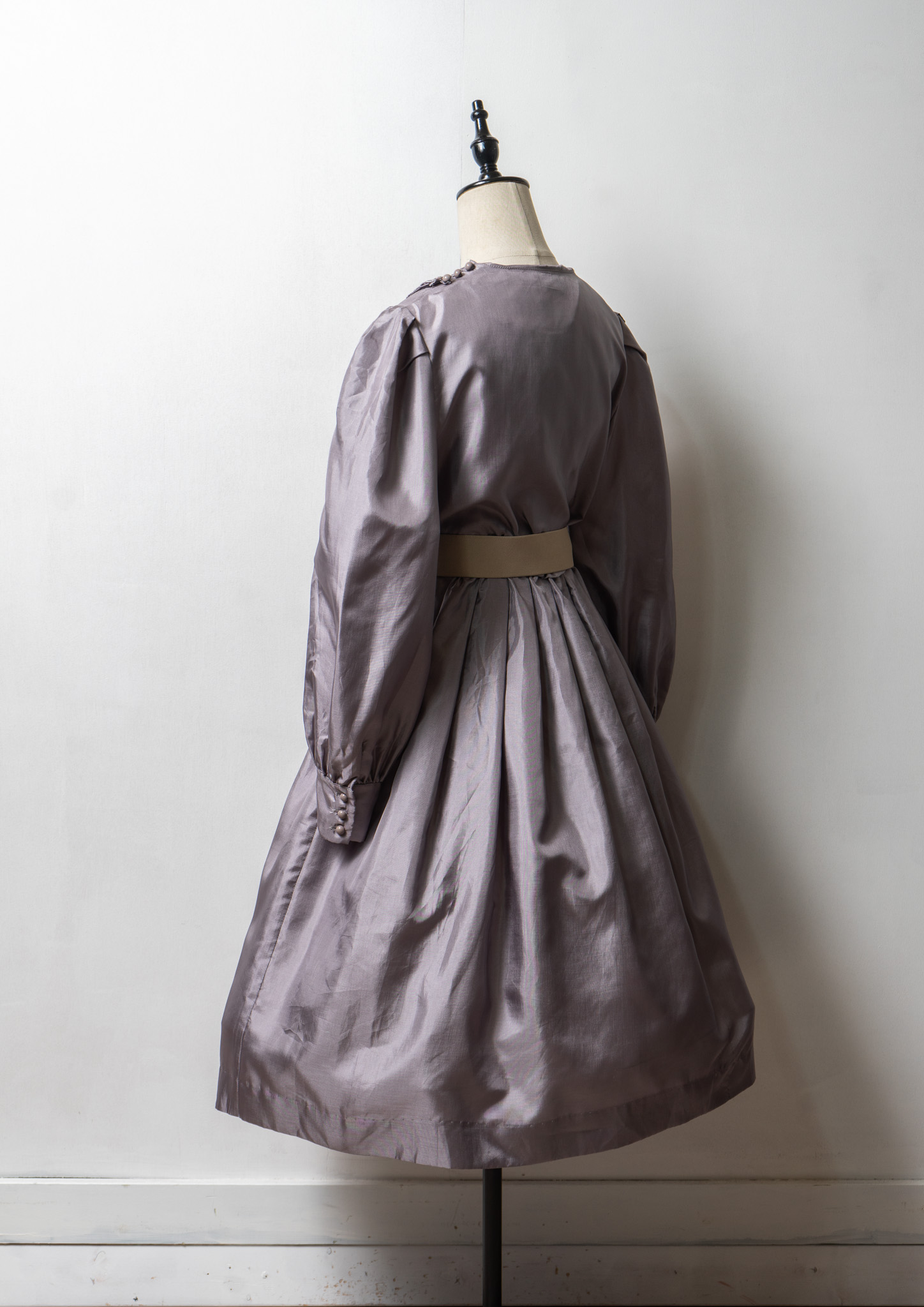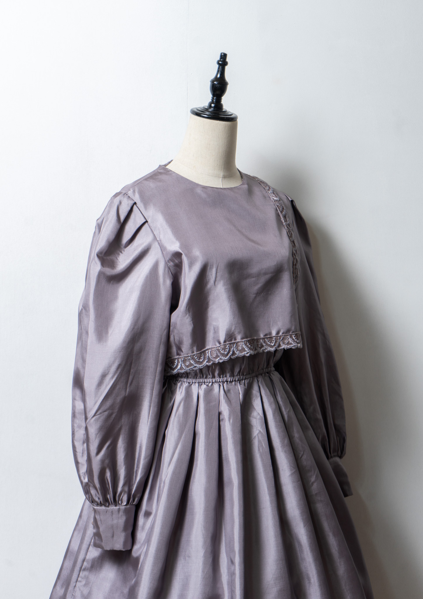 90's Black Velour Collar × Button Gray Over Dye Maxi Dress