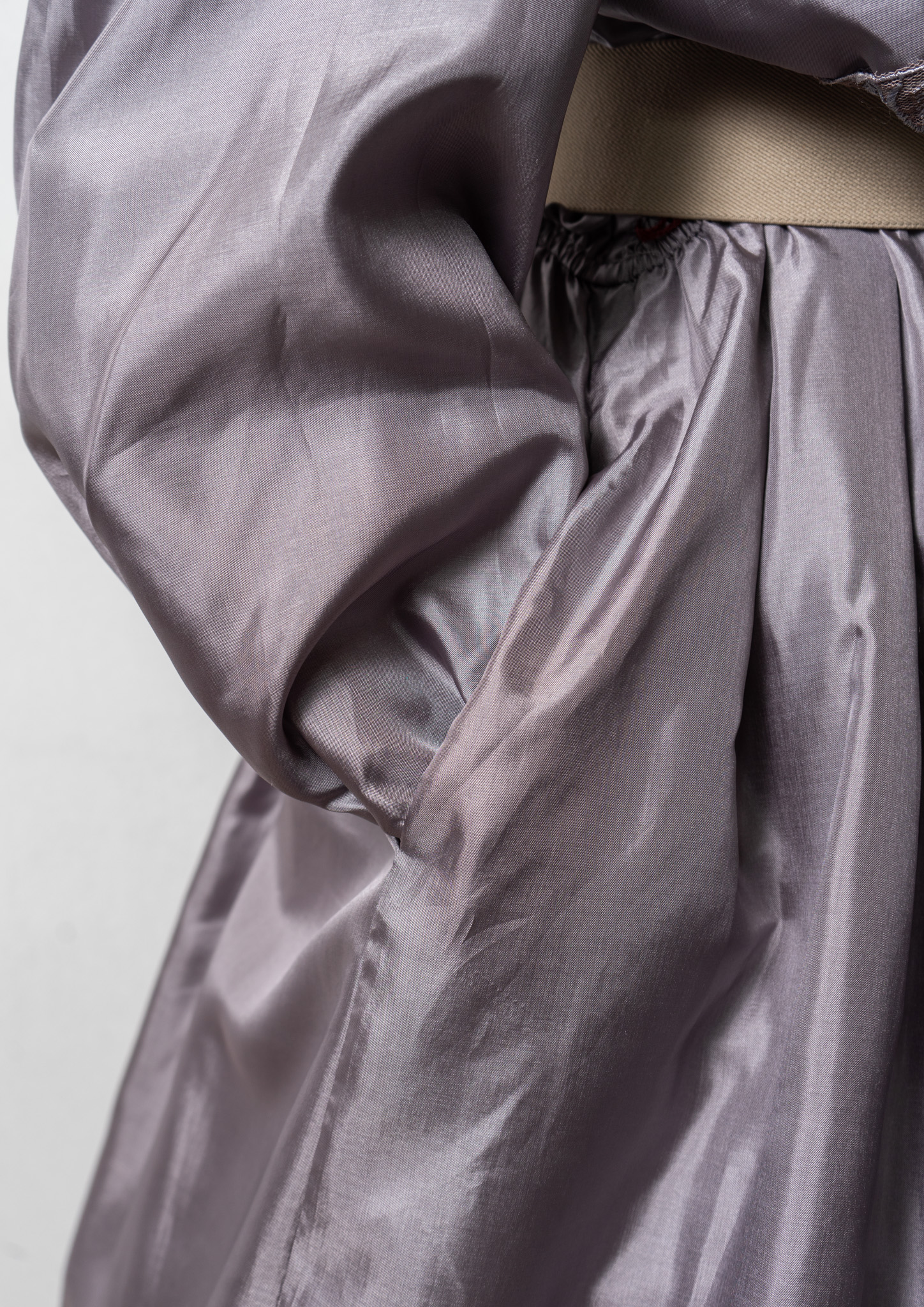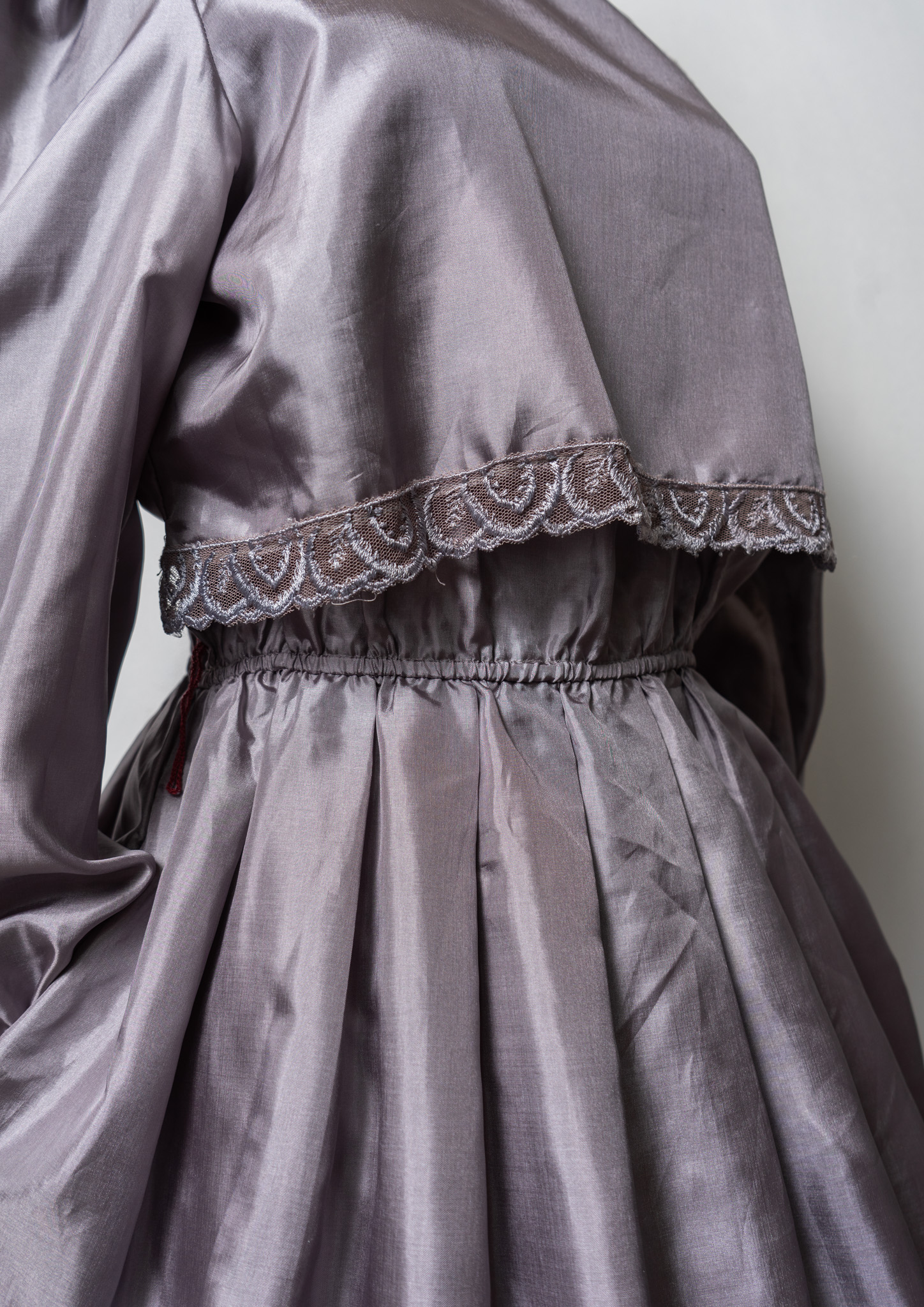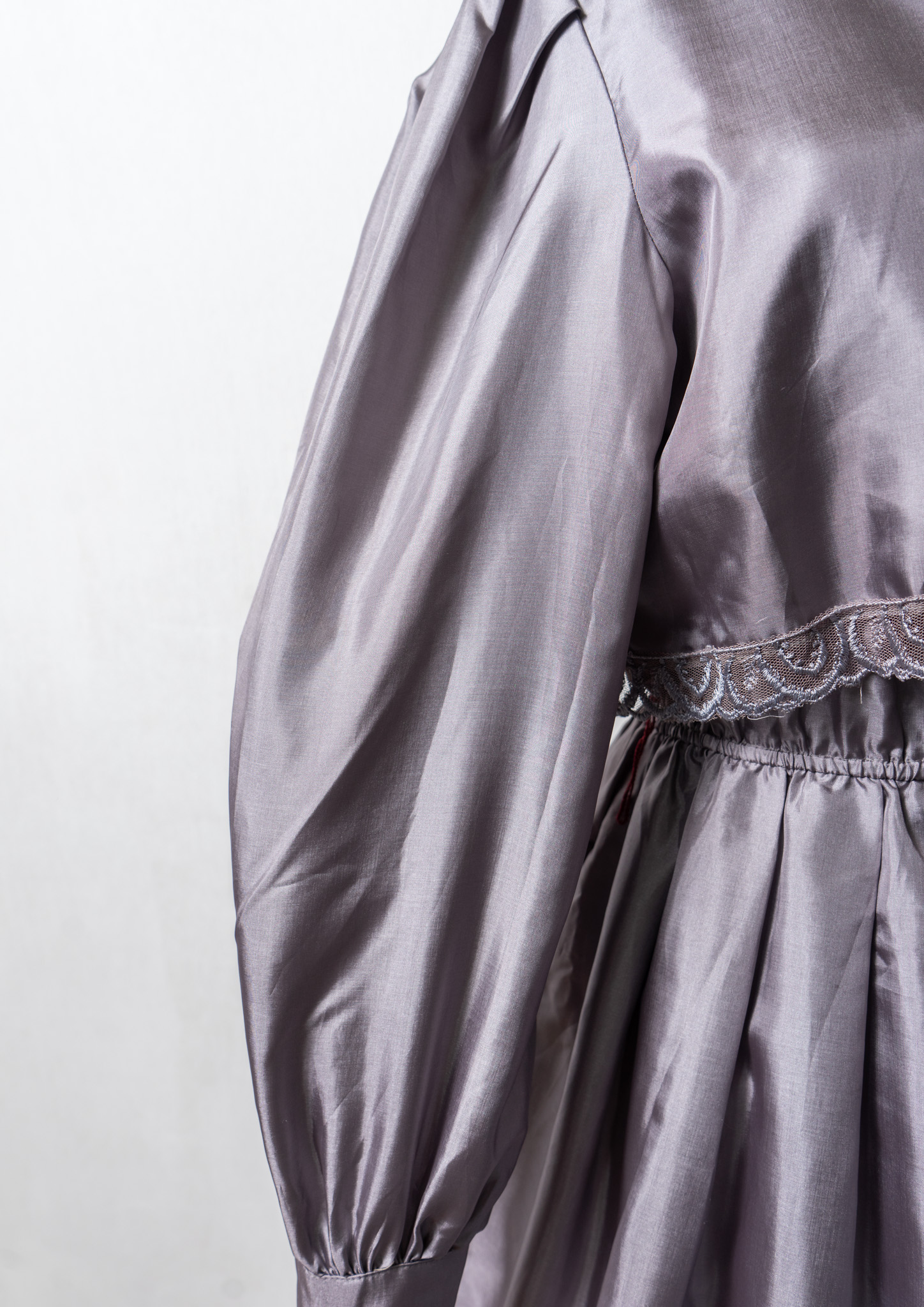 90's Black Velour Collar × Button Gray Over Dye Maxi Dress