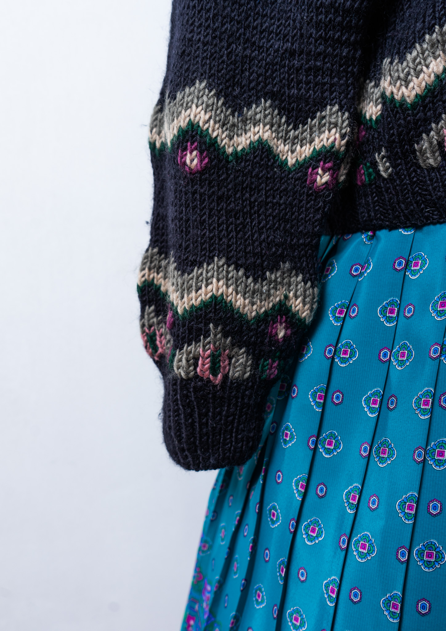 90's Flower × 3D Embroidery Pattern Knit Sweater