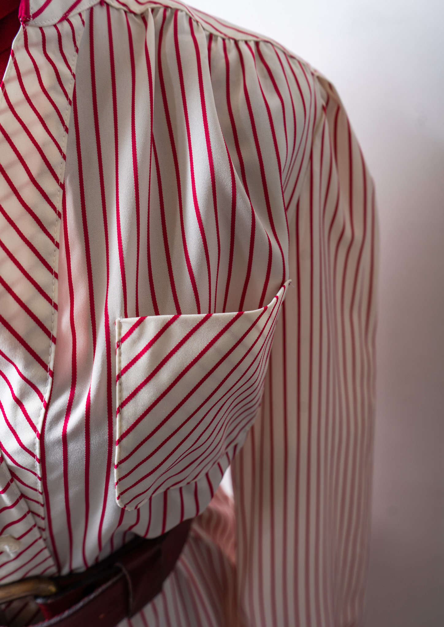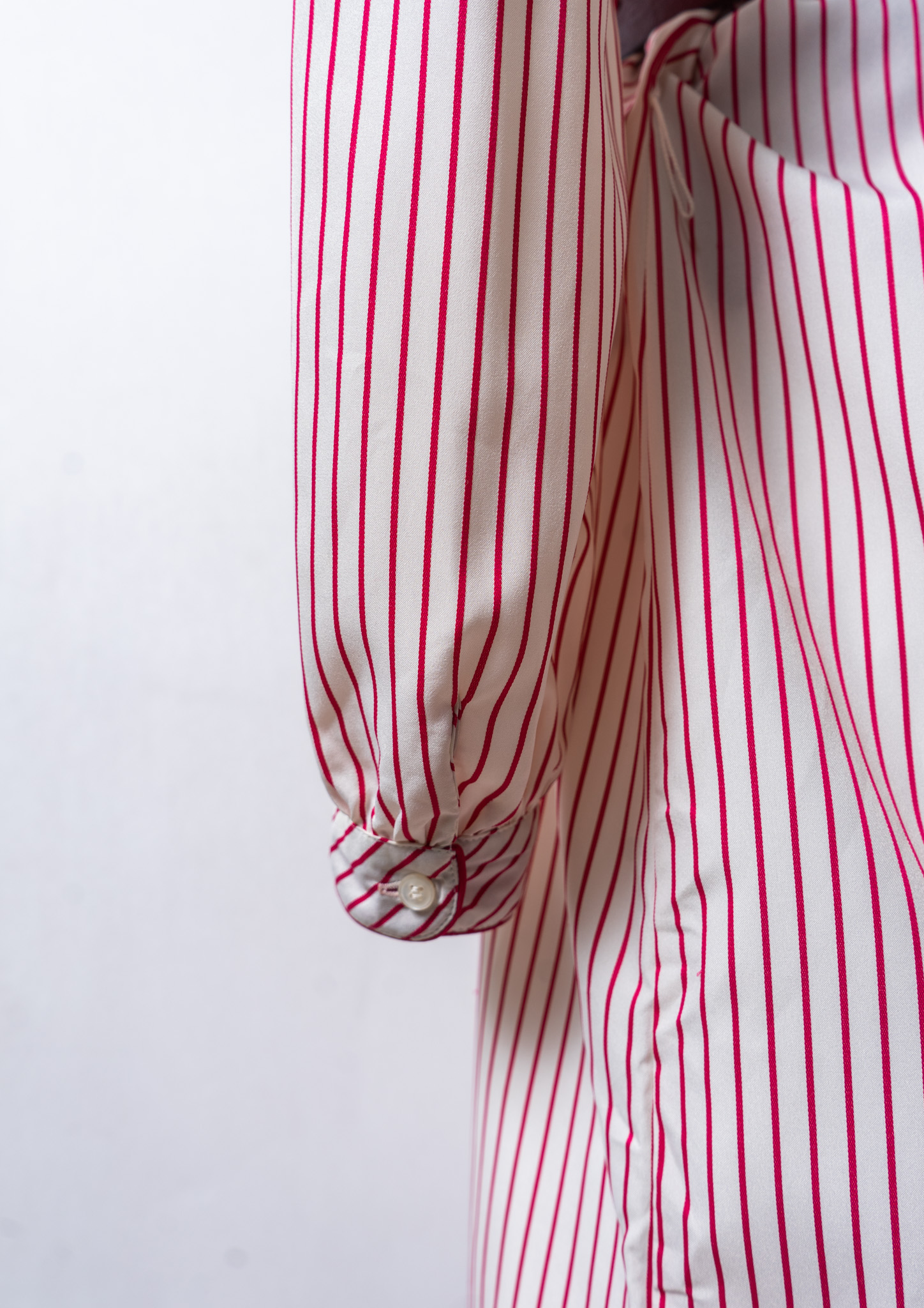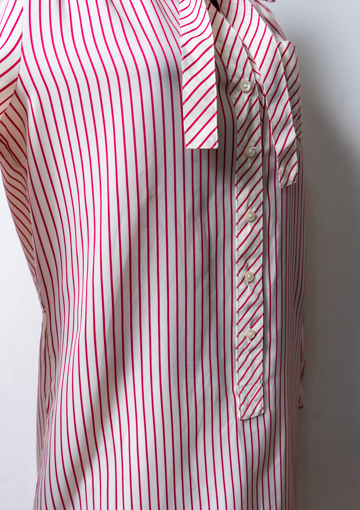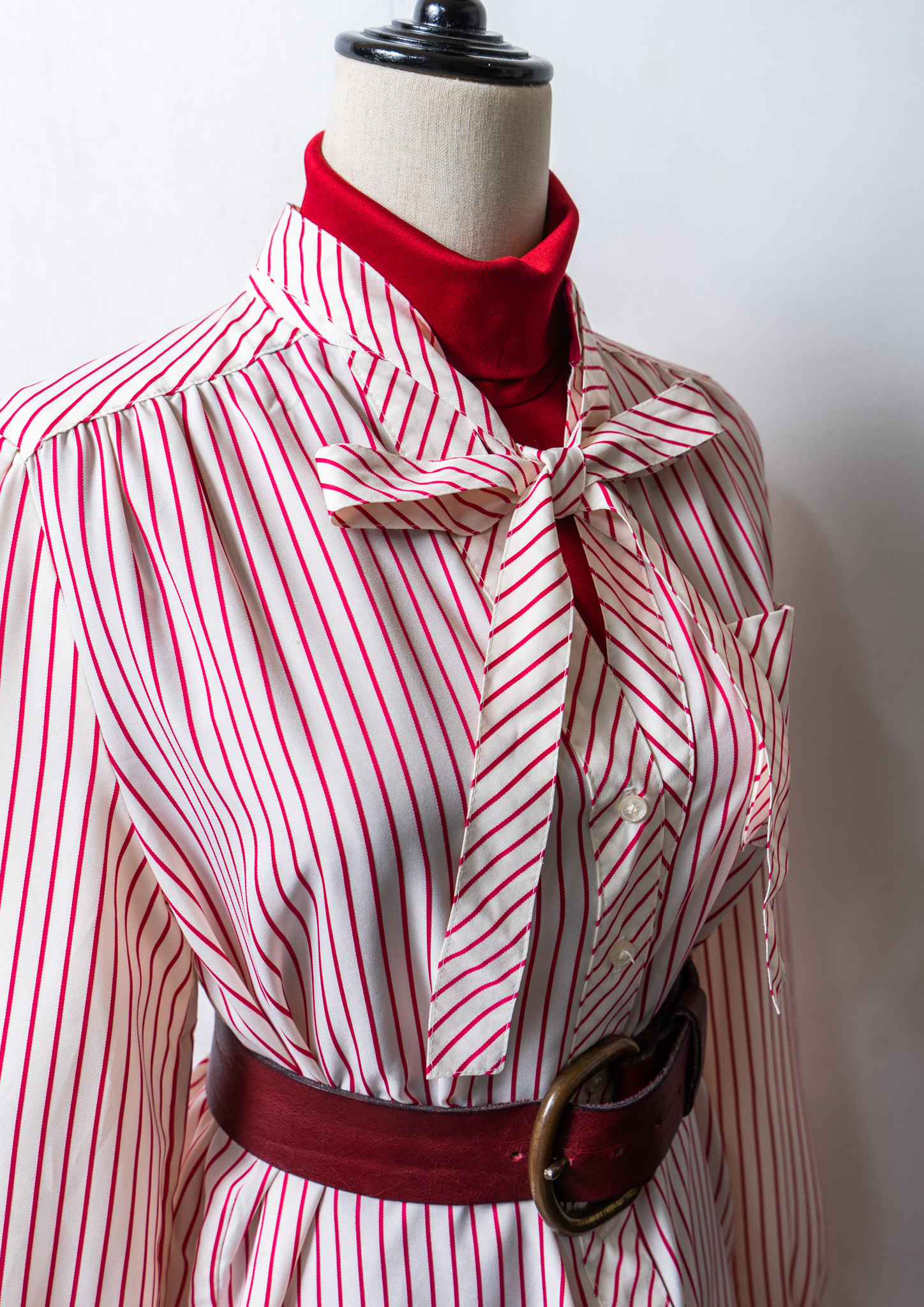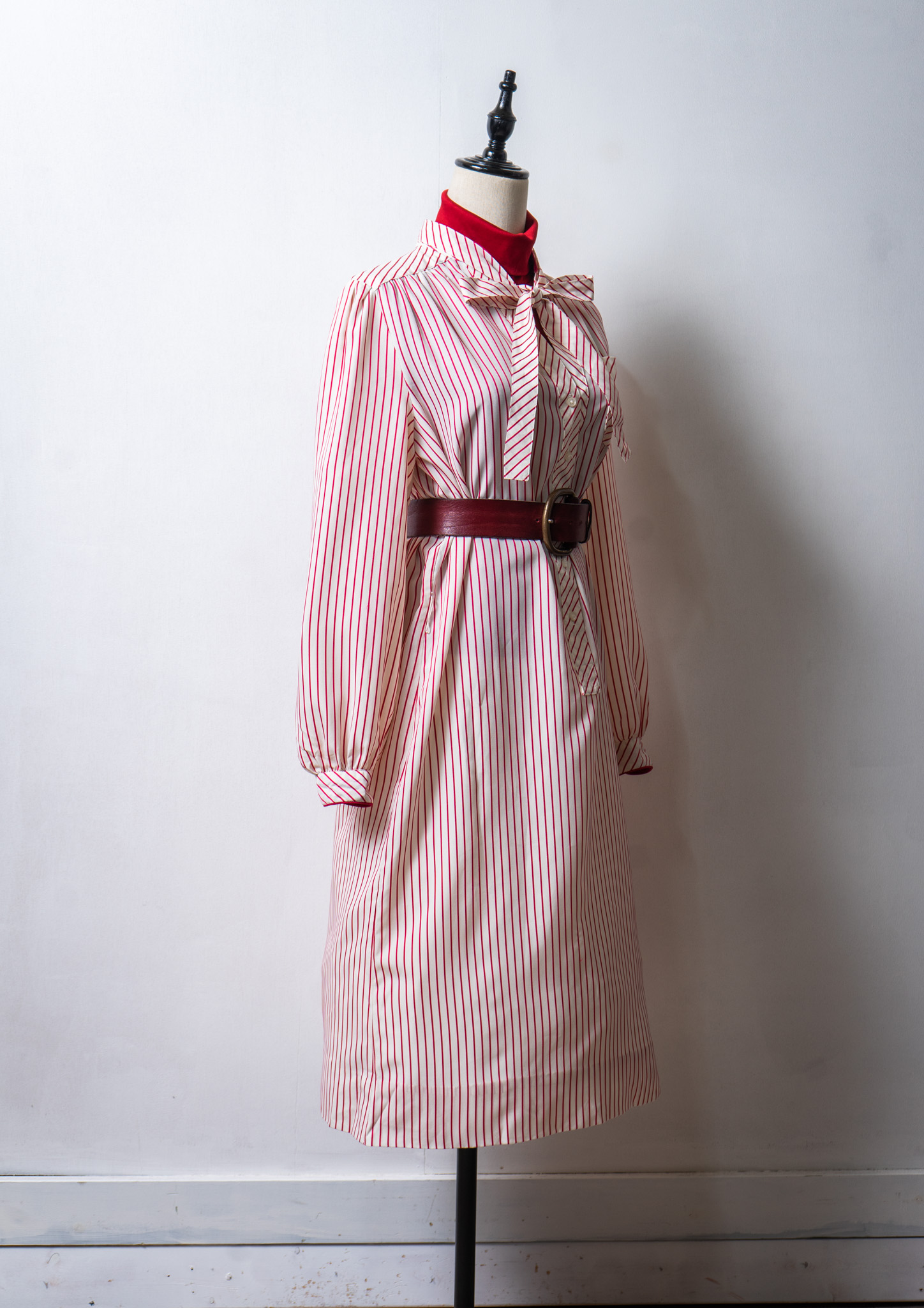 70's USA Red Stripe Pattern Bow-tie White Dress
