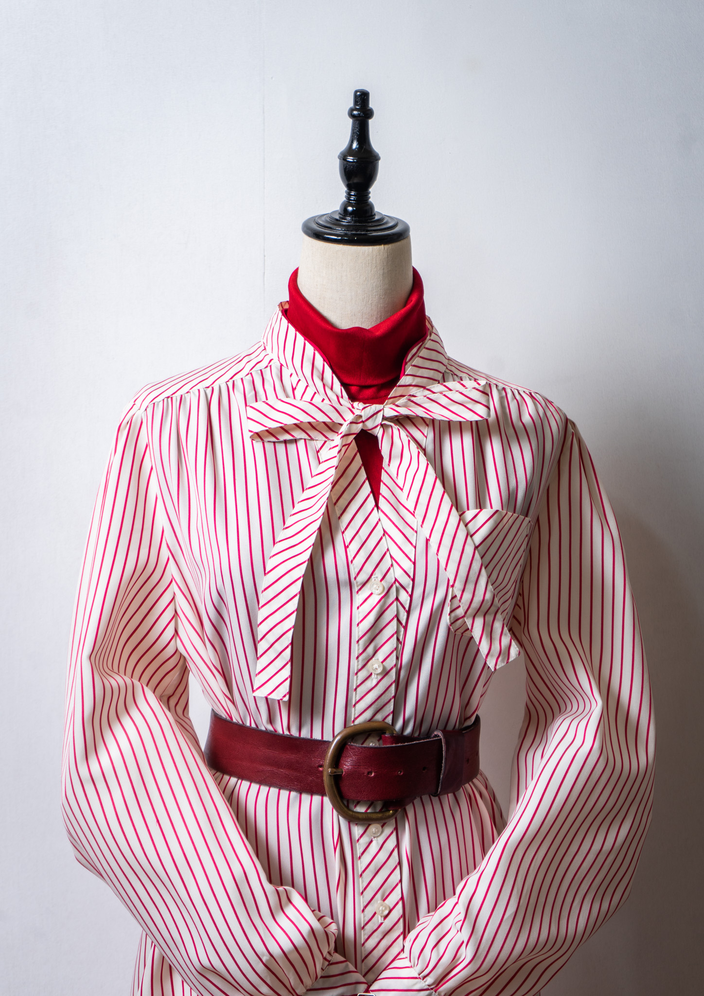 70's USA Red Stripe Pattern Bow-tie White Dress