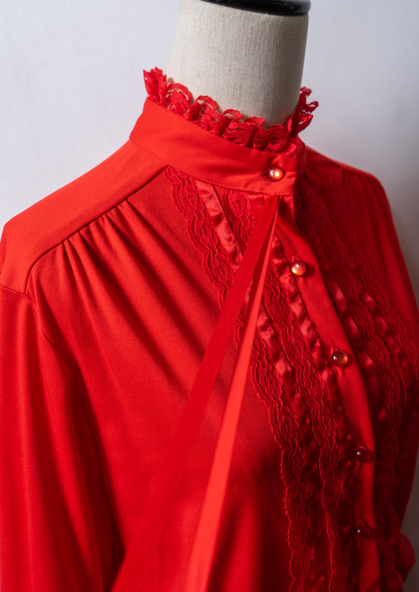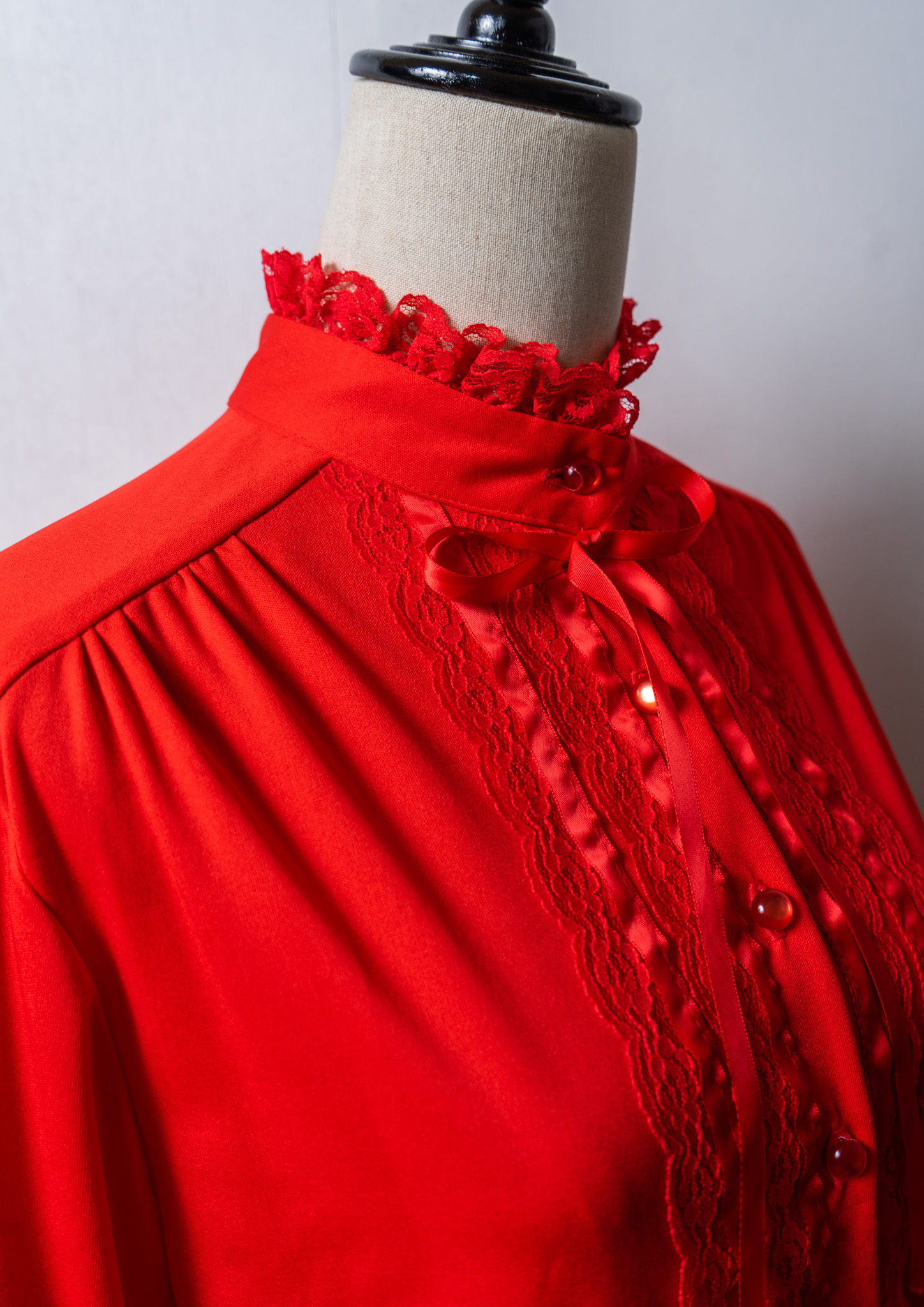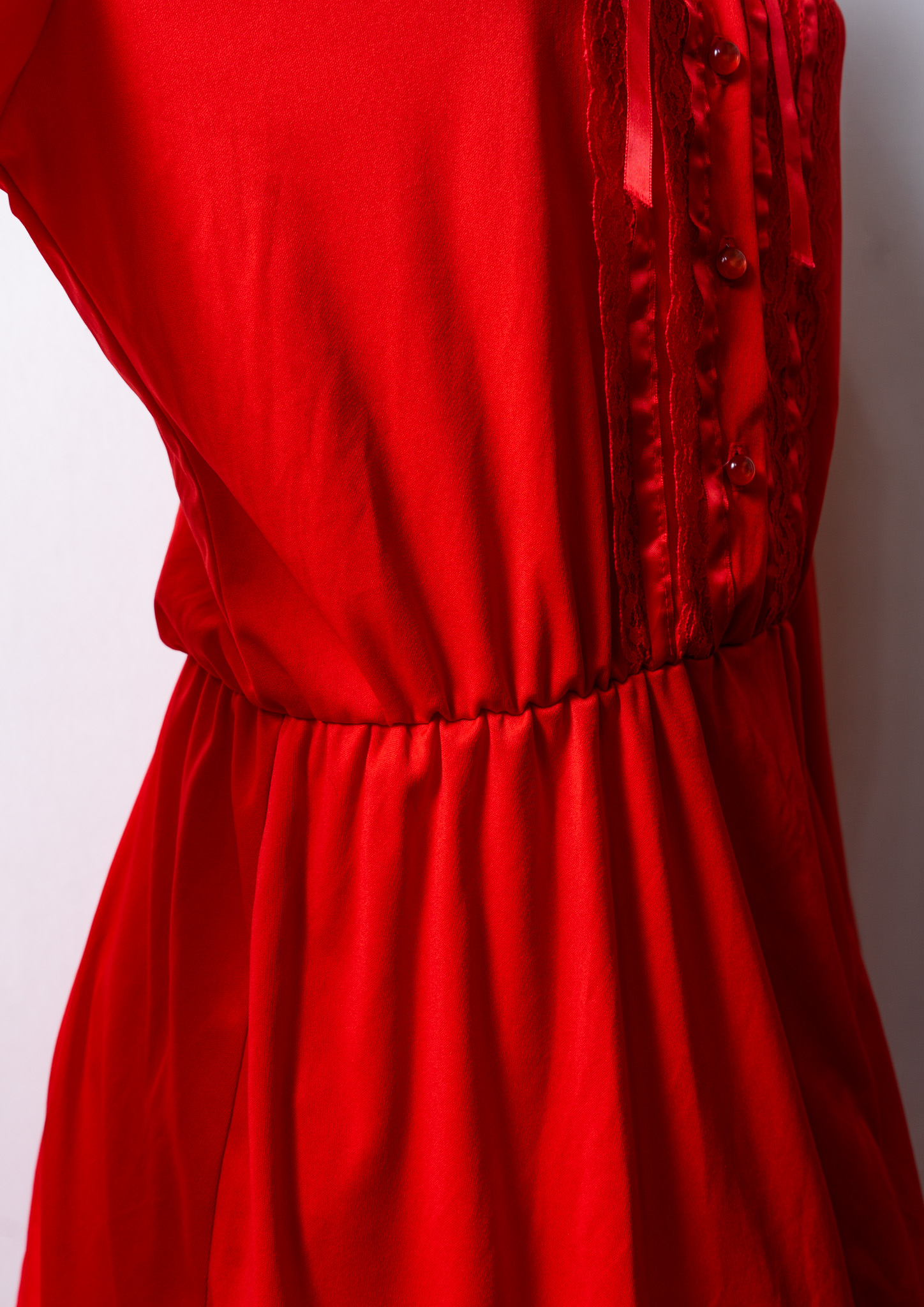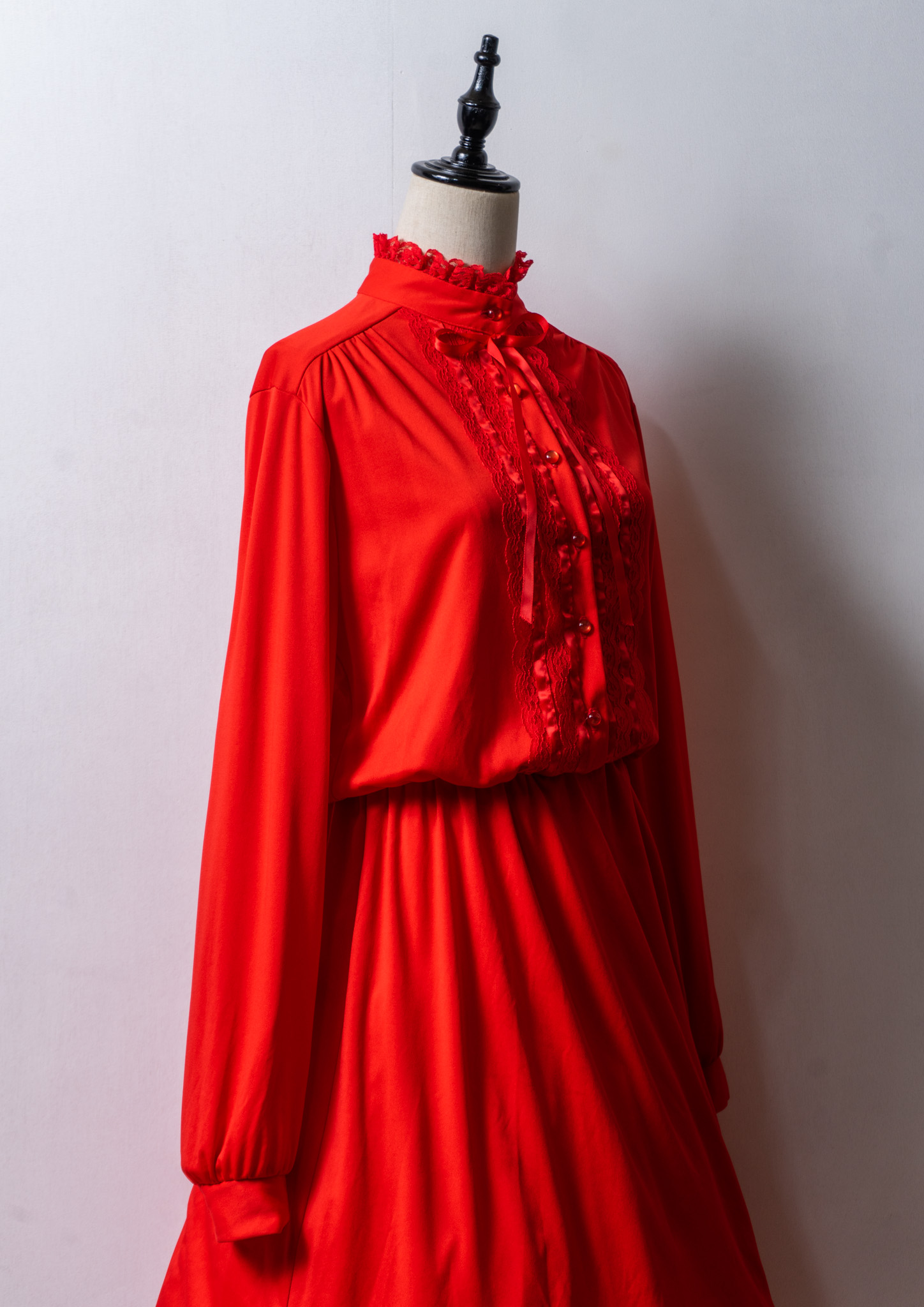 70's USA JC Penney Ribbon × Frill Design Red Dress